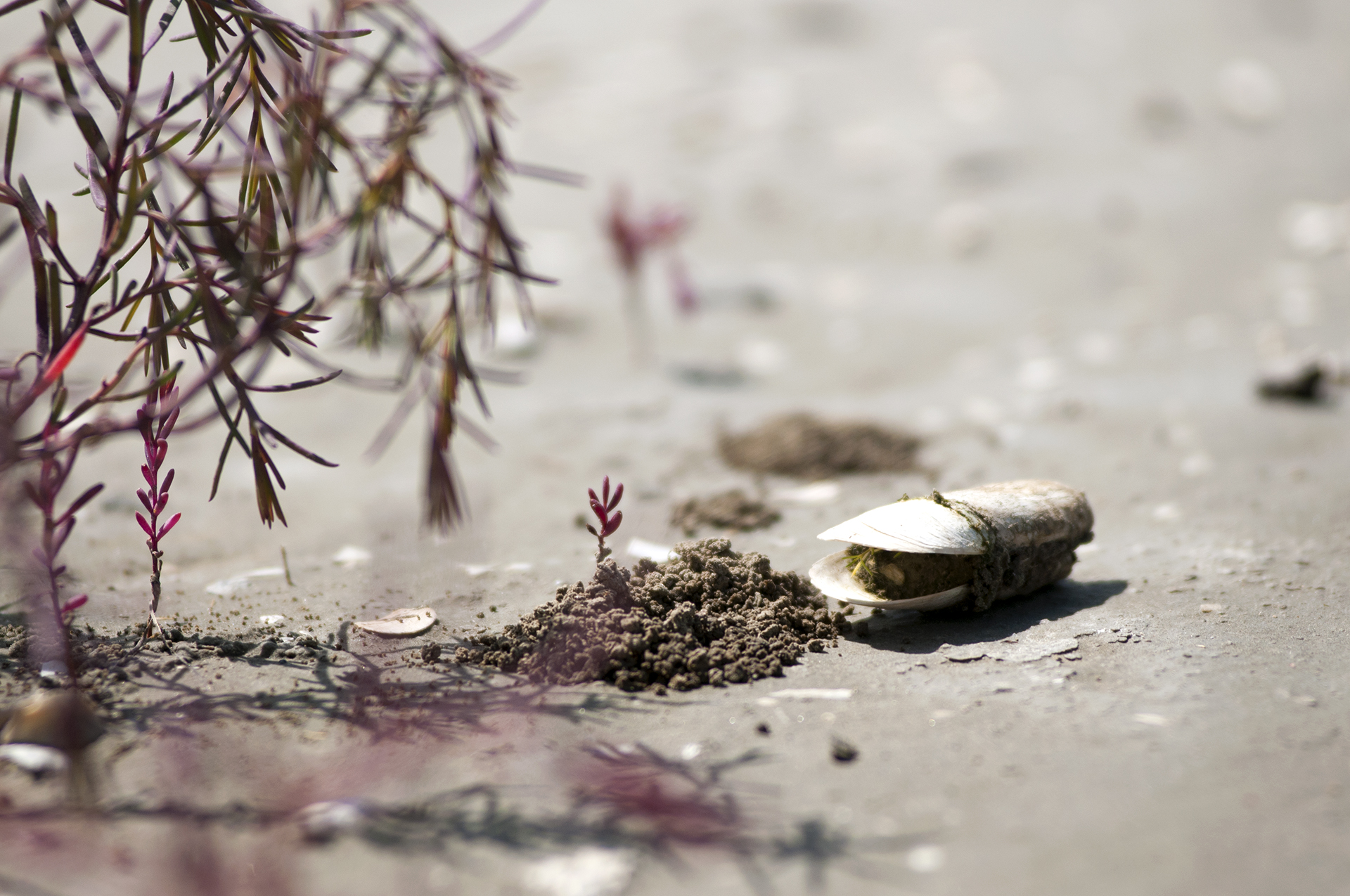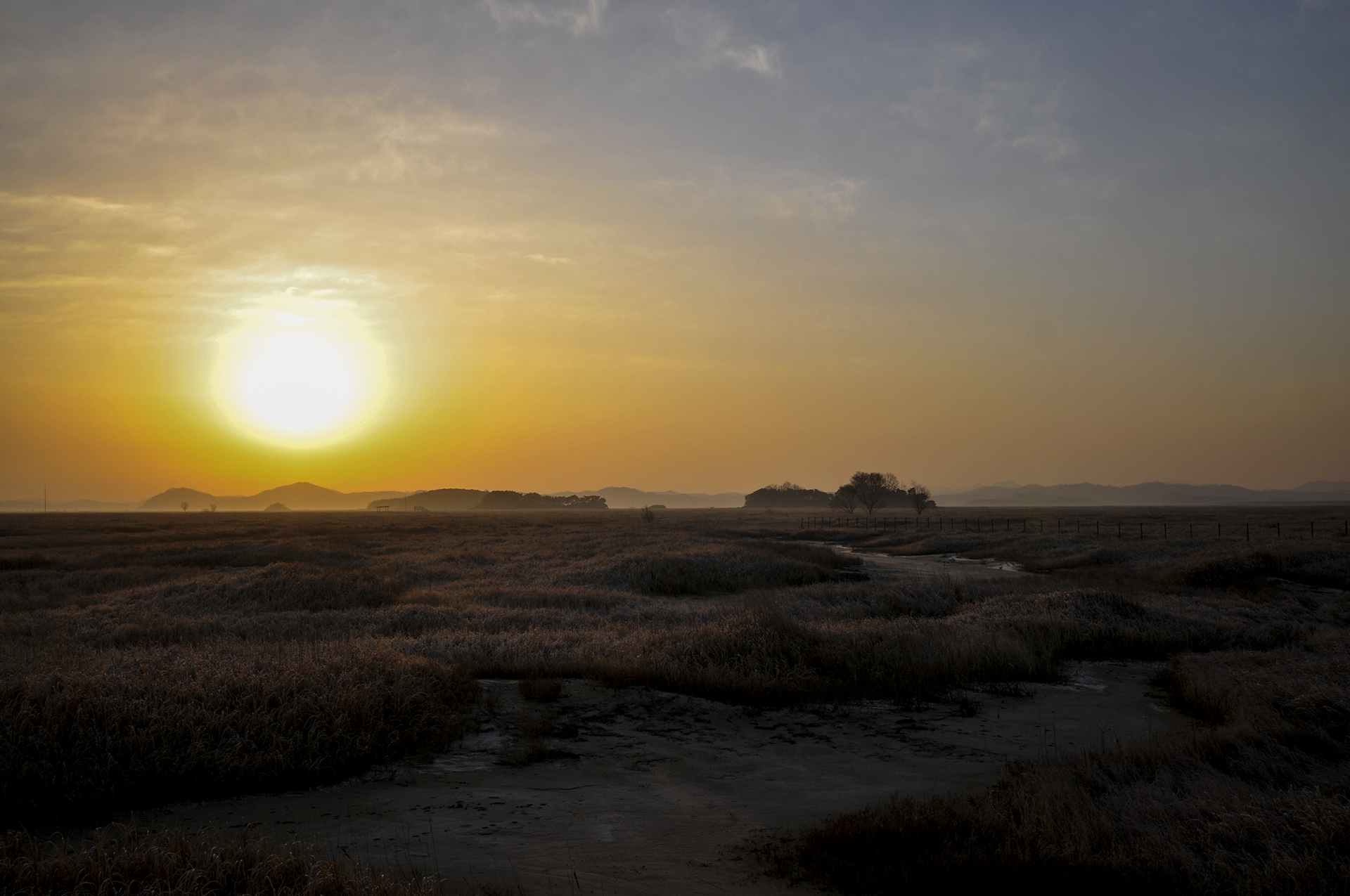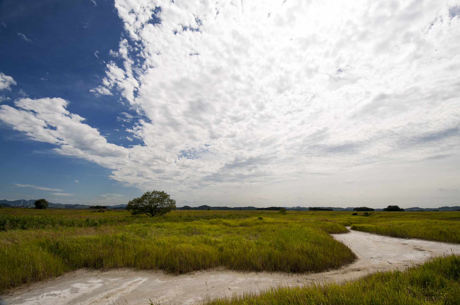 갯벌이 굳어 육지가 되고 그곳에서 만나는