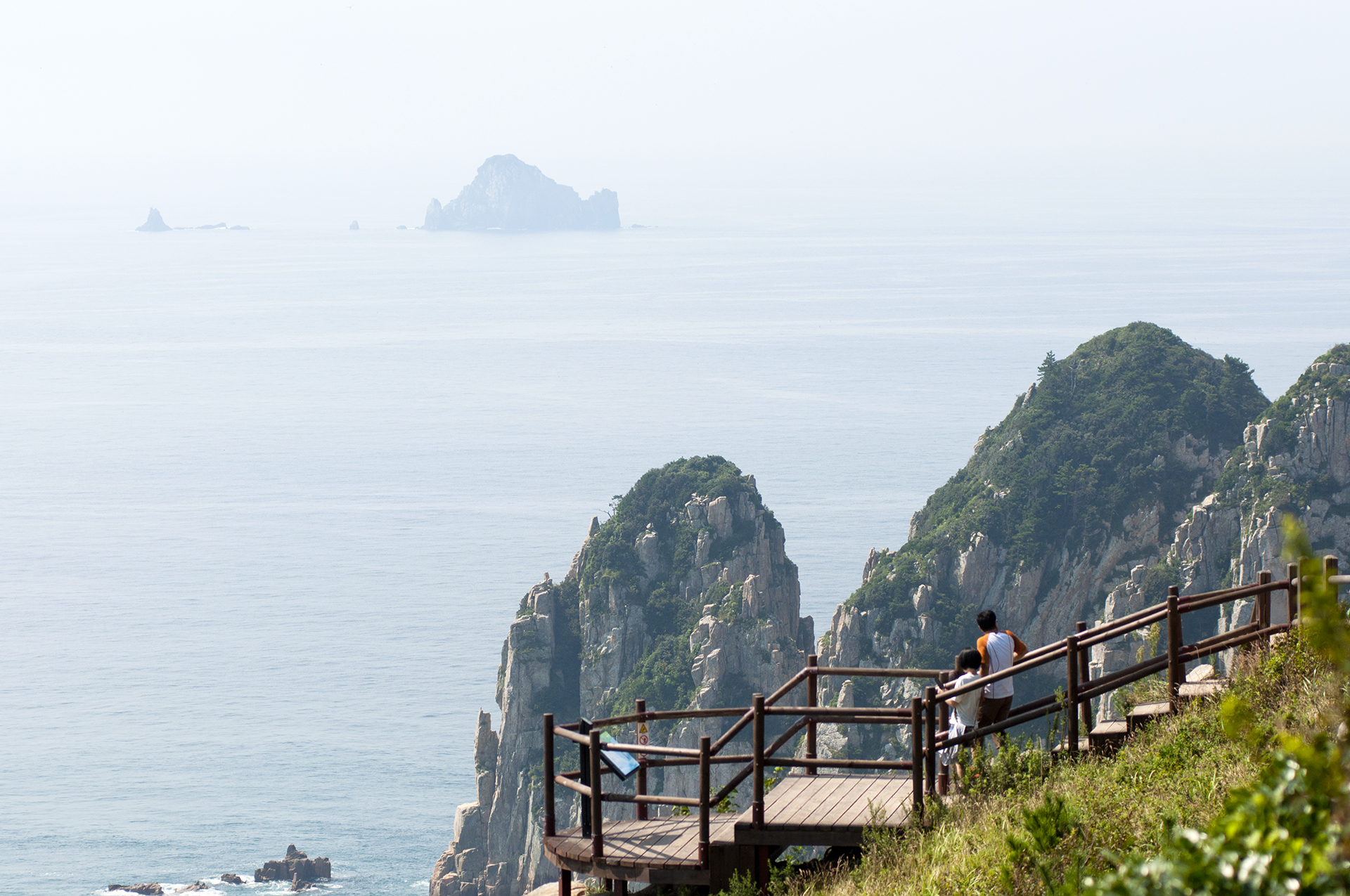 전망대 뒤로 등대섬의 촛대바위가 펼쳐진다.