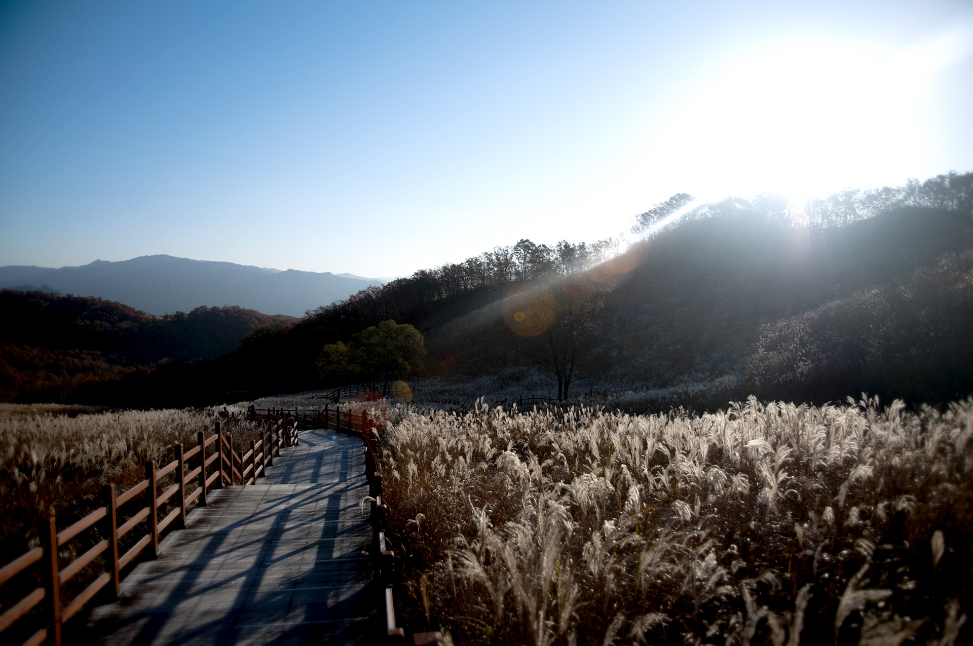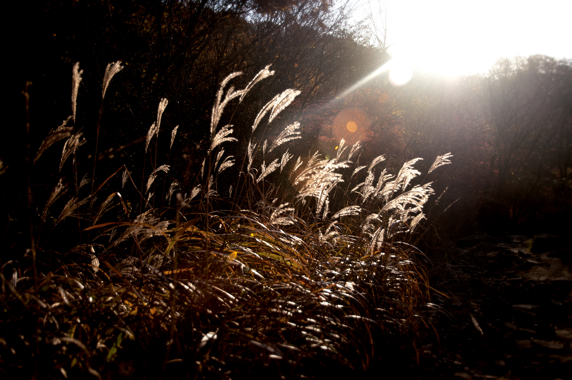 보들보들한 억새가 햇빛에 반짝인다.