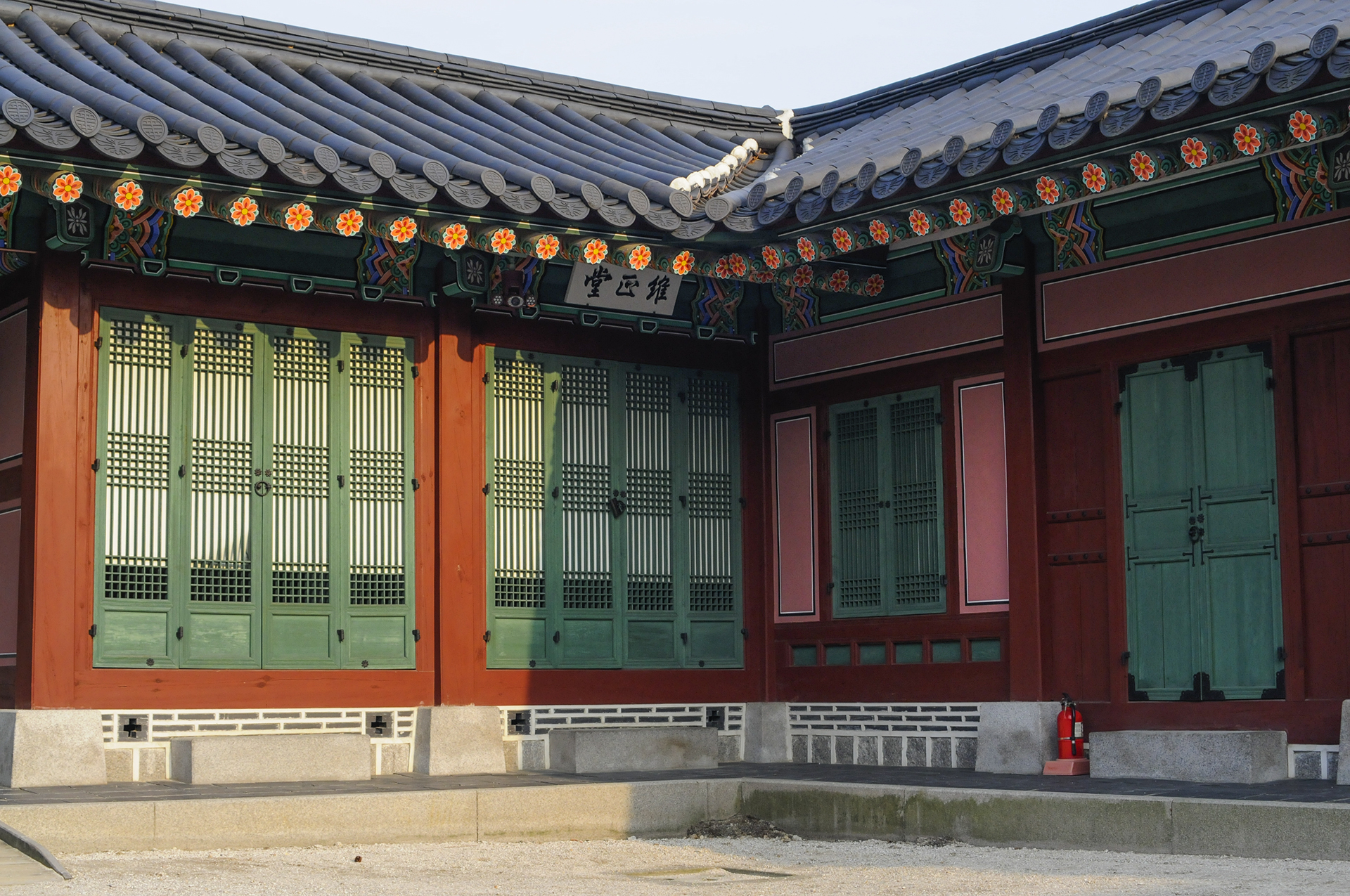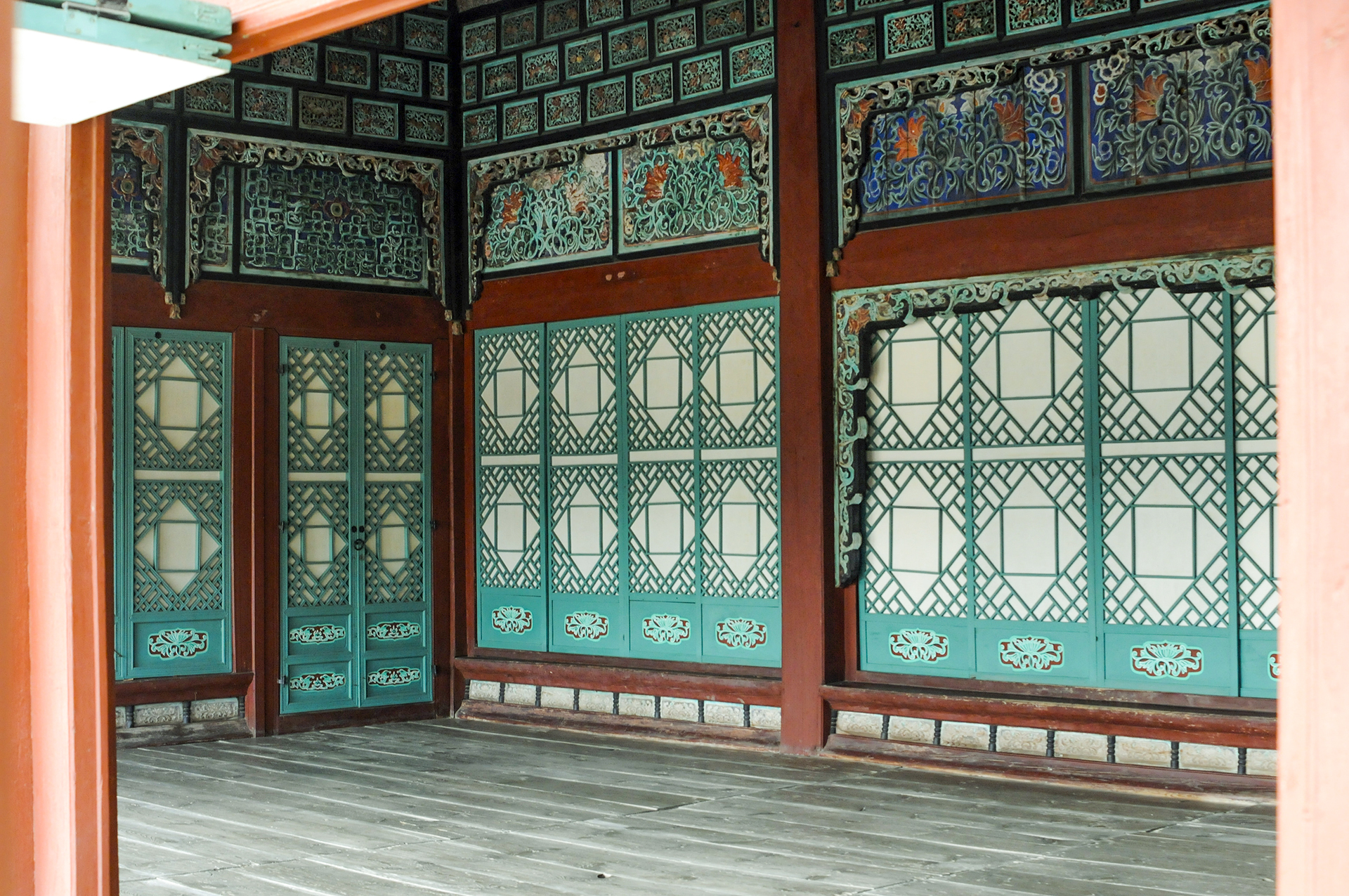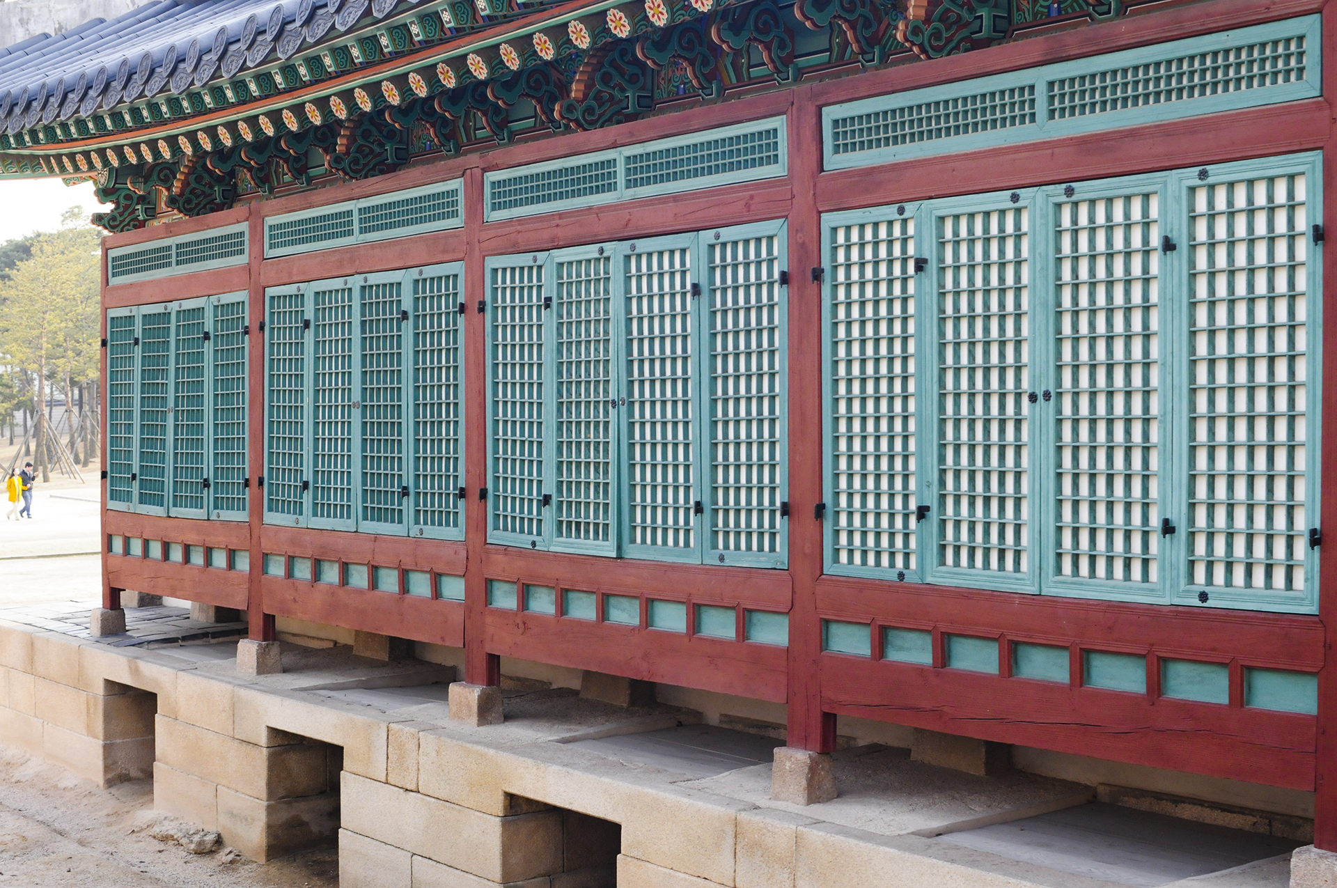 집옥재와 협길당을 하나로 이어주는 복도각. 유리를 사용한 창이 협길당의 문과 대조를 이룬다. 그 밑으로는 드나들수 있는 쪽문을 만들었다.