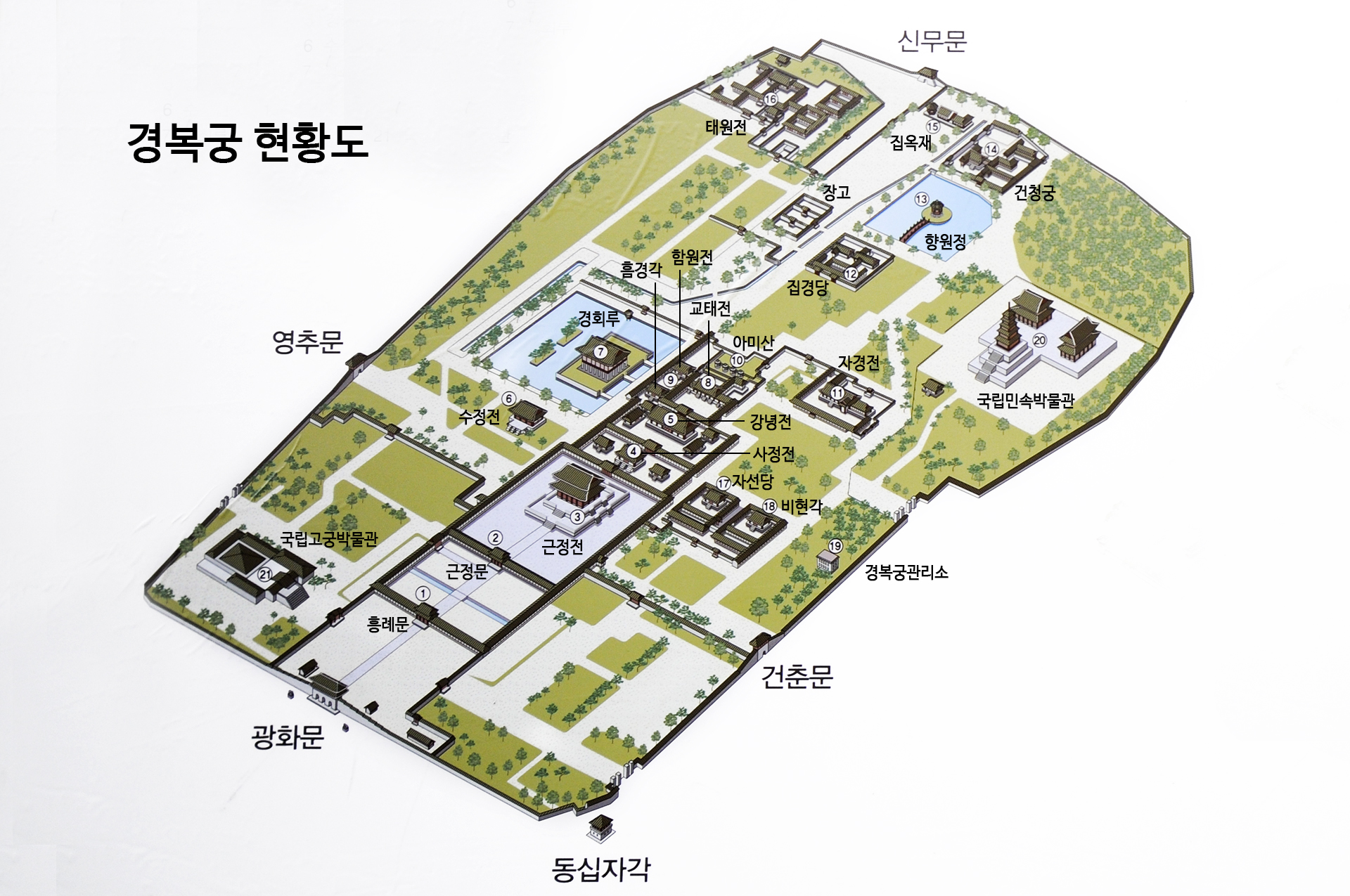 고종 때 흥선대원군이 경복궁을 중건하면서 지어졌으며 20세기 초에 철거되었다가 2005년에 옛 모습대로 다시 복원되었다. 이곳은 궁의 서북쪽 외진 곳에 위치하고 있어 한적한 분위기를 자아내고 있다.