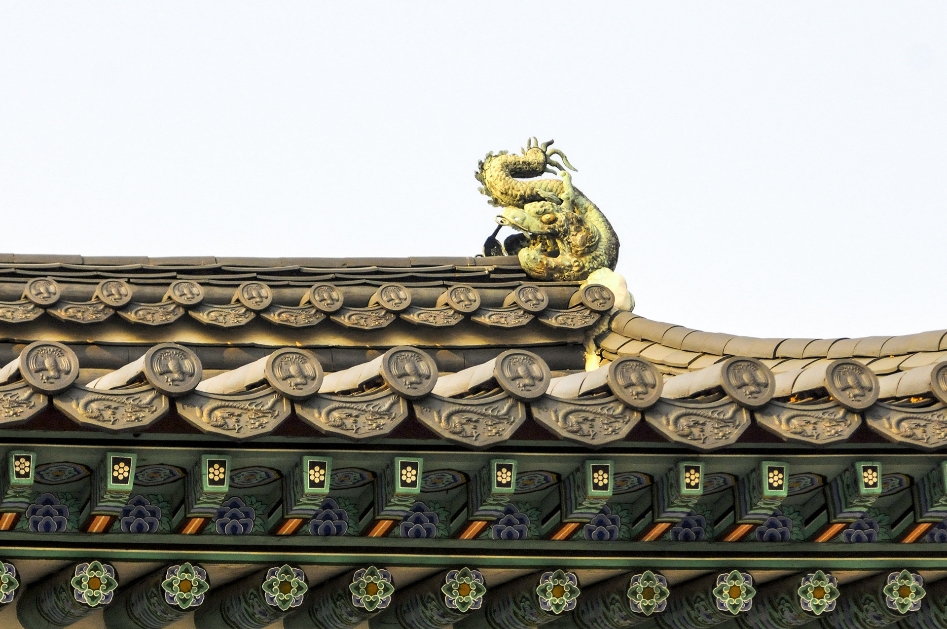 용두의 모양도 특이하게 청룡을 얹었는데 긴 수염과 뿔, 날카로운 이빨까지 섬세하게 조각되어 있다.