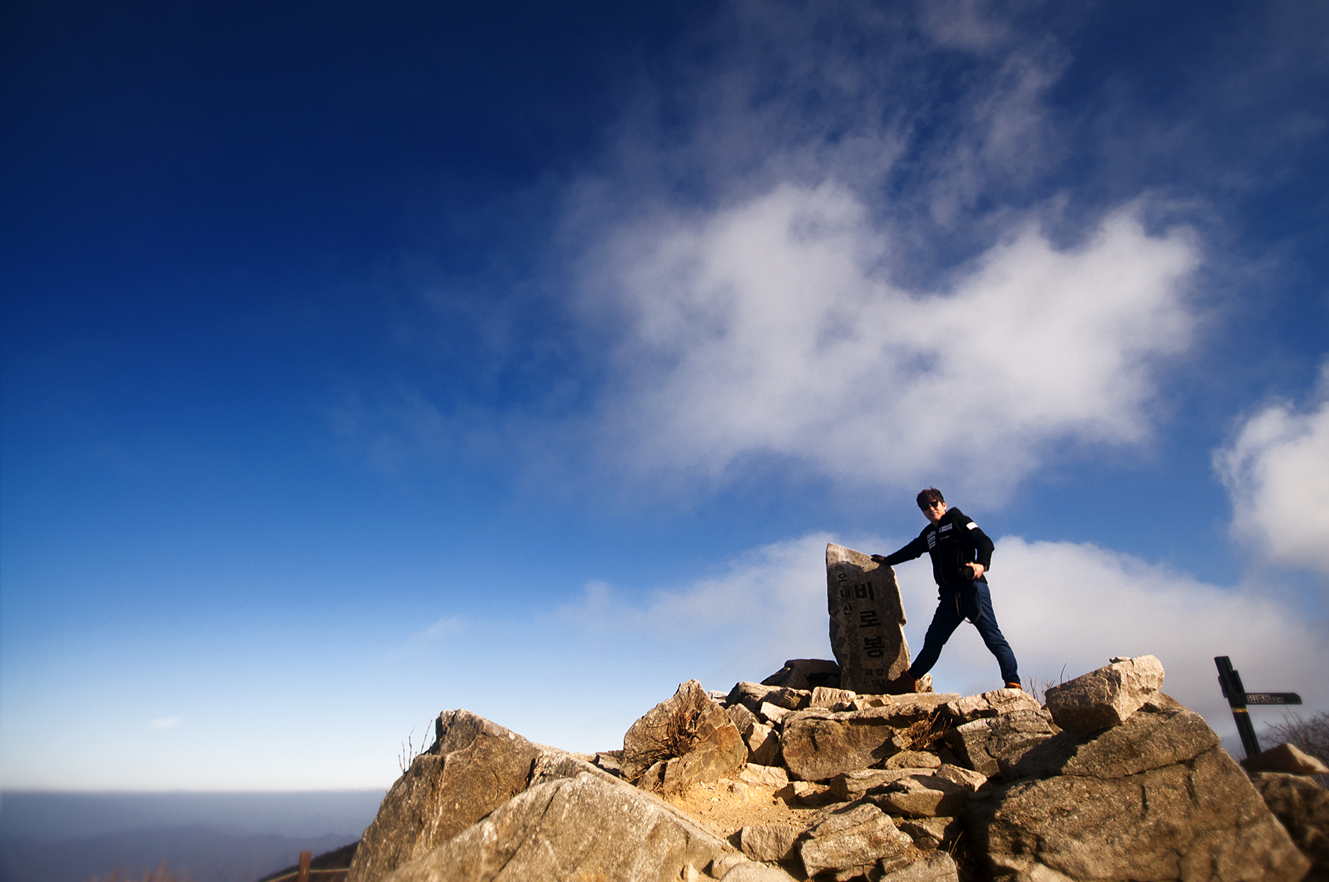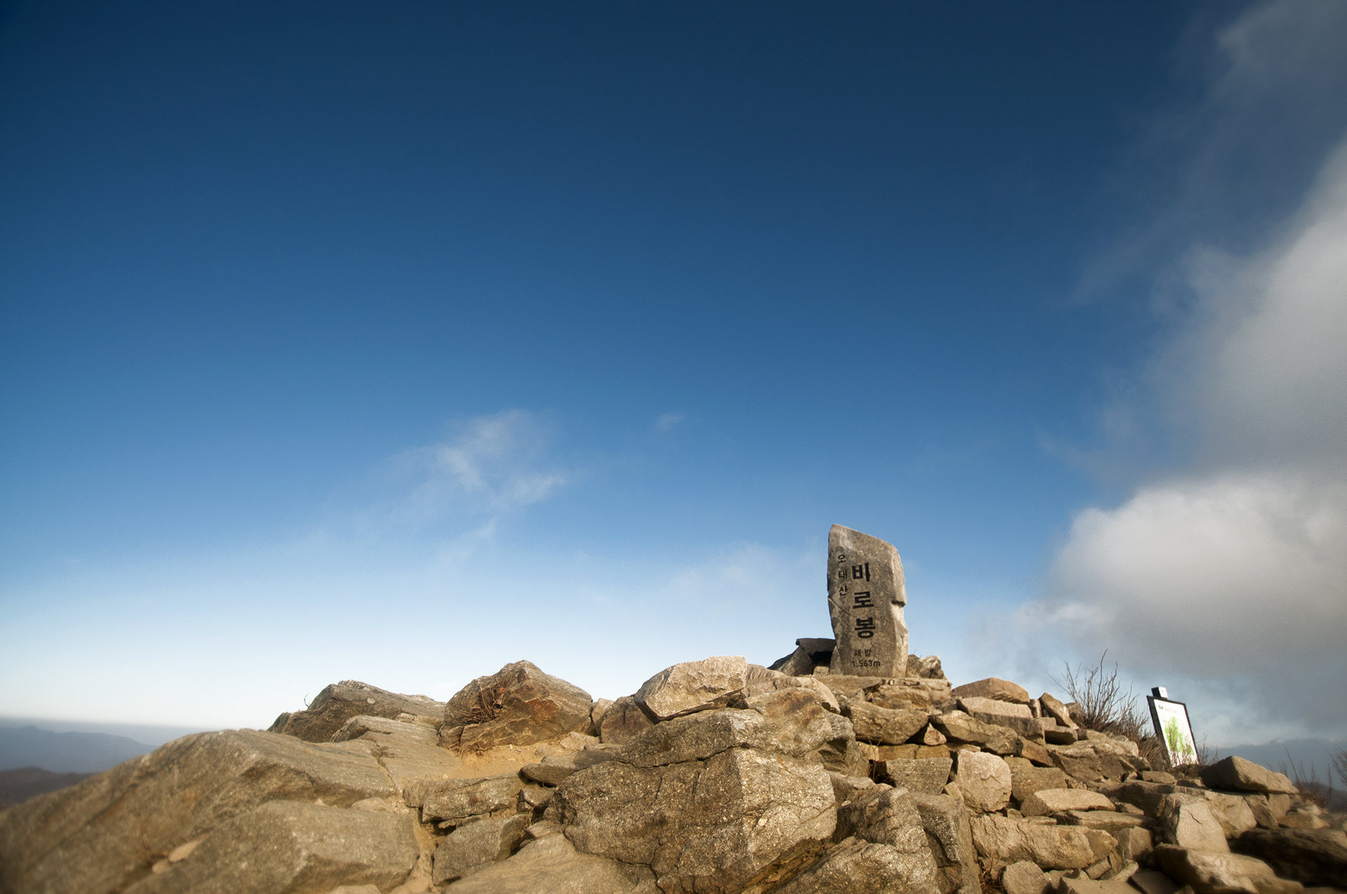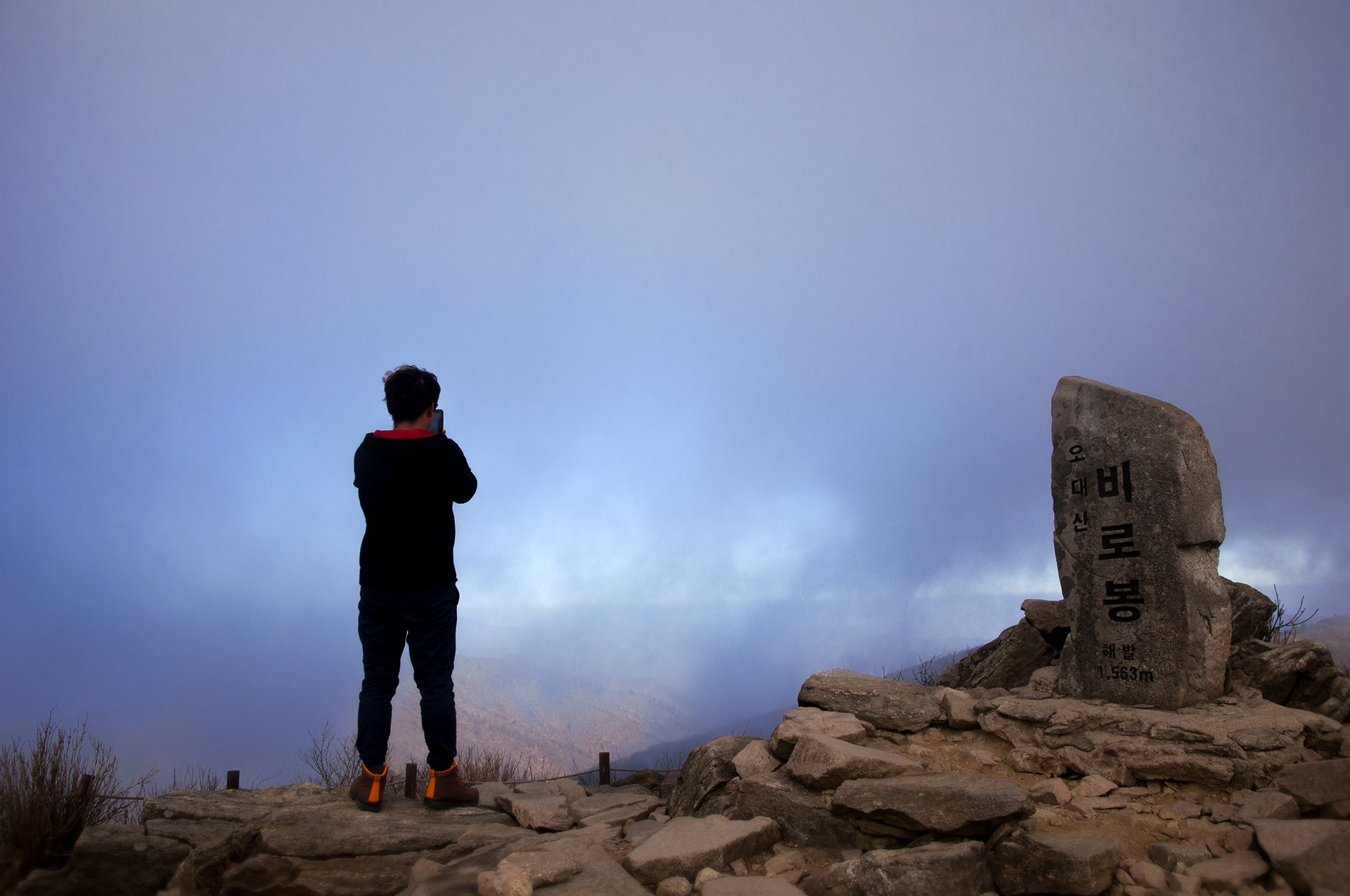 하늘이 벗겨지고 구름이 멋지게 시시각각 변하자 비로봉 인증사진을 다시 한번 찍어본다.