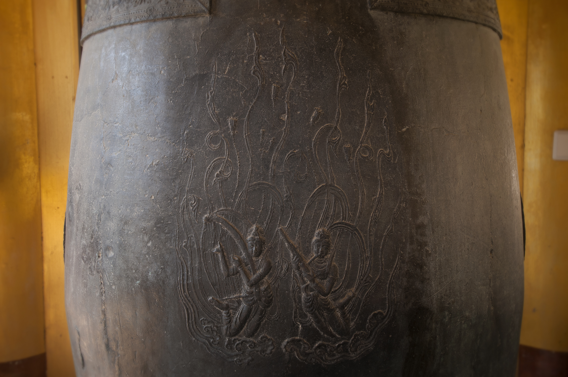 공후와 생황을 연주하는 모습이 종 옆면에 부조되어 있다.