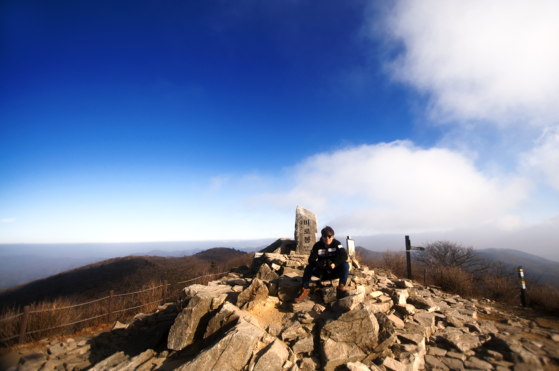 아무도 없어 비로봉 표지석을 독점하며 인증촬영을 하다가