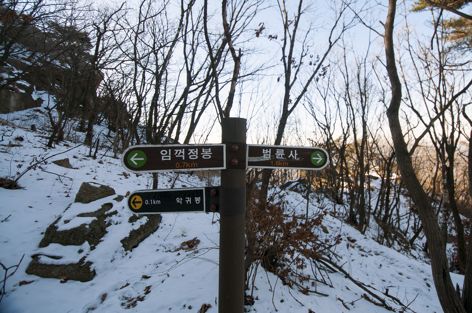 악귀봉 표지석은 없고 나무팻말이 있다.