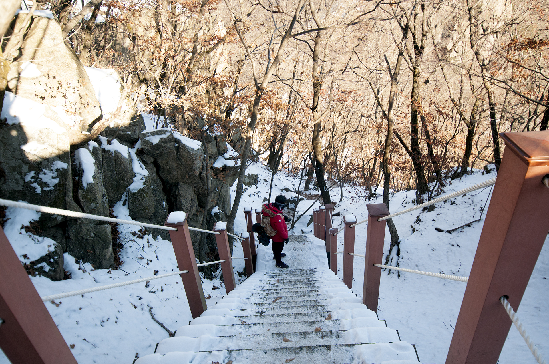 임꺽정봉으로 올라가는 가파른 계단이 있다.
