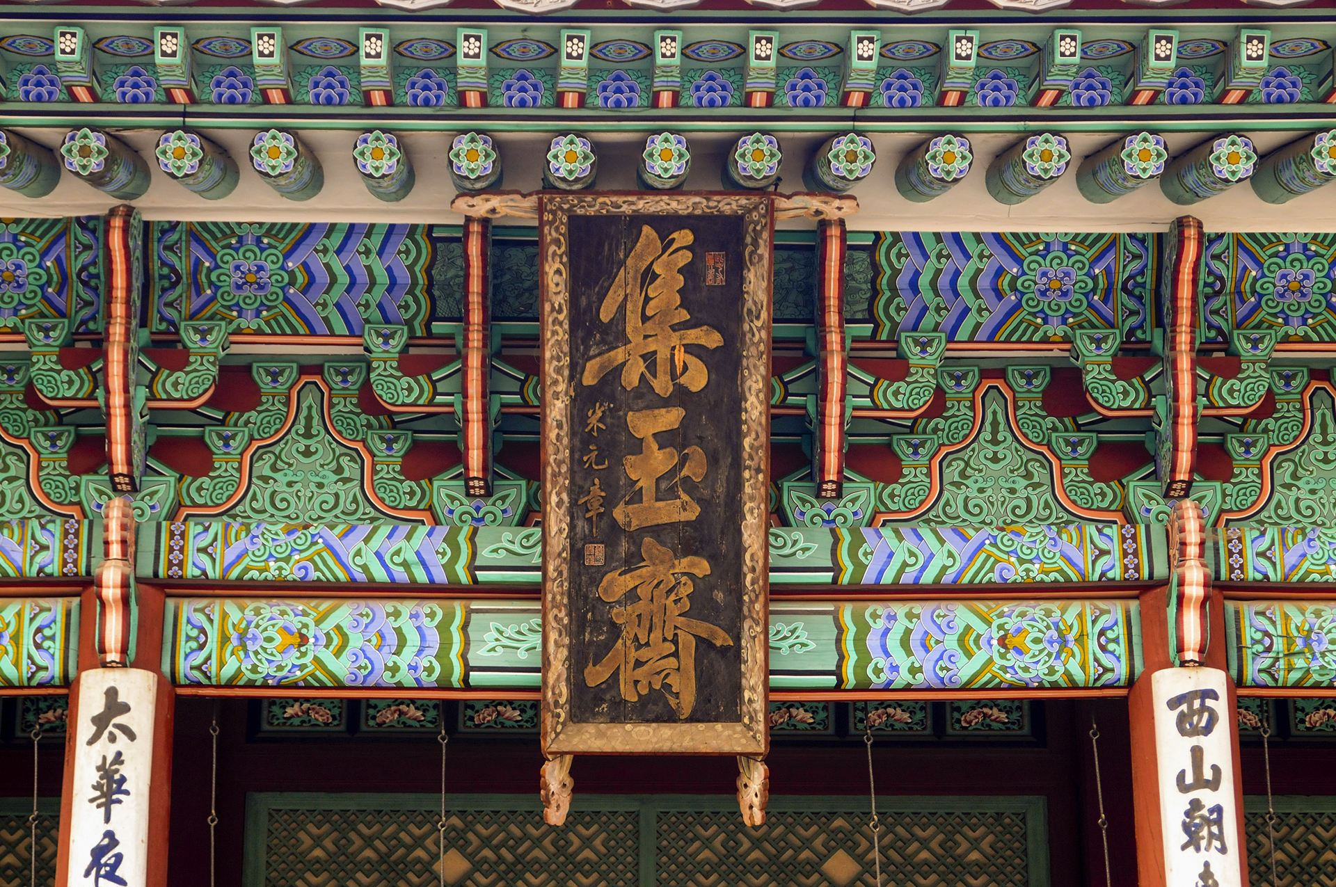 옥이 모이는 곳이라는 뜻의 집옥재는 현판이 특이하게 세로로 걸려 있는데, 중국 북송 때의 서예가이자 명필인 미불의 글씨를 집자하여 중국풍으로 만든 것이라 한다.