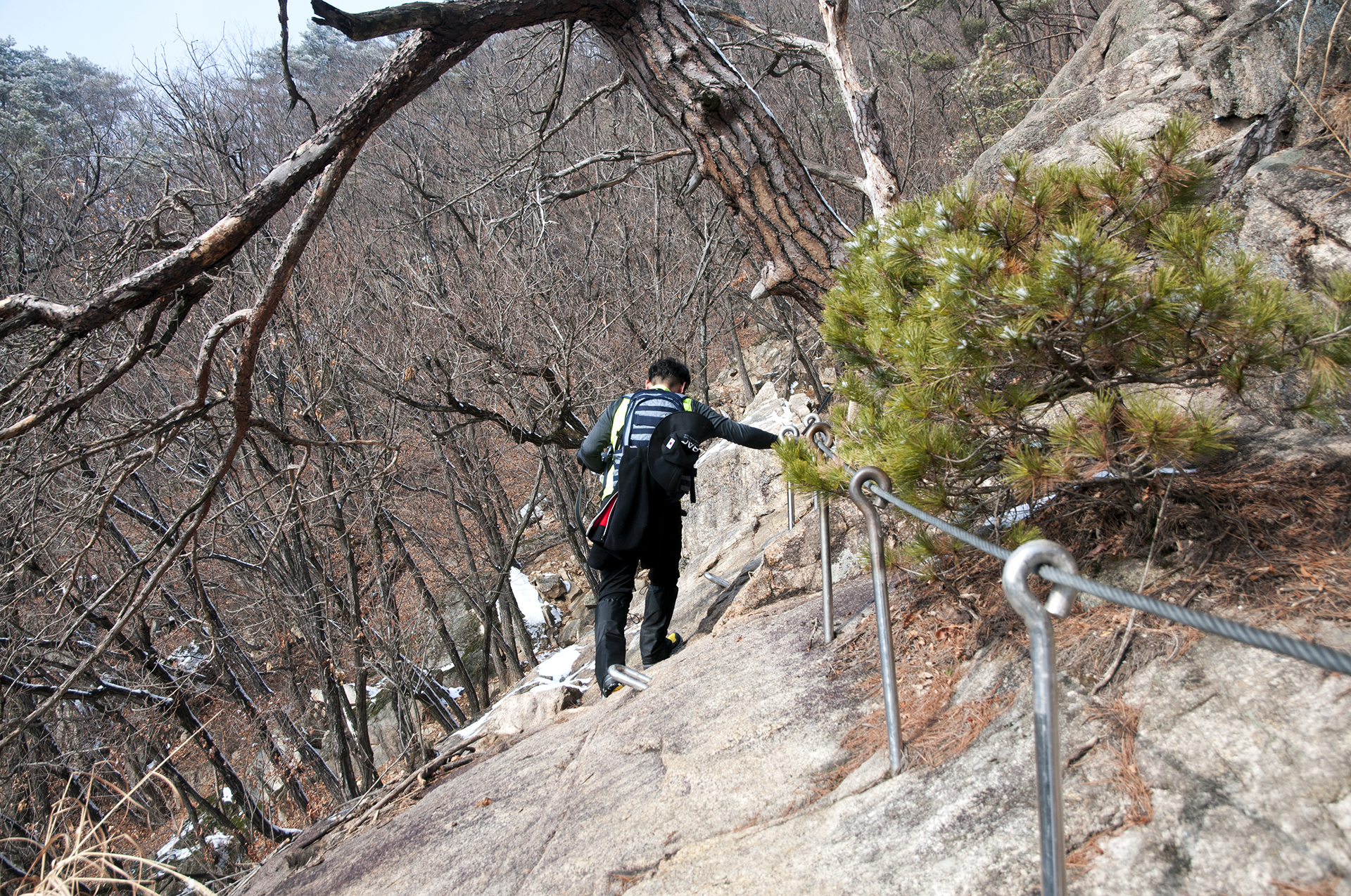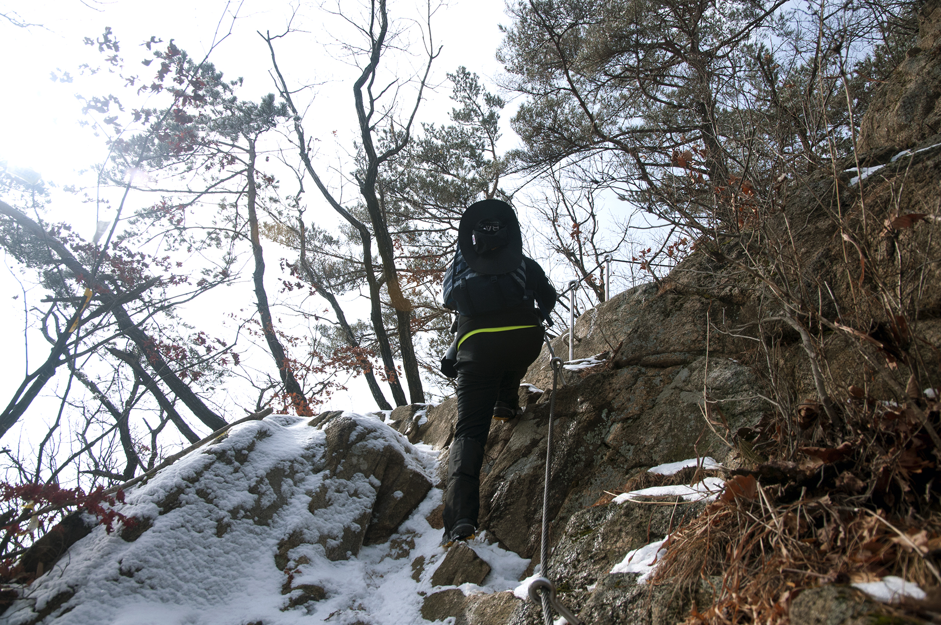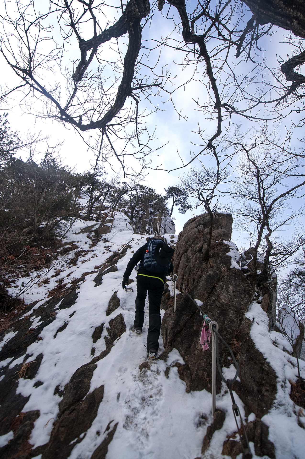 바위에 박힌 ㄷ자 쇠가 없었다면 올라가지도 못할 구간들이다.
