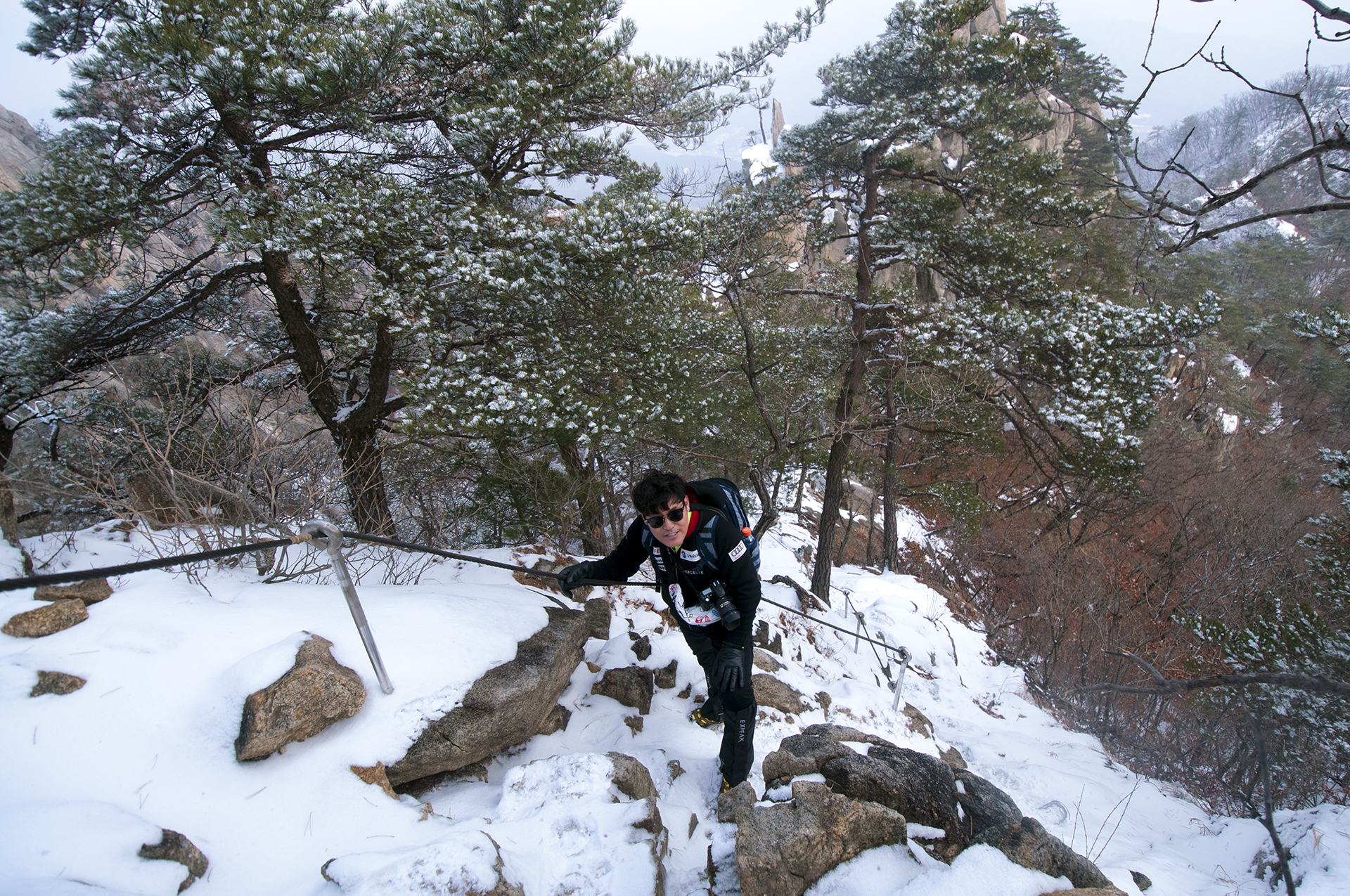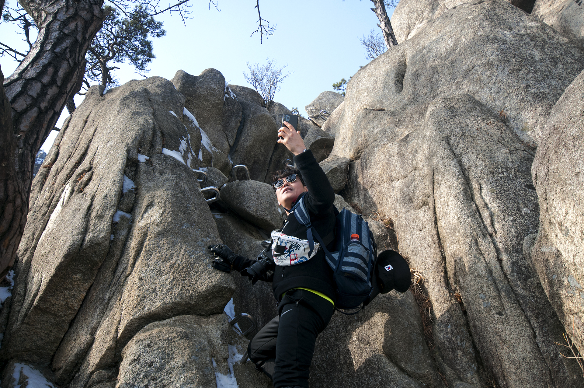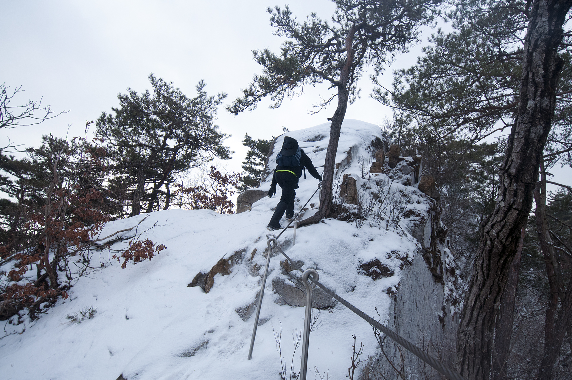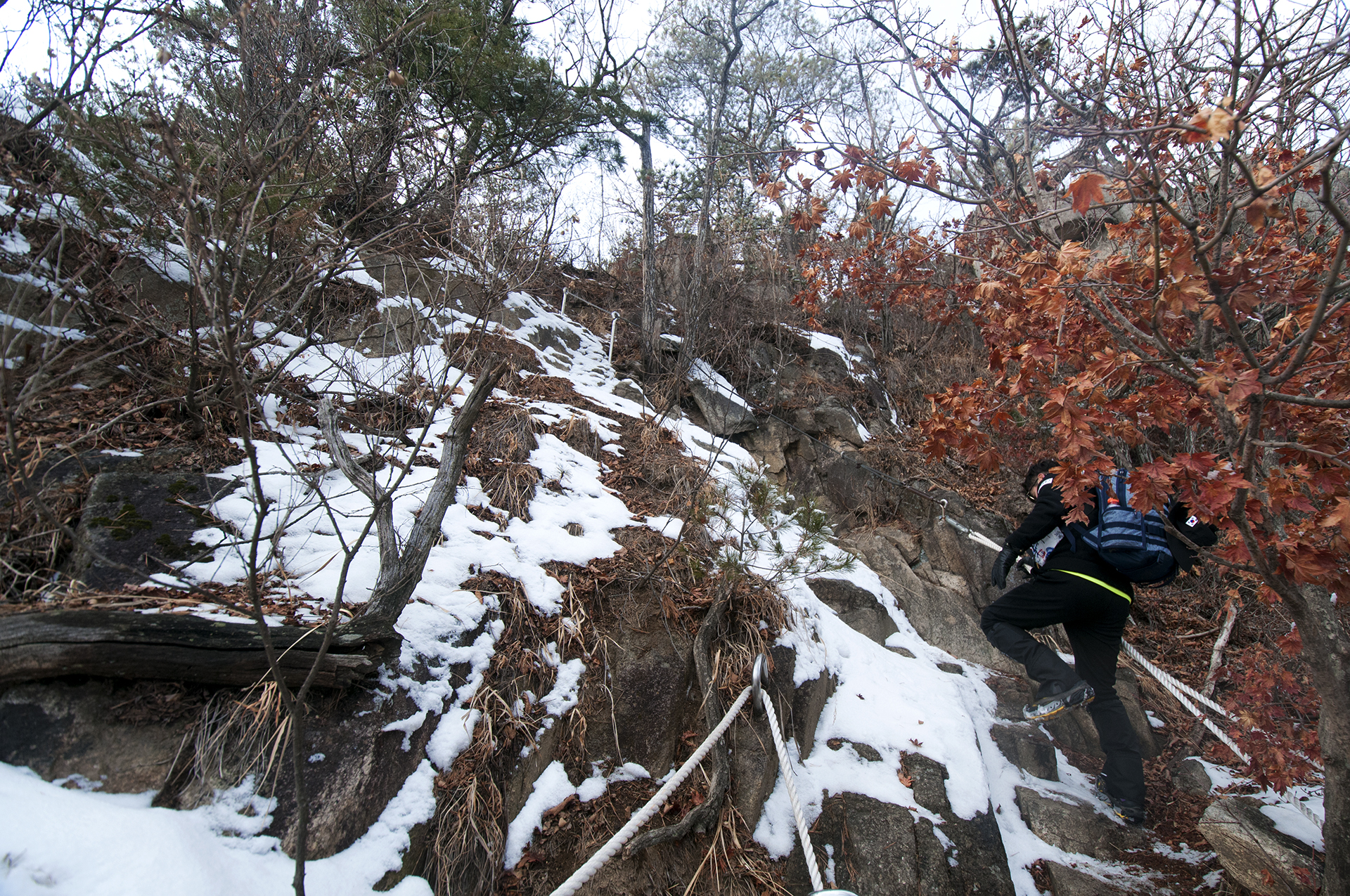 바위에 박힌 ㄷ자 쇠가 없었다면 올라가지도 못할 구간들이다.