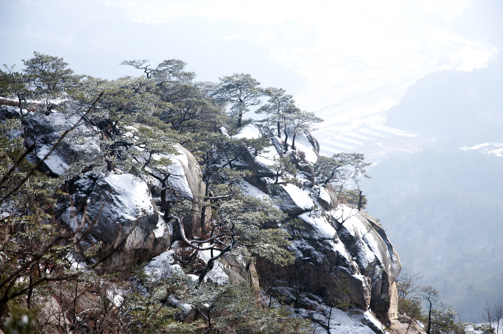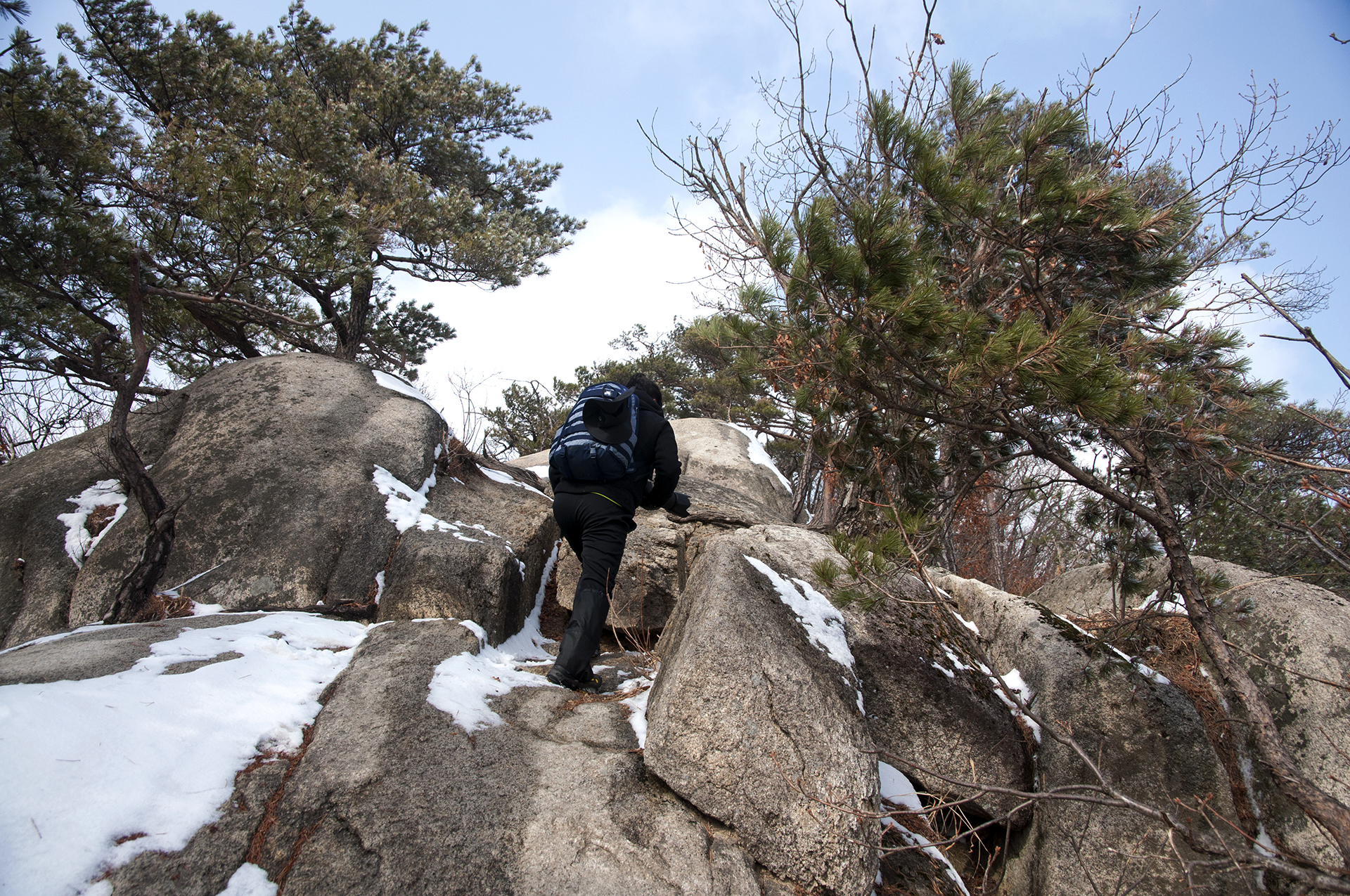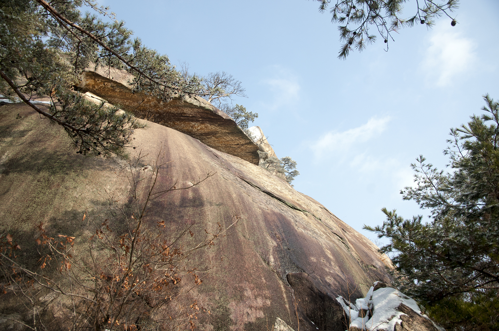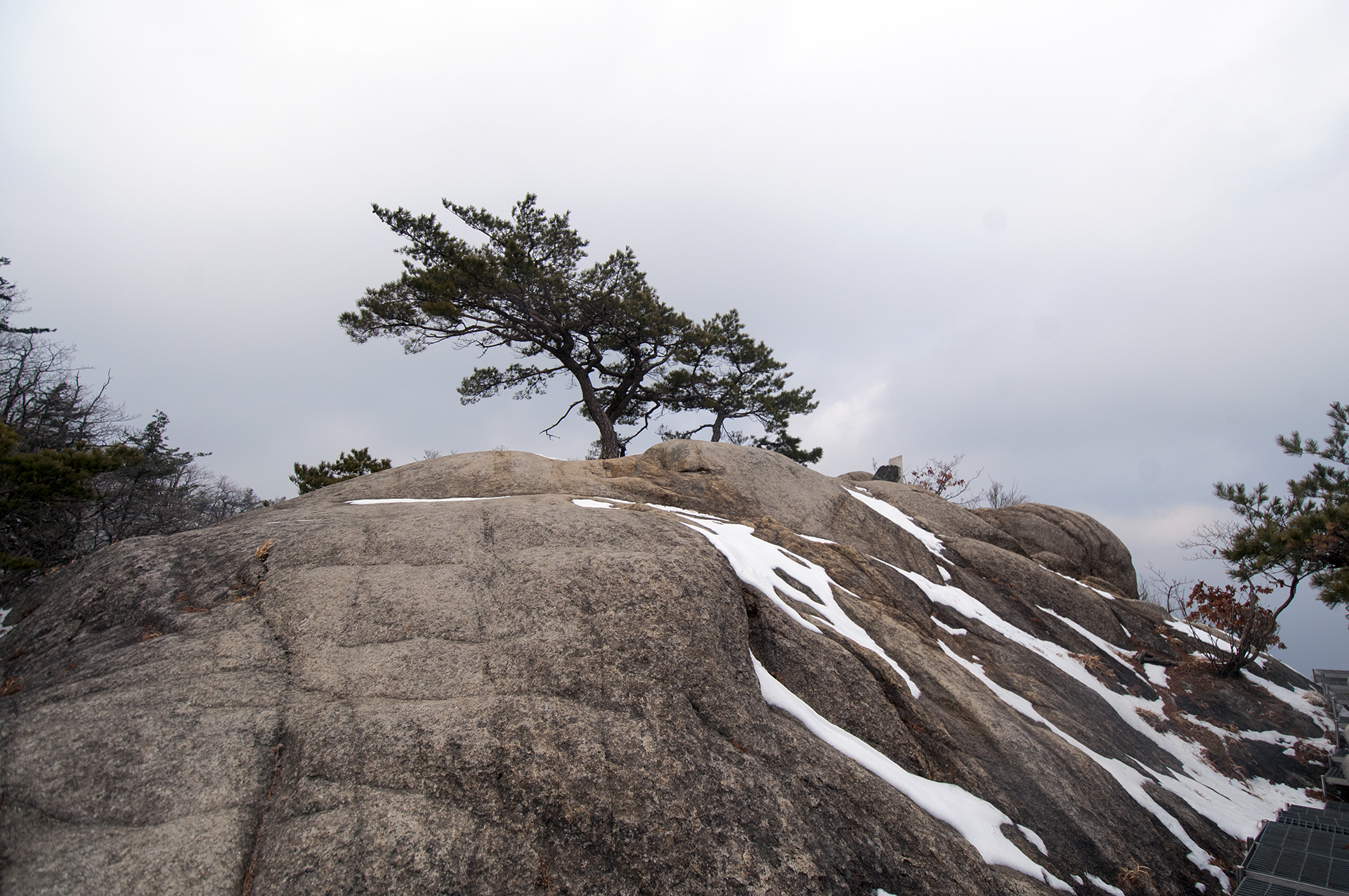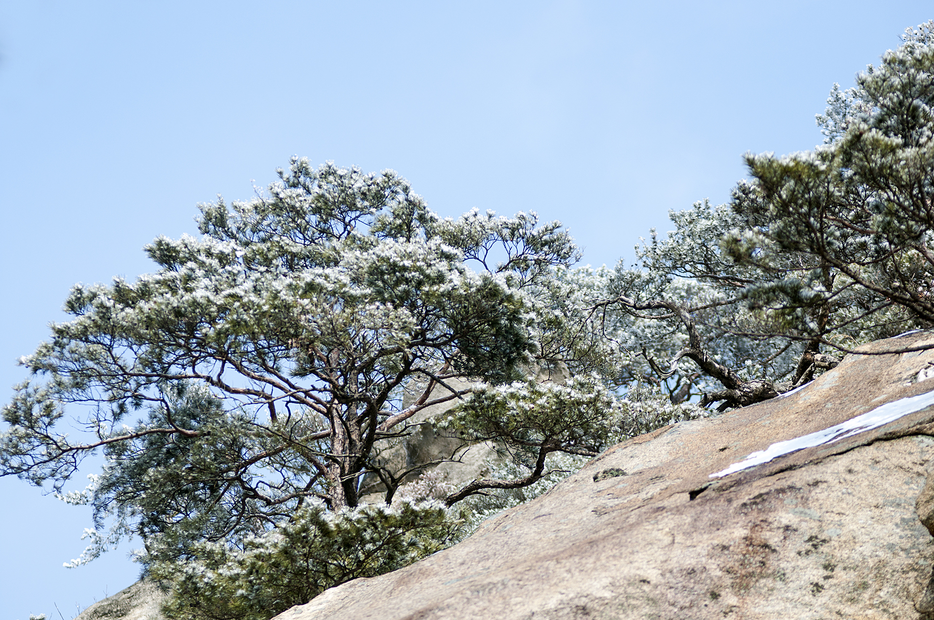 작은 소나무들이 바위 틈으로 뿌리를 내린채 이 겨울을 맞이하고 있다.