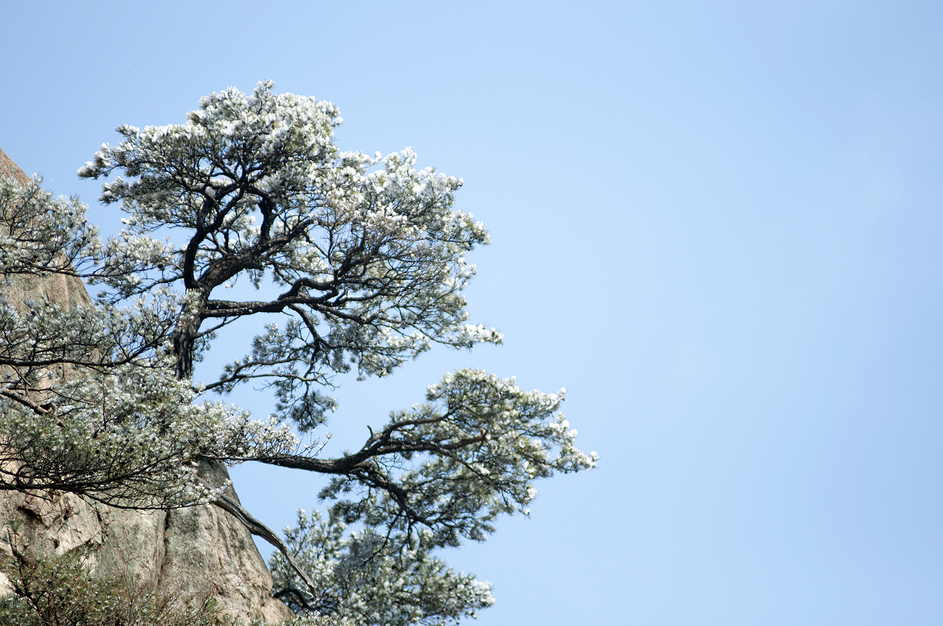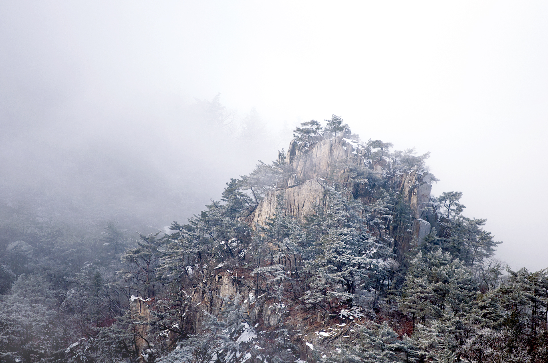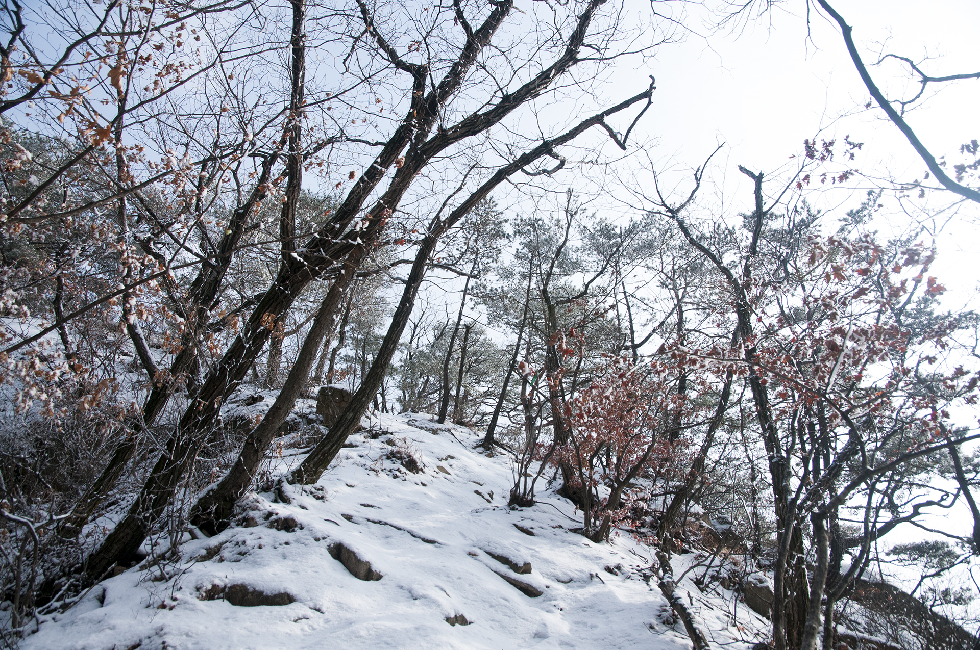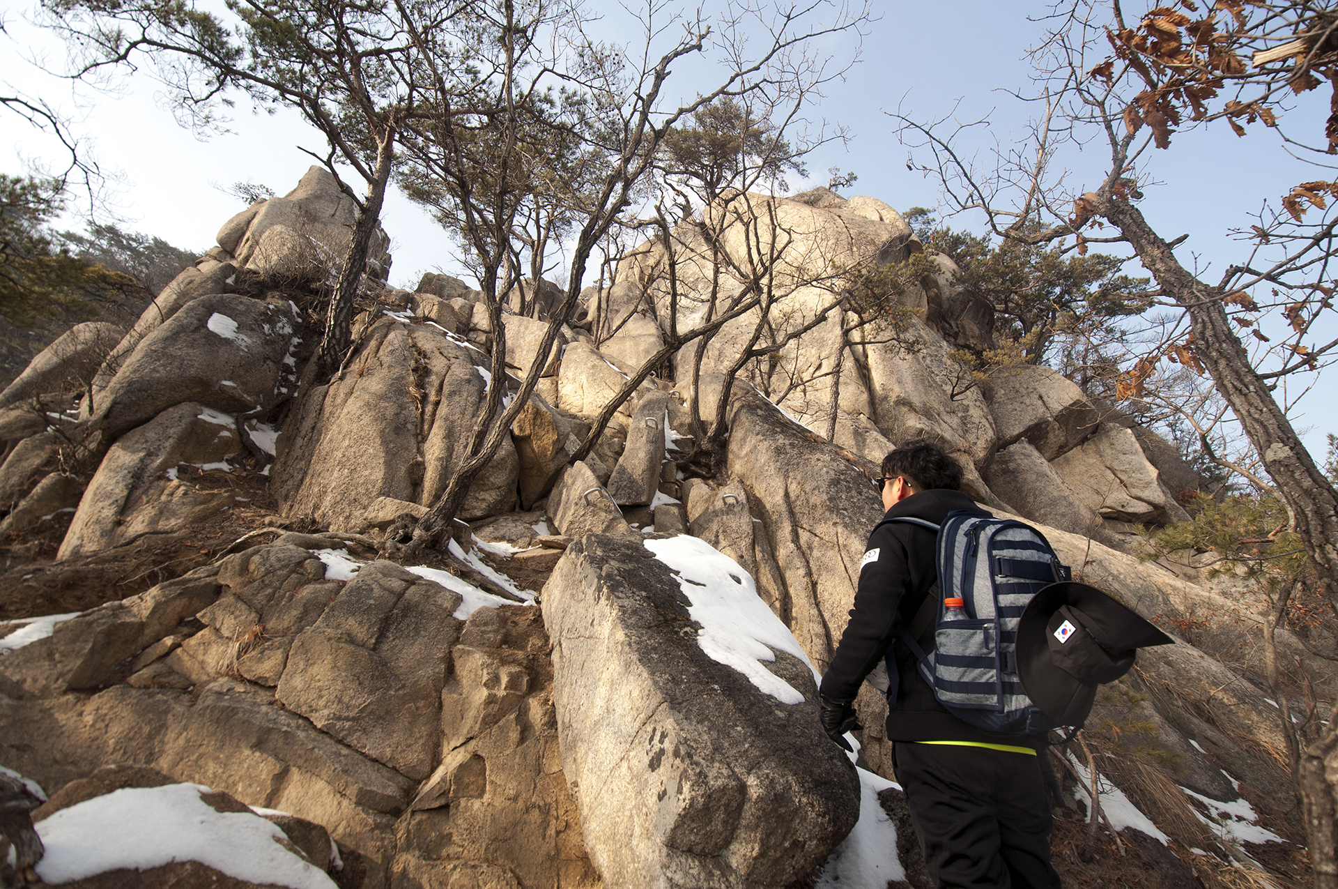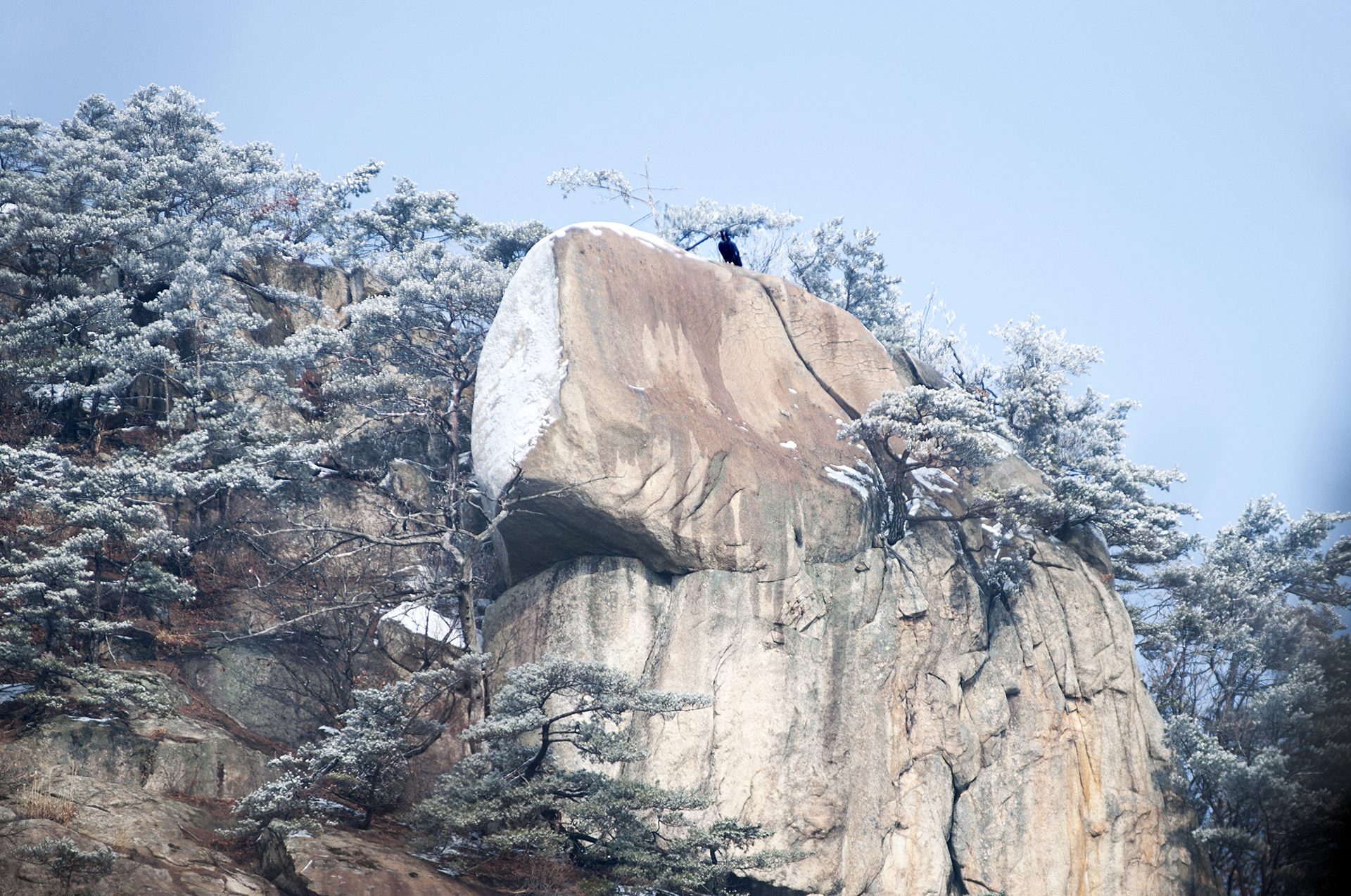 작은 소나무들이 바위 틈으로 뿌리를 내린채 이 겨울을 맞이하고 있다.