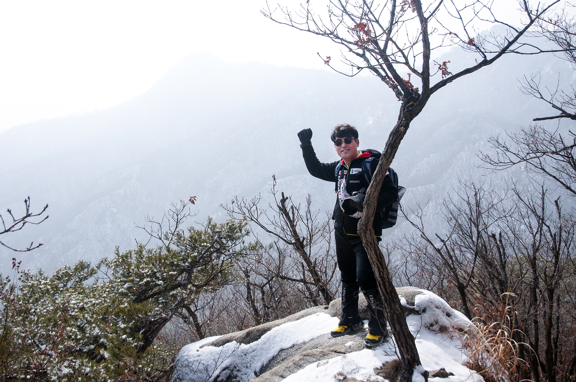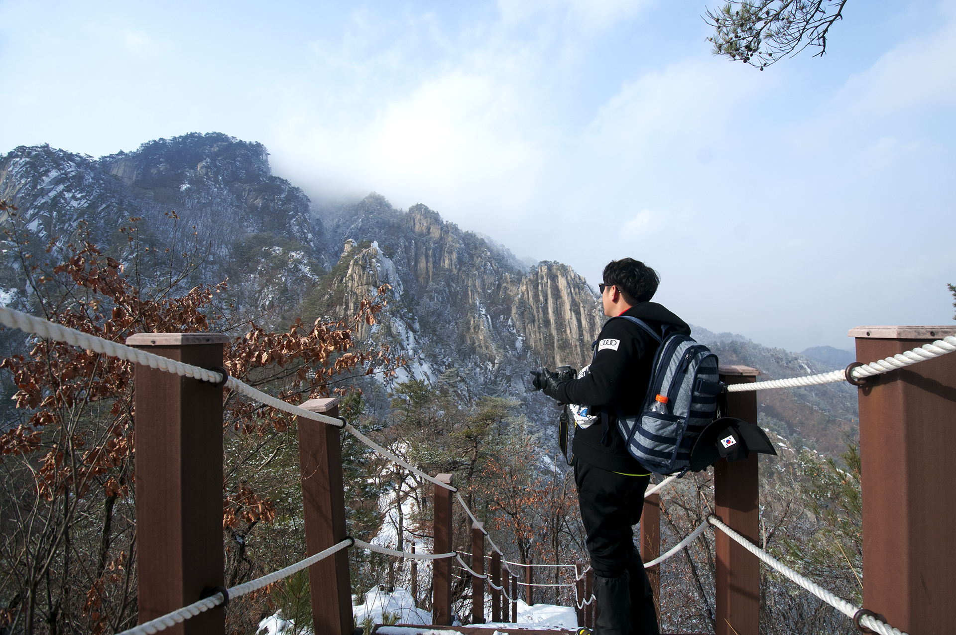 어느새 나무의 하얀 설경은 볼수 없었지만 저멀리서 안개가 밀려오고 있어 정상부근은 그리 쉽게 녹아 없어지지는 않을거라 기대해 본다.