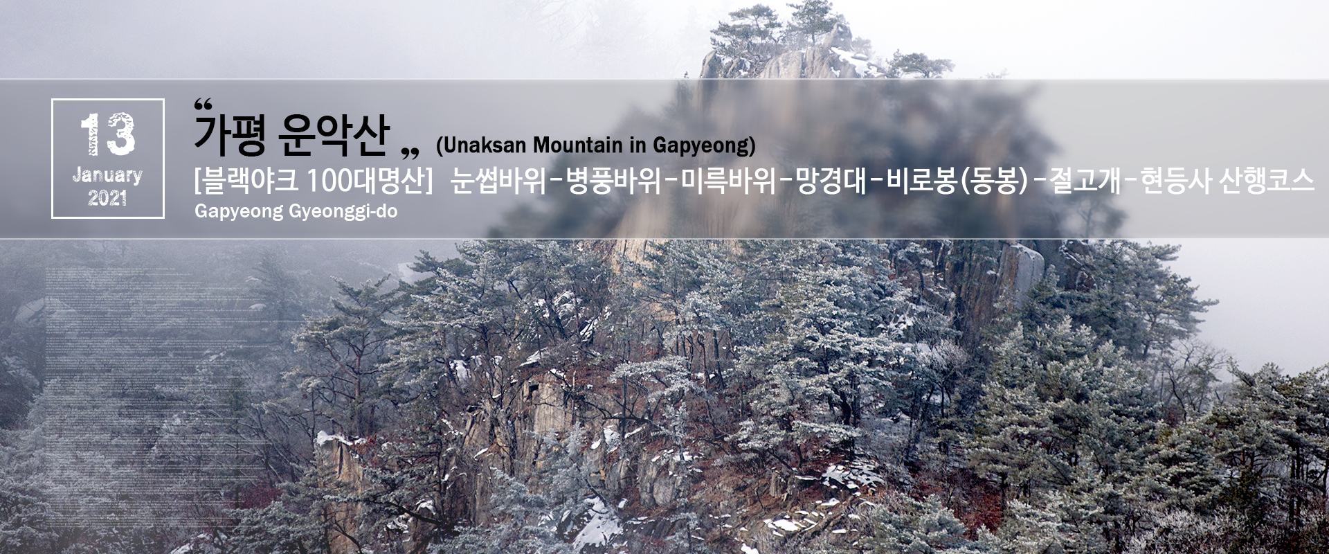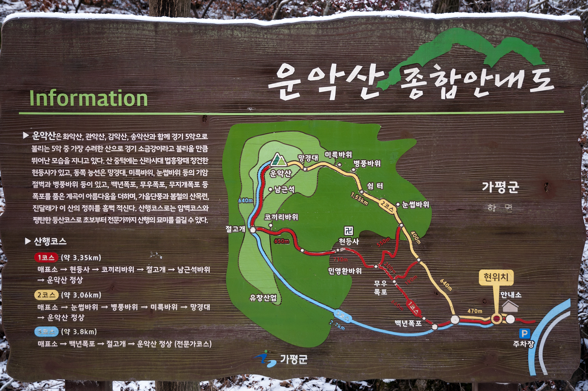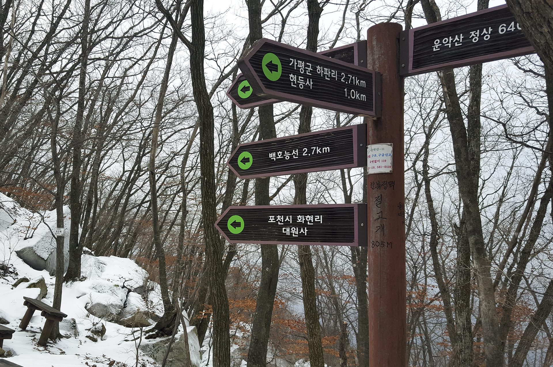 화요일 많은 눈이 내린 김에 토요일 일정이었던 운악산 산행을 앞당겨 다녀오게 됐다.