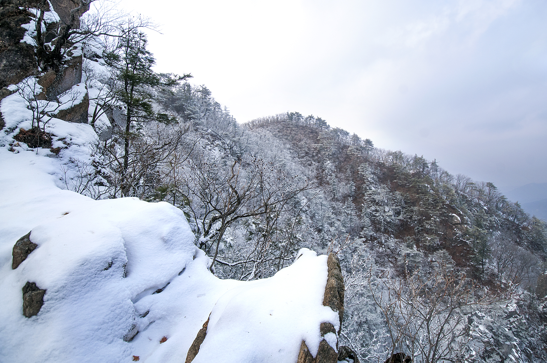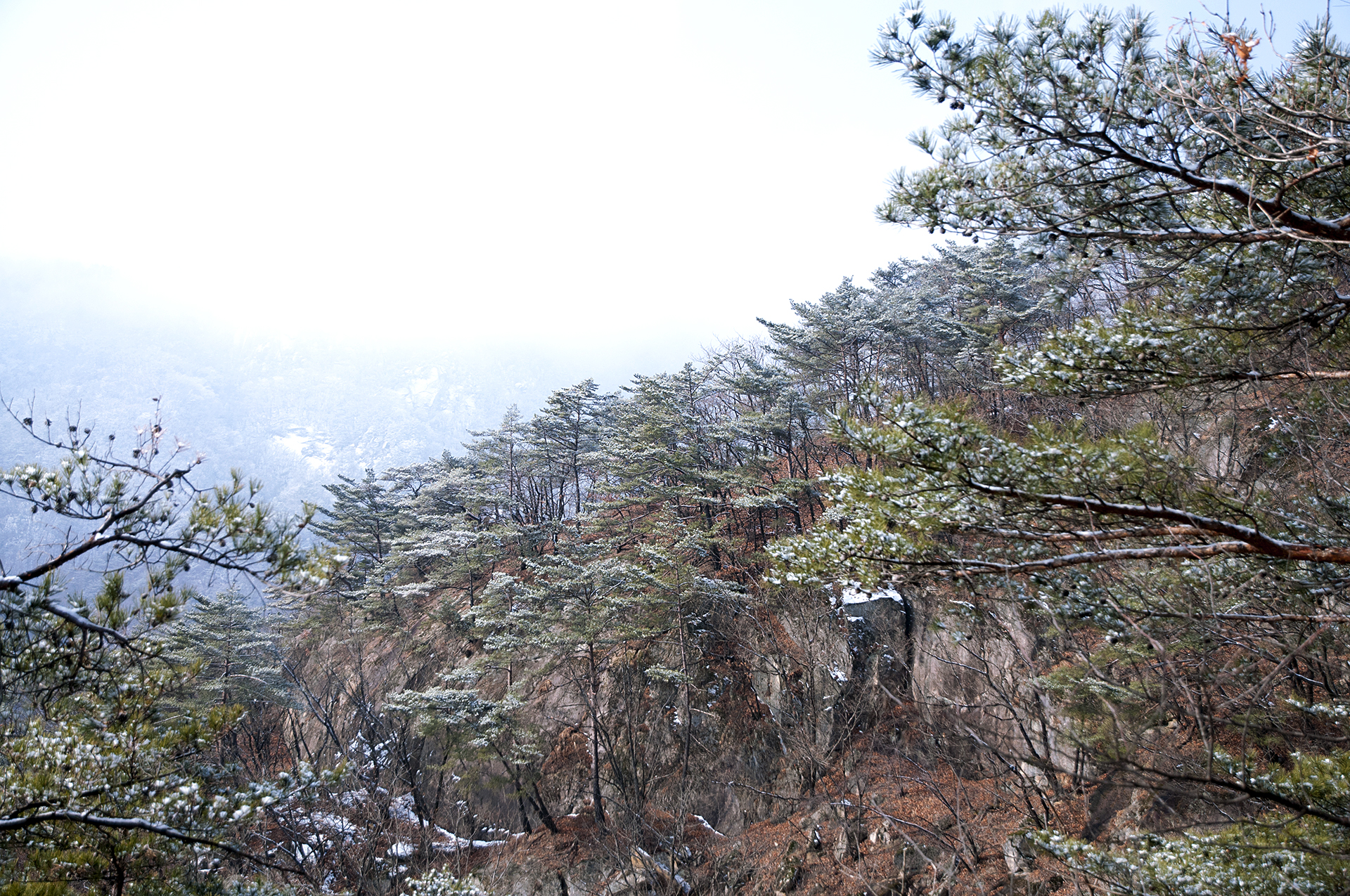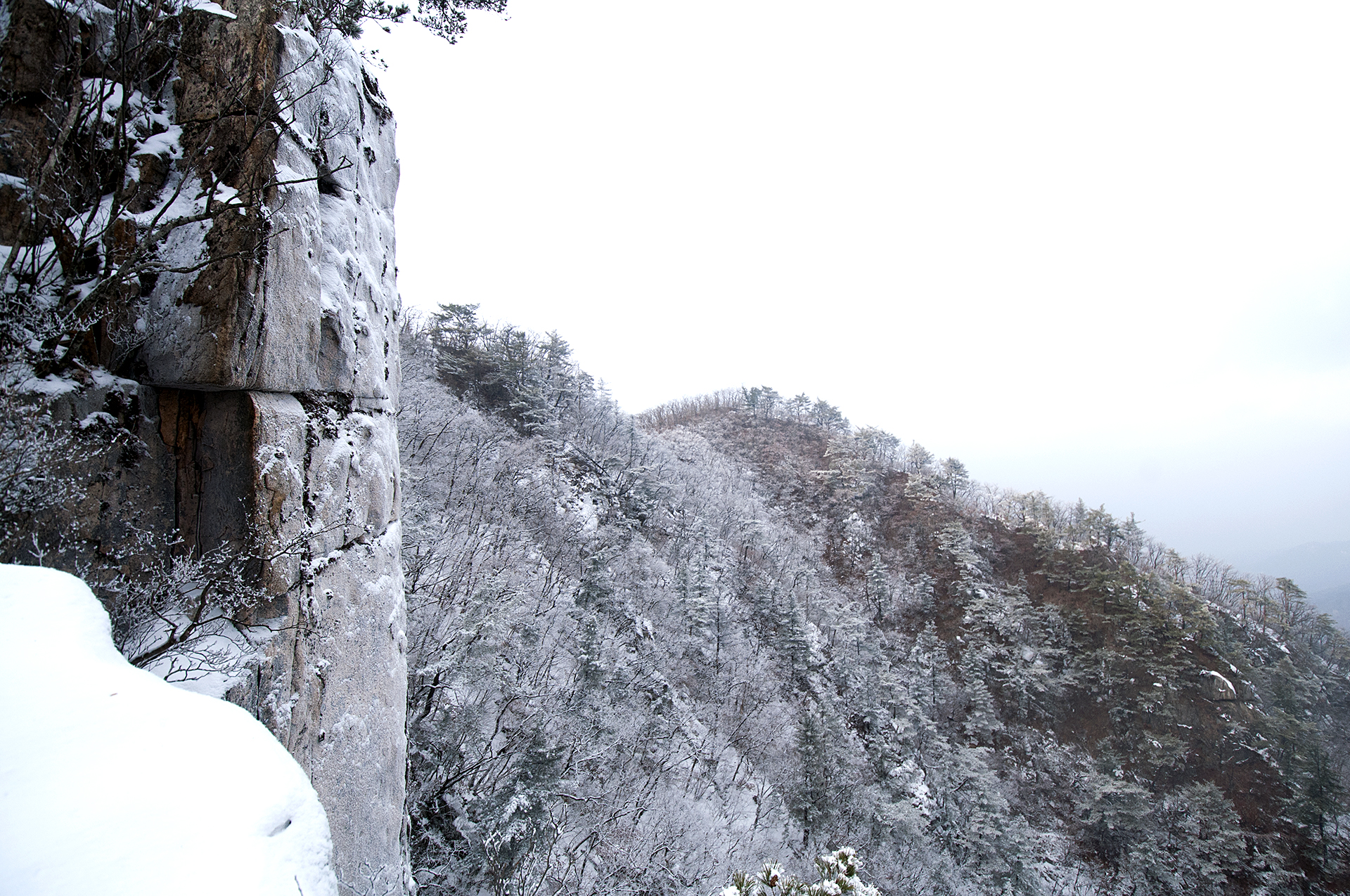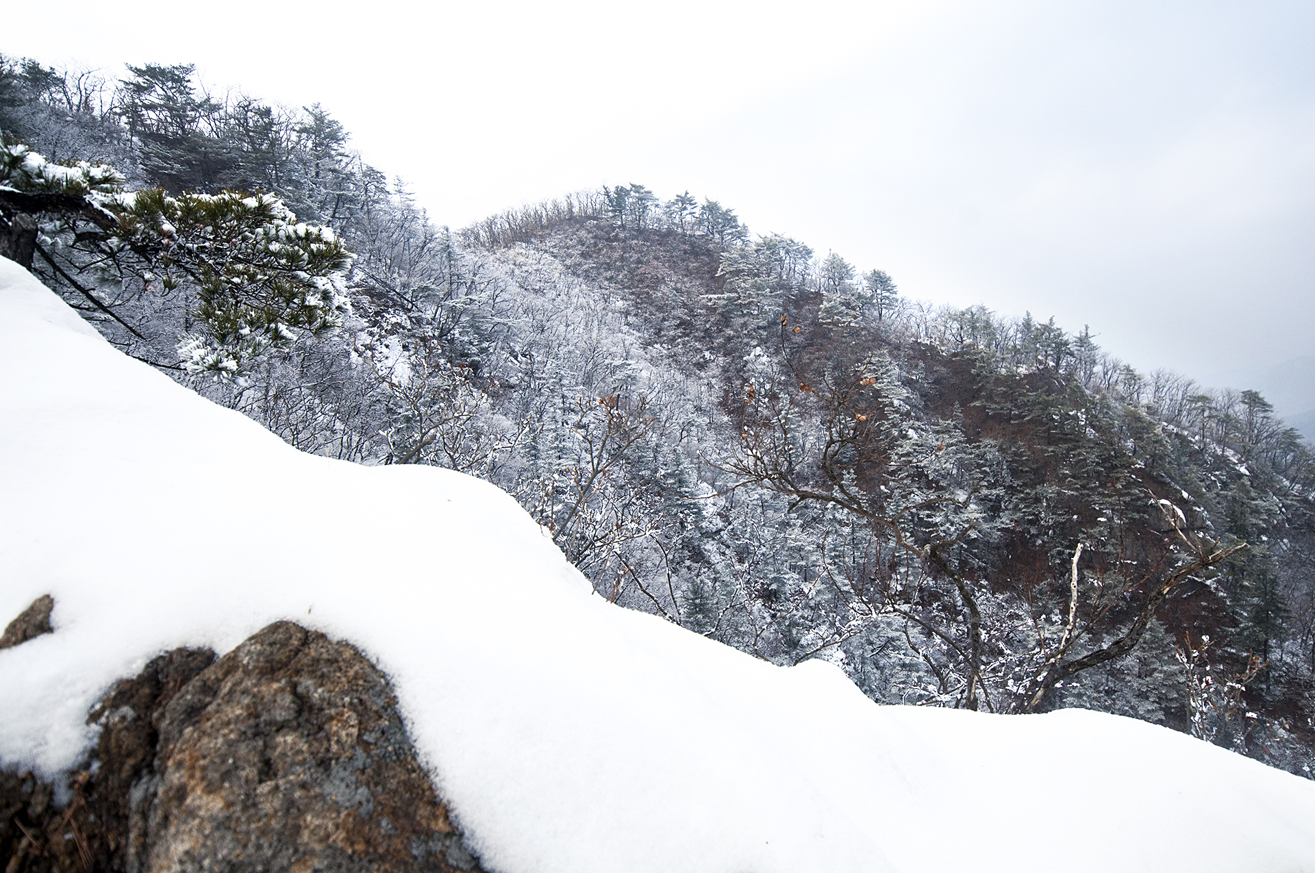 해가 들지않는 산등성이 반대쪽은 멋진 설경을 보여준다.