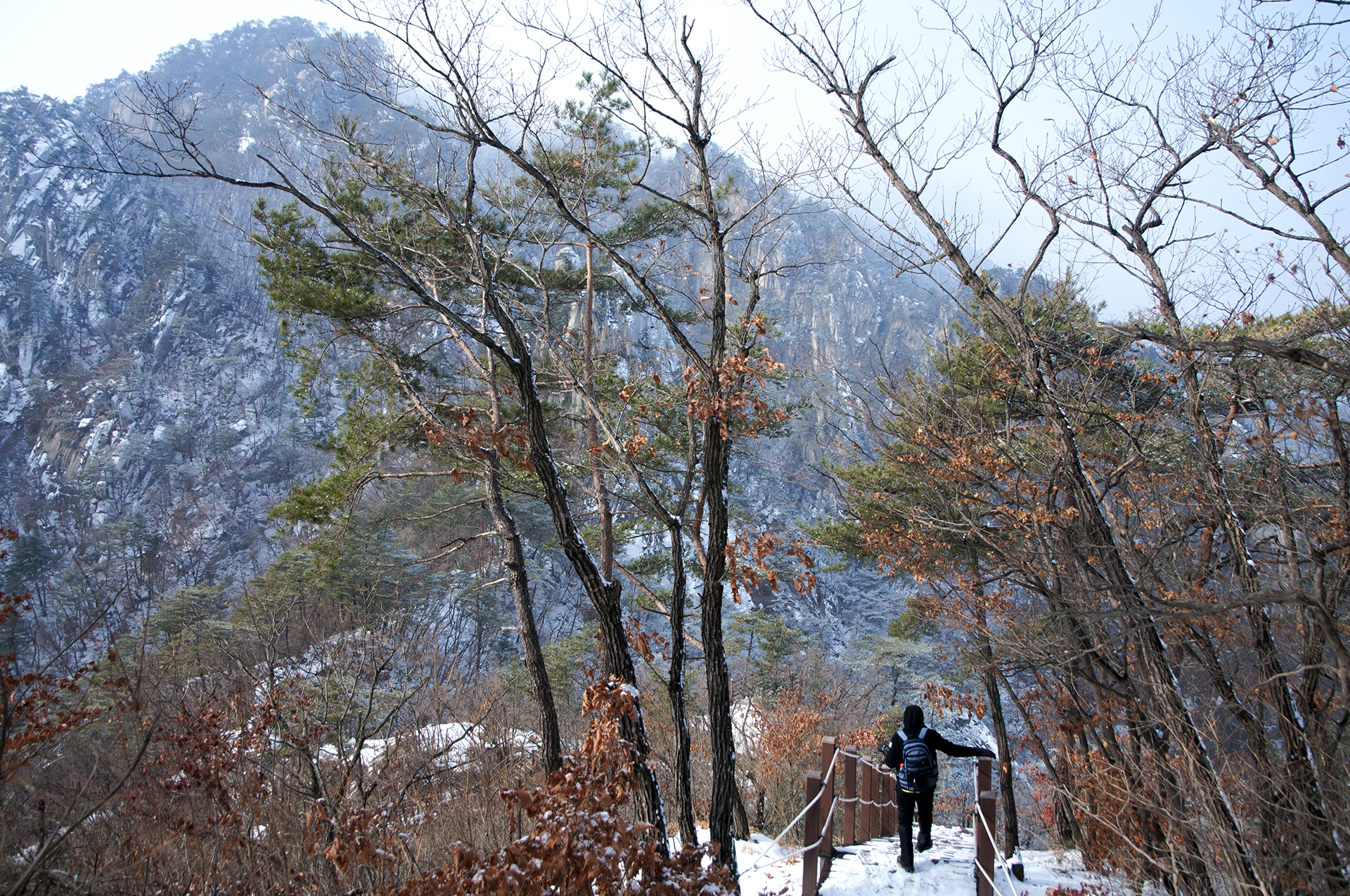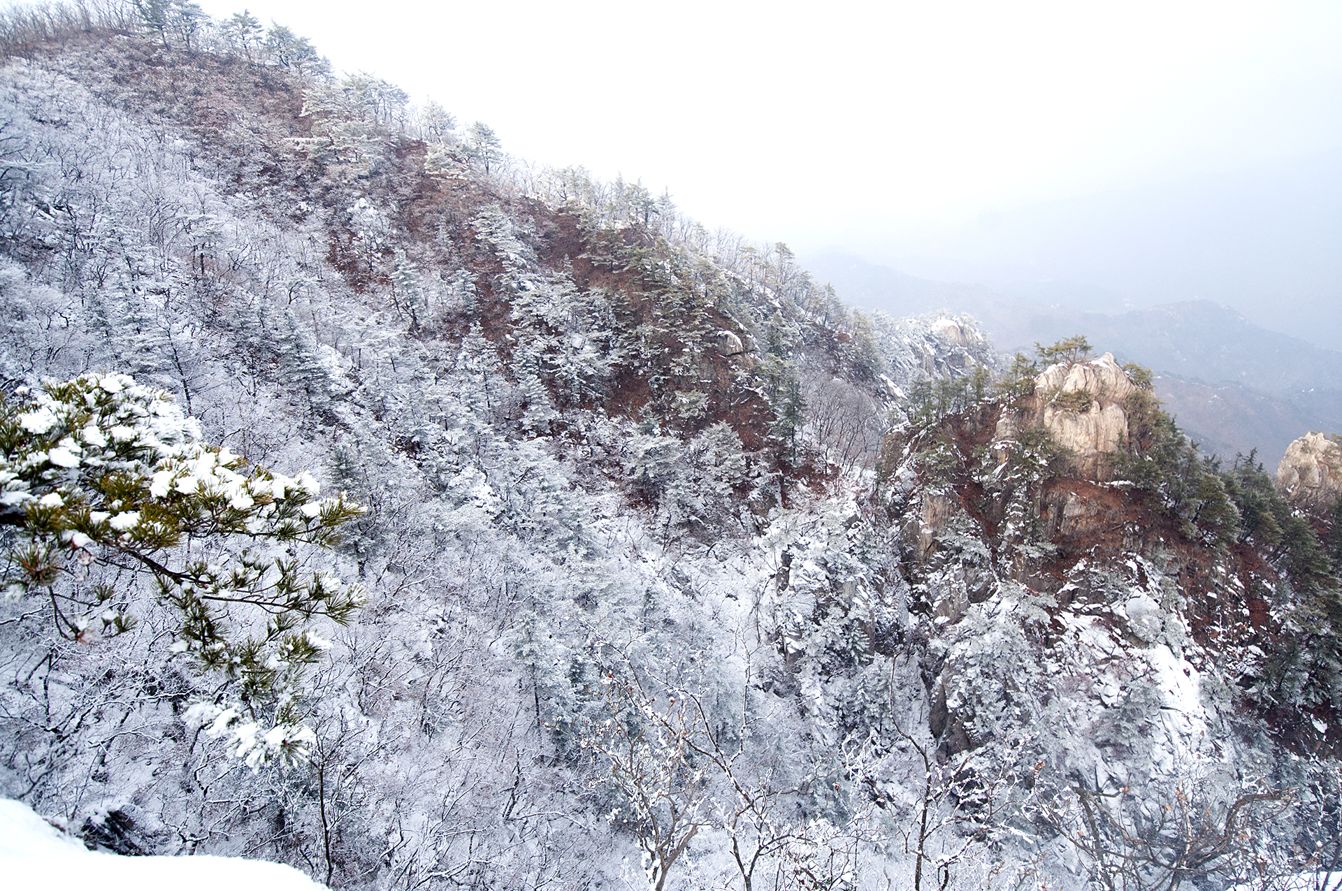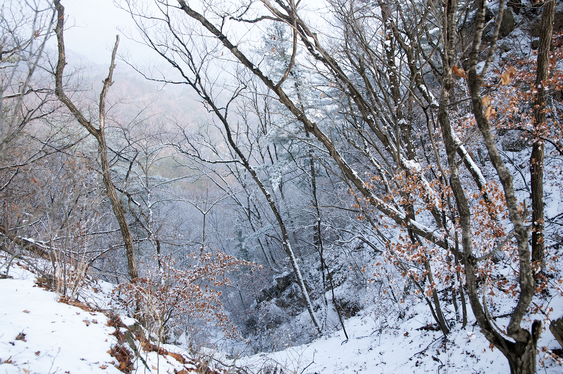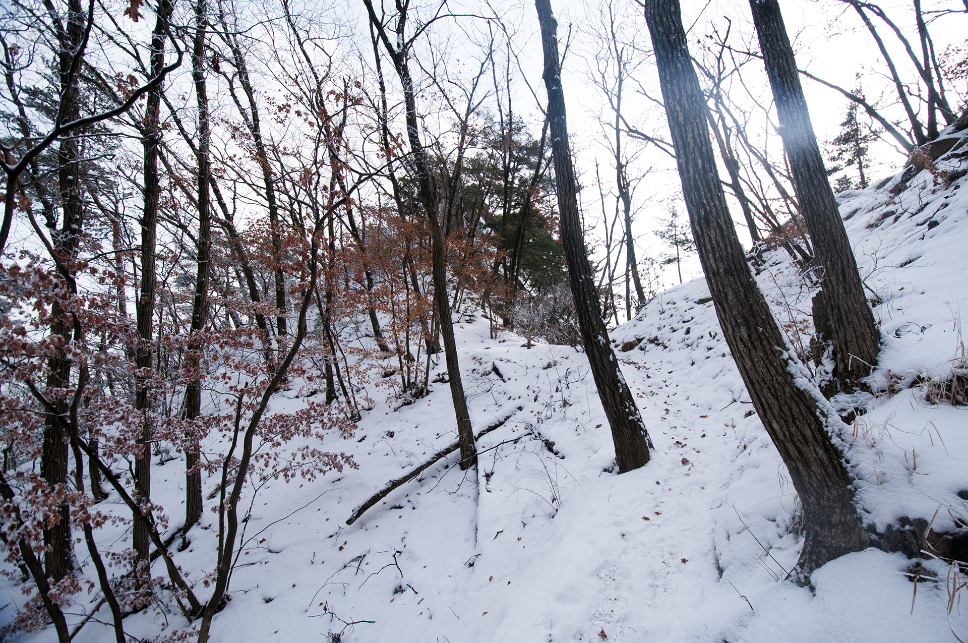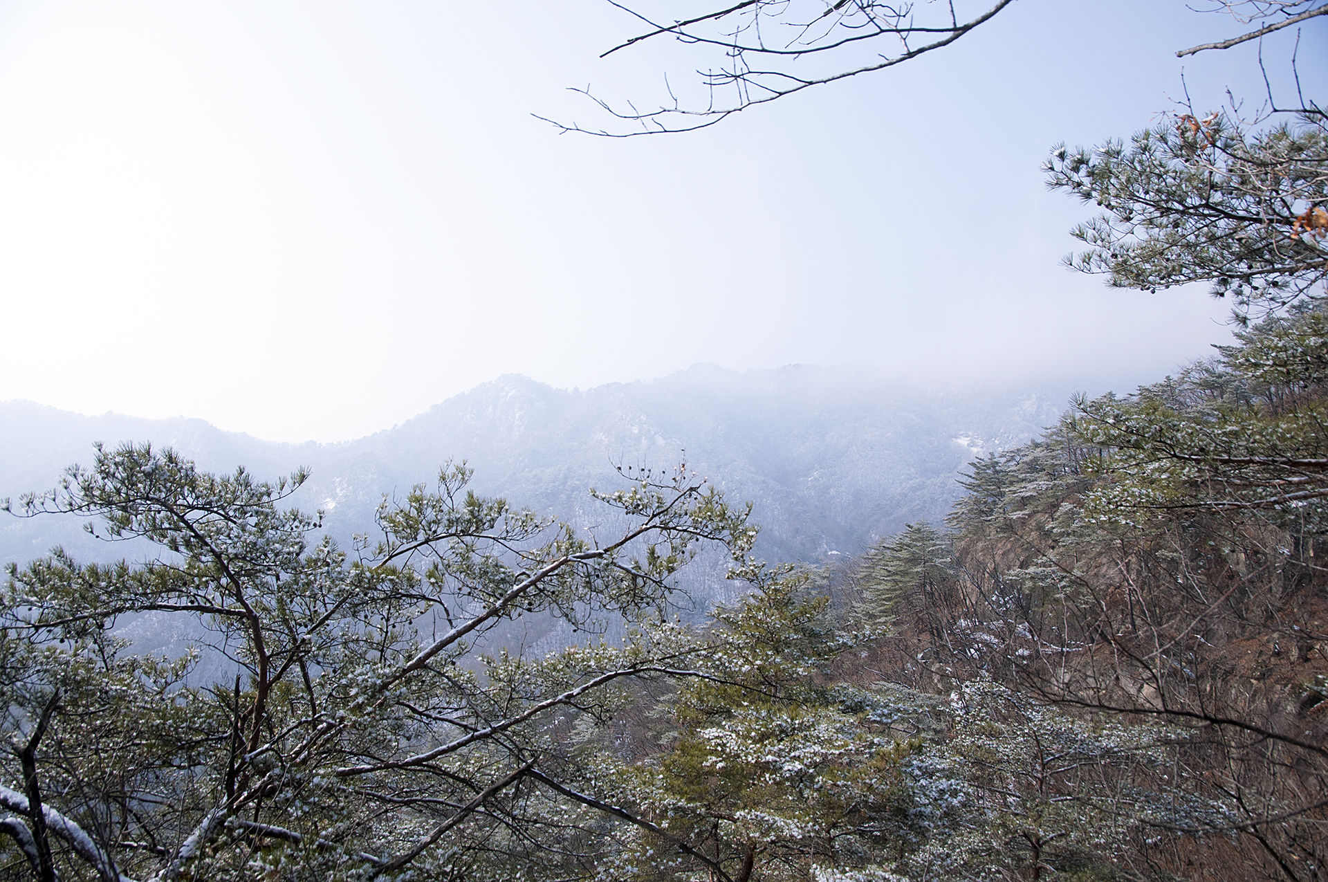 해가 들지않는 산등성이 반대쪽은 멋진 설경을 보여준다.
