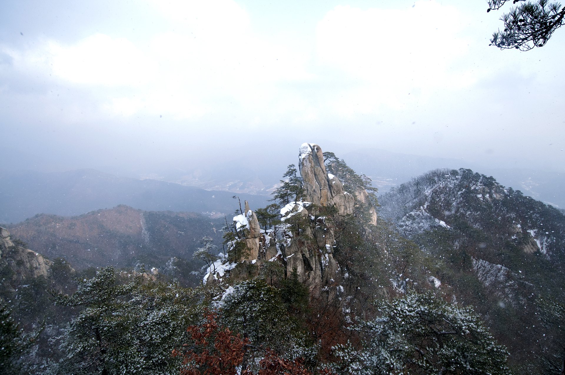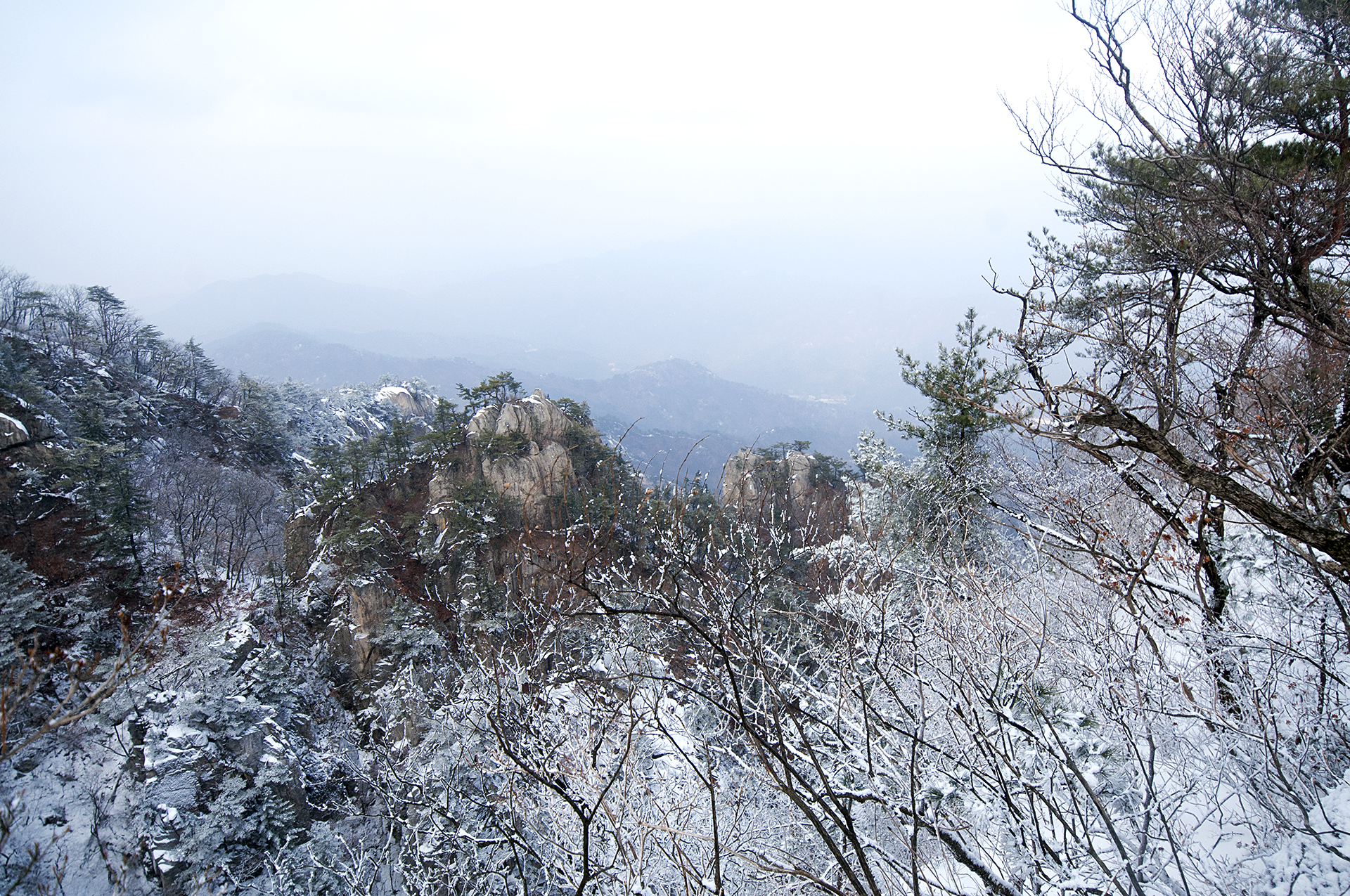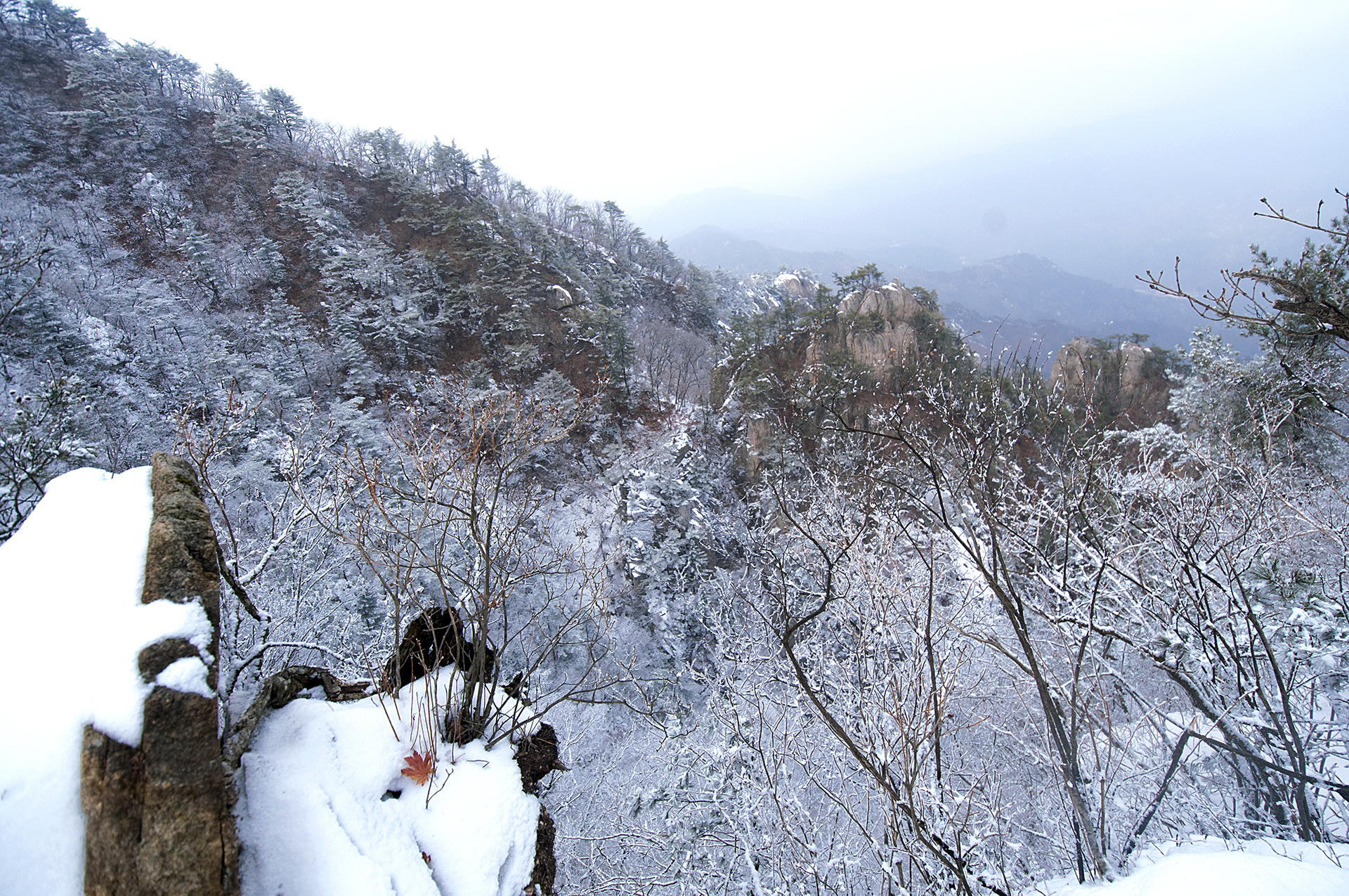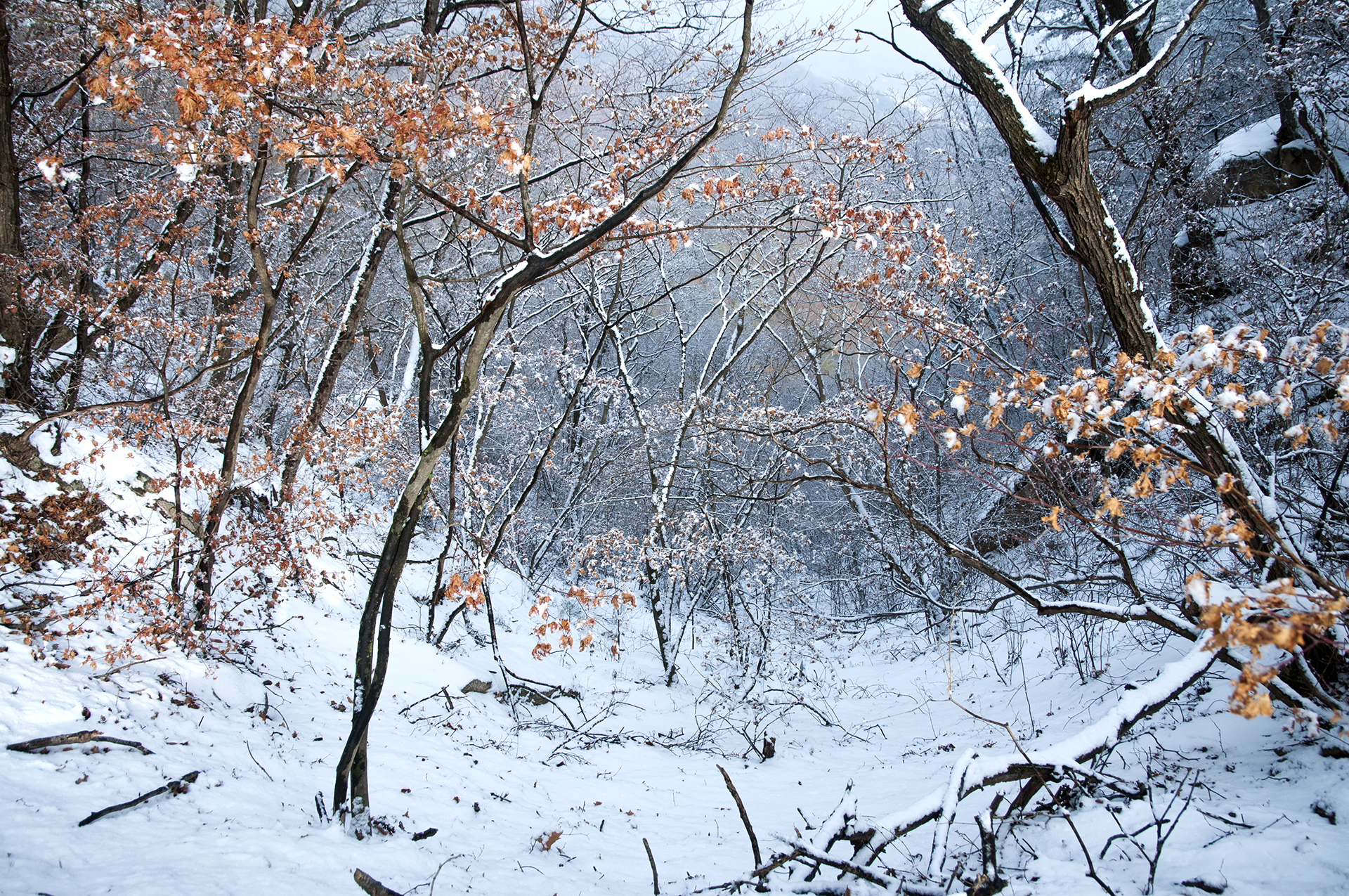 해가 들지않는 산등성이 반대쪽은 멋진 설경을 보여준다.
