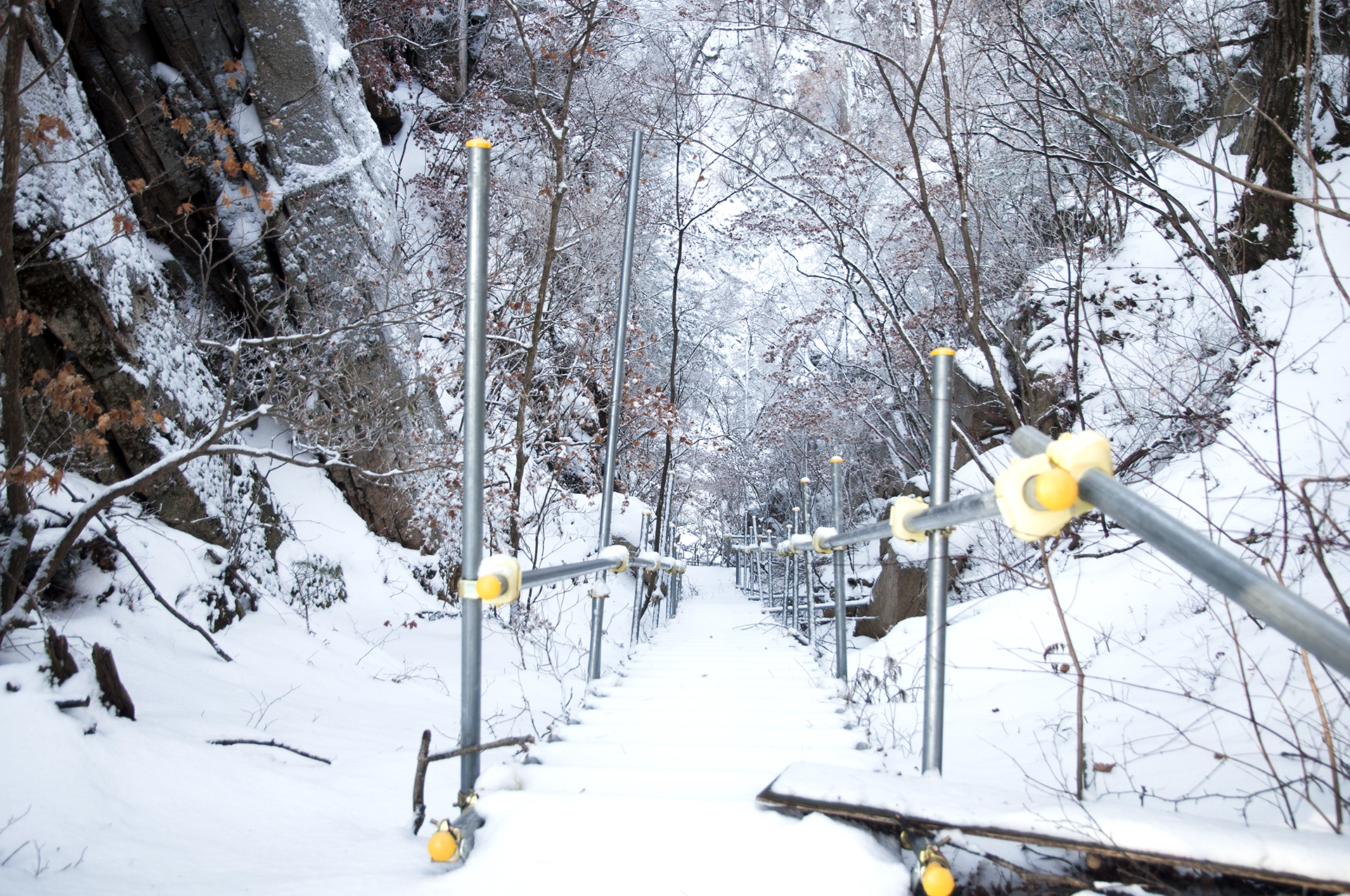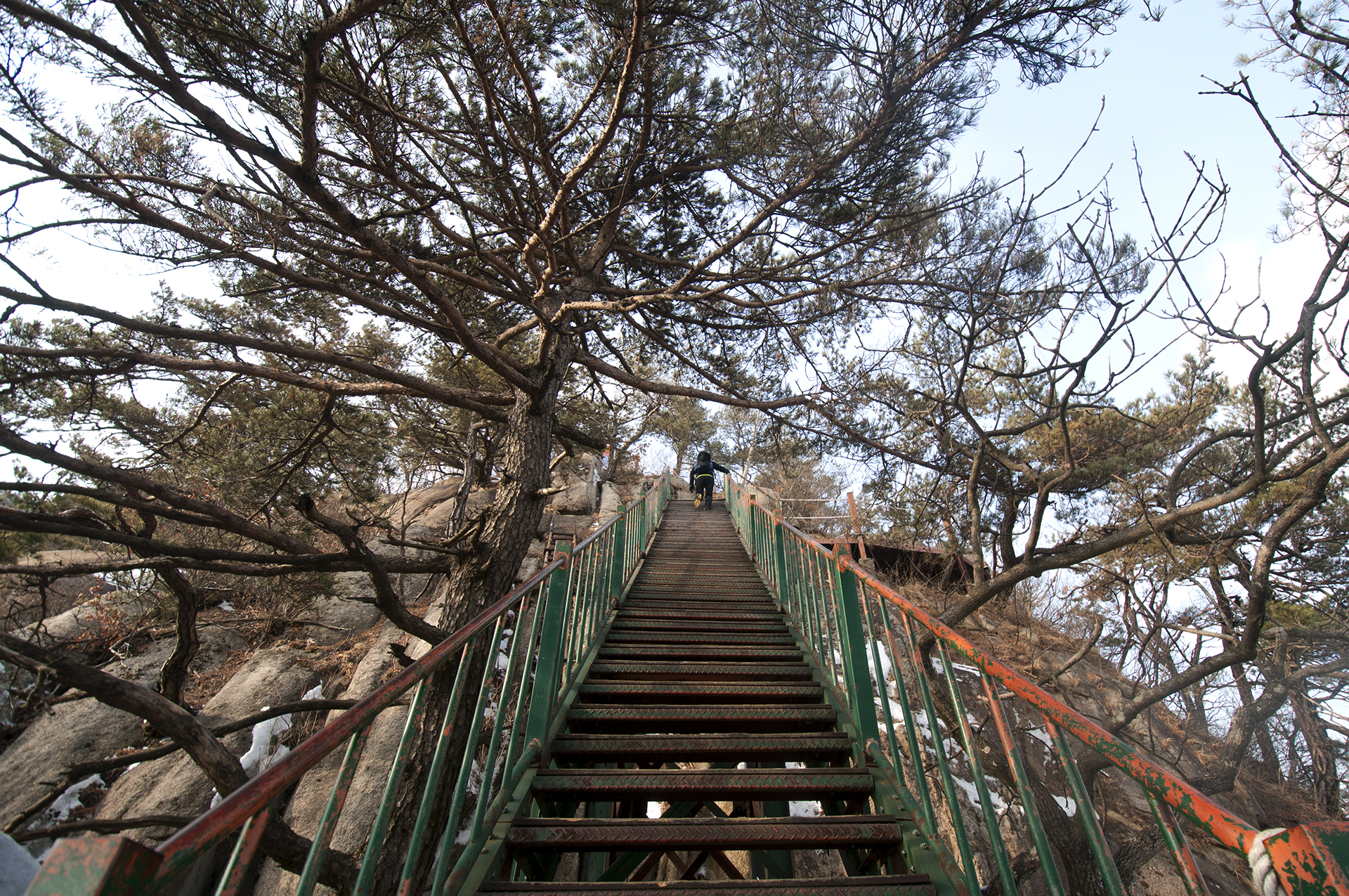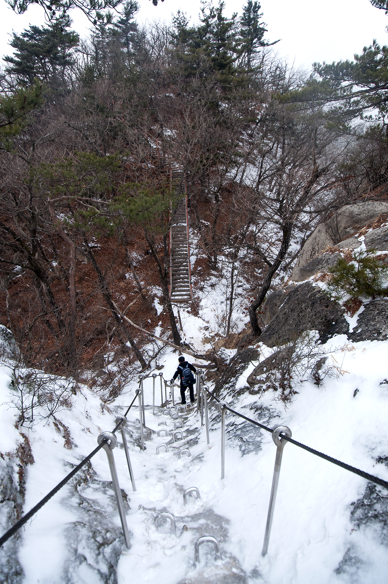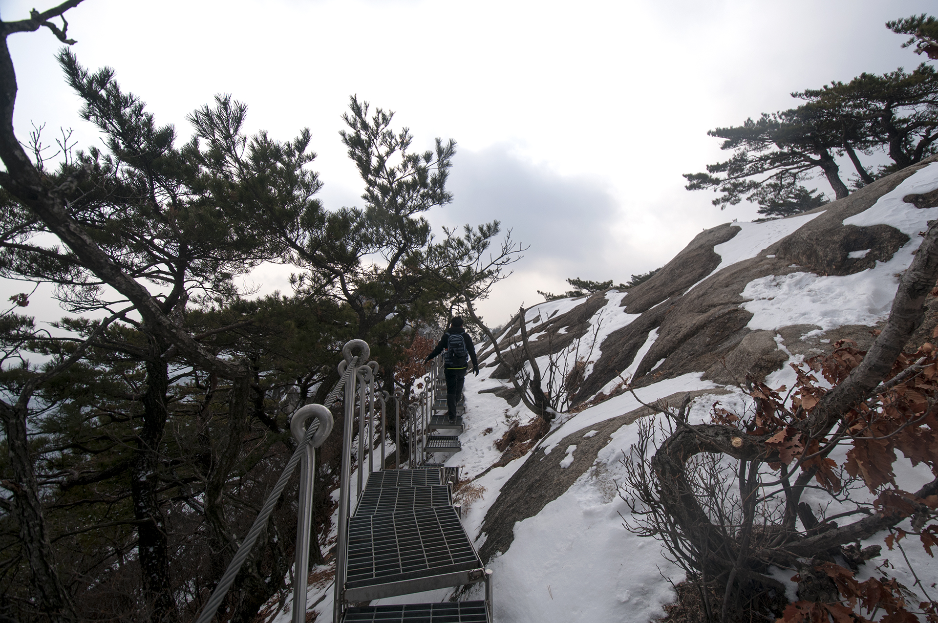 암벽을 지나자 바로 철계단이 이어진다.