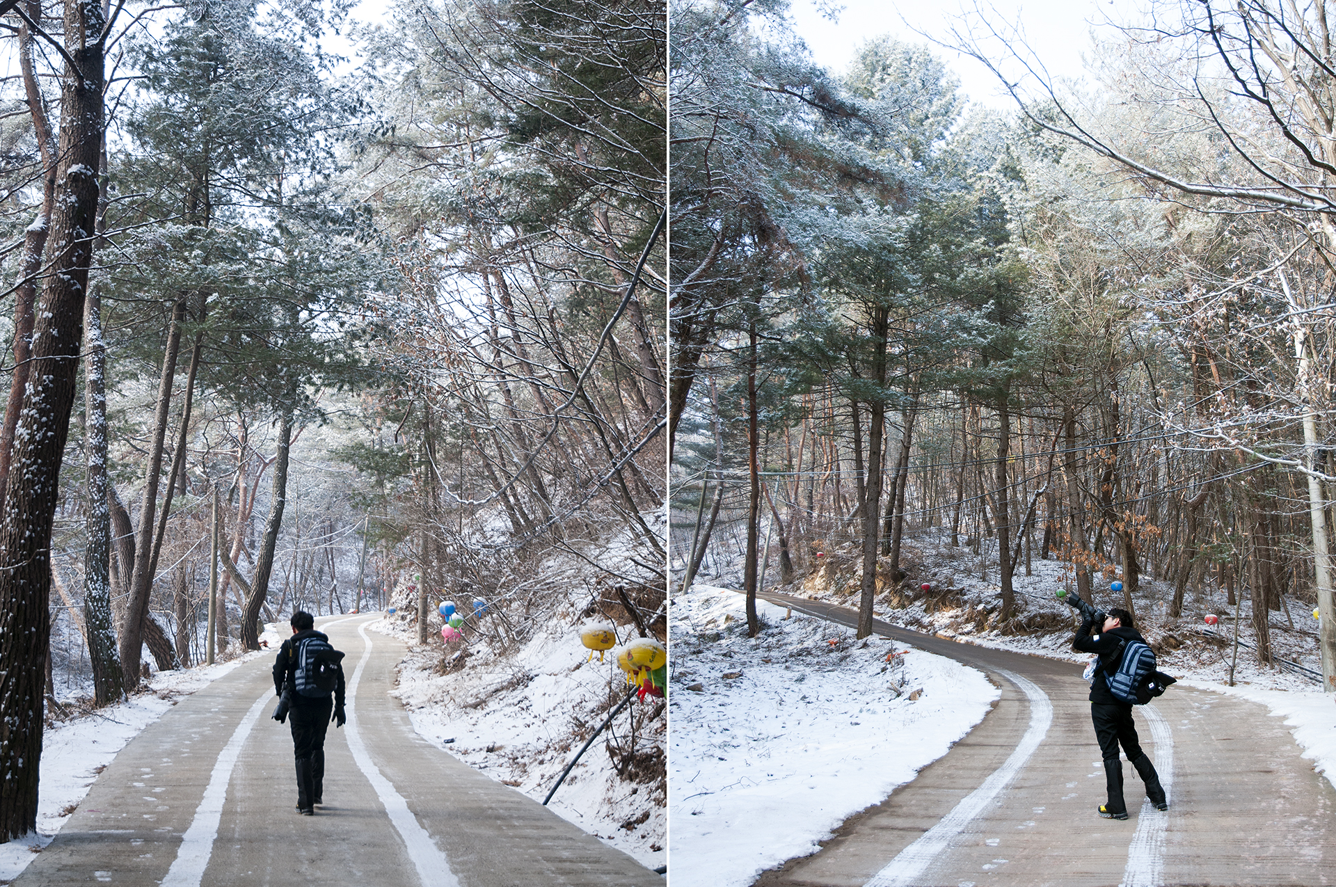 전날 눈이 많이 와 아직은 설경이 볼만하지만 한낮 온도가 4도로 워낙 따뜻한 날씨여서 해가 드는곳은 점점 녹아가고 있는 중이다.