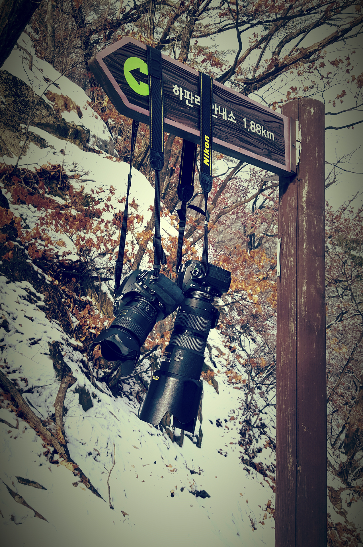 해가 넘어가 자칫하면 하신길에 어두워져서 고립될수 있다는 두려움(?)에 이 멋진 설경을 스치듯 지나가며 감상은 커녕 의무적으로 카메라로만 일단 담아둔다.
