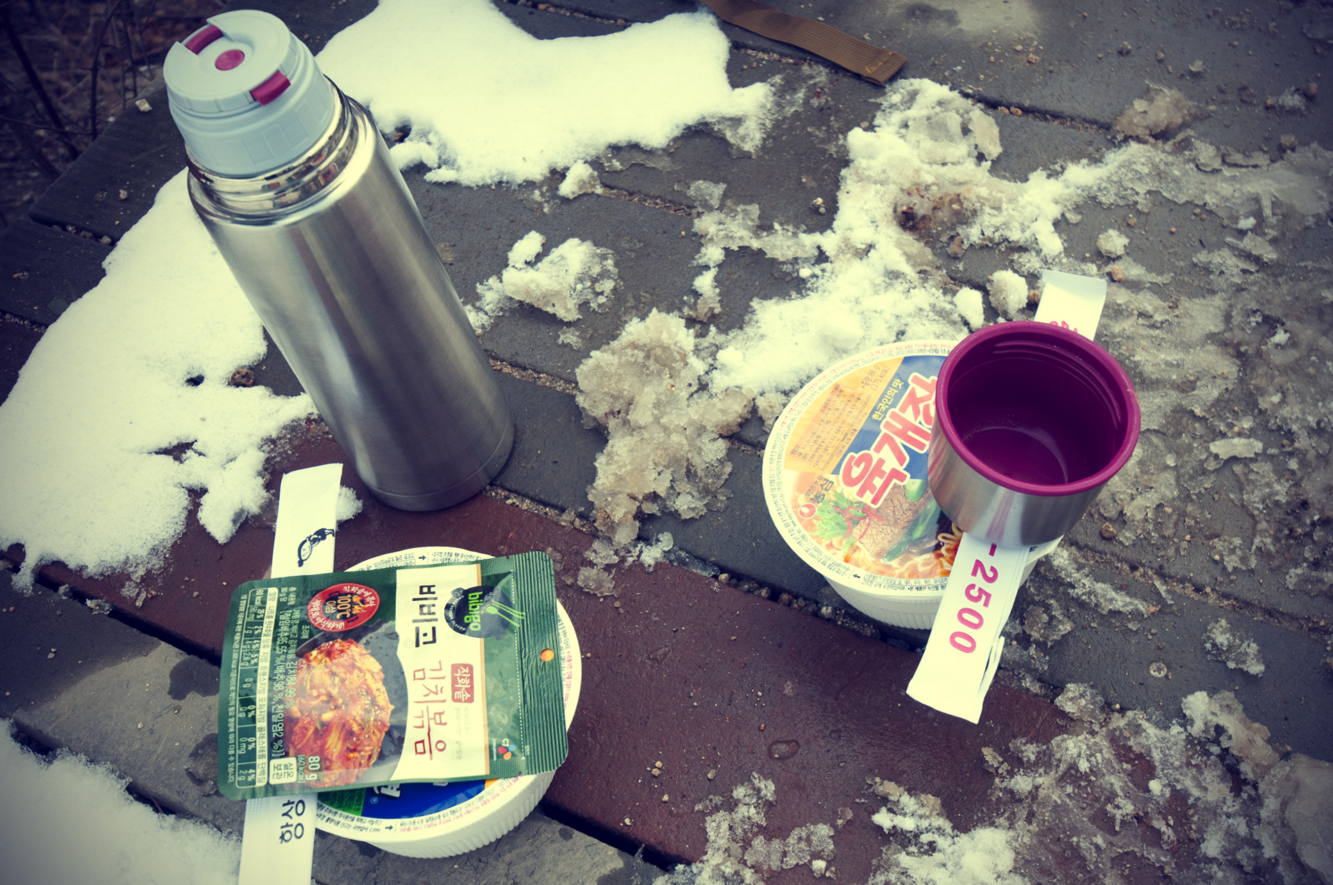 일단 컵라면에 물을 붓고, 오늘 초코바 하나 외에 첫끼,,