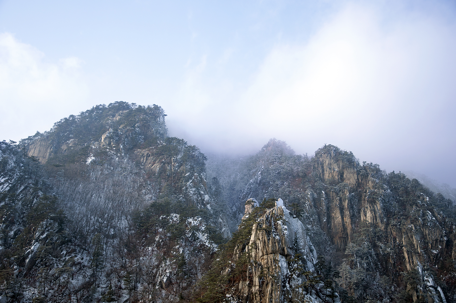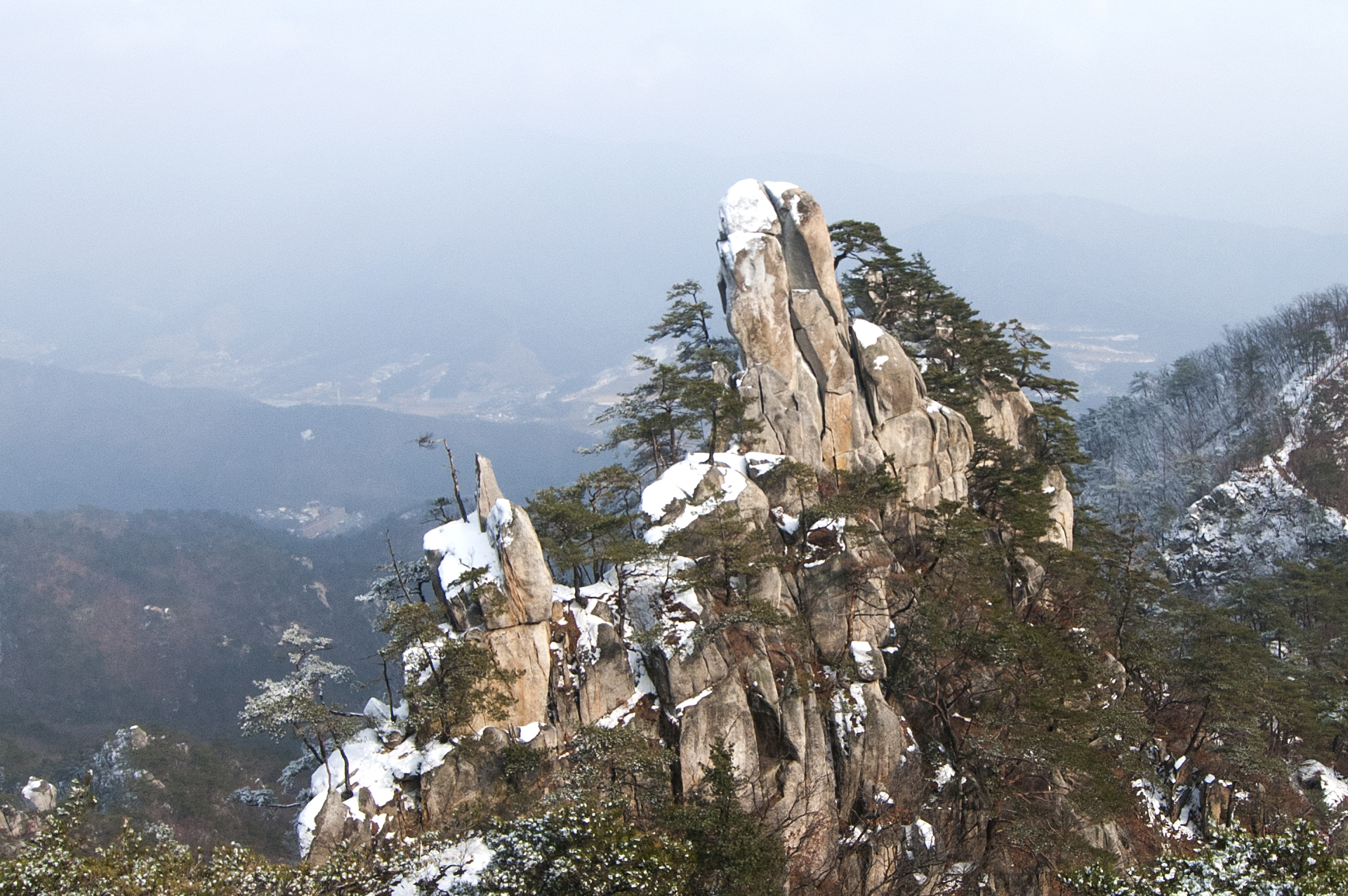 저 험준한 봉우리들을 어떻게 지나가게 되는지 등산로가 궁금하기도 하고, 긴장되기도 한다.