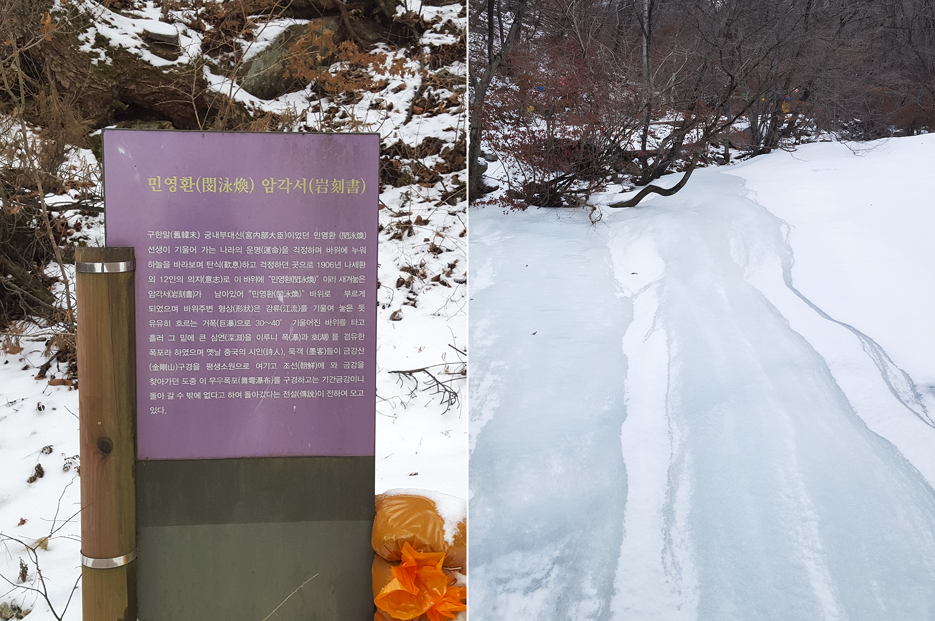 민영환 암각서와 꽁꽁 얼어버린 무우폭포도 볼수 있다.