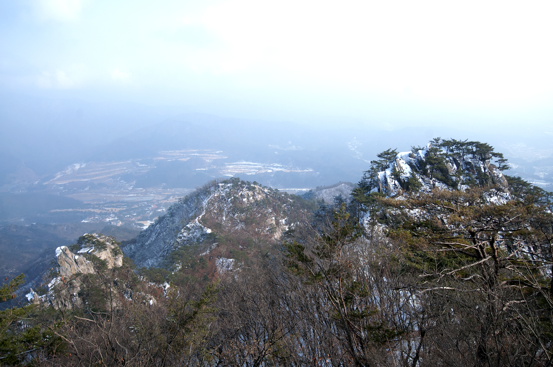 정상에서는 나무와 잔가지들로 인해 전망이 그리 좋지가 않다.
