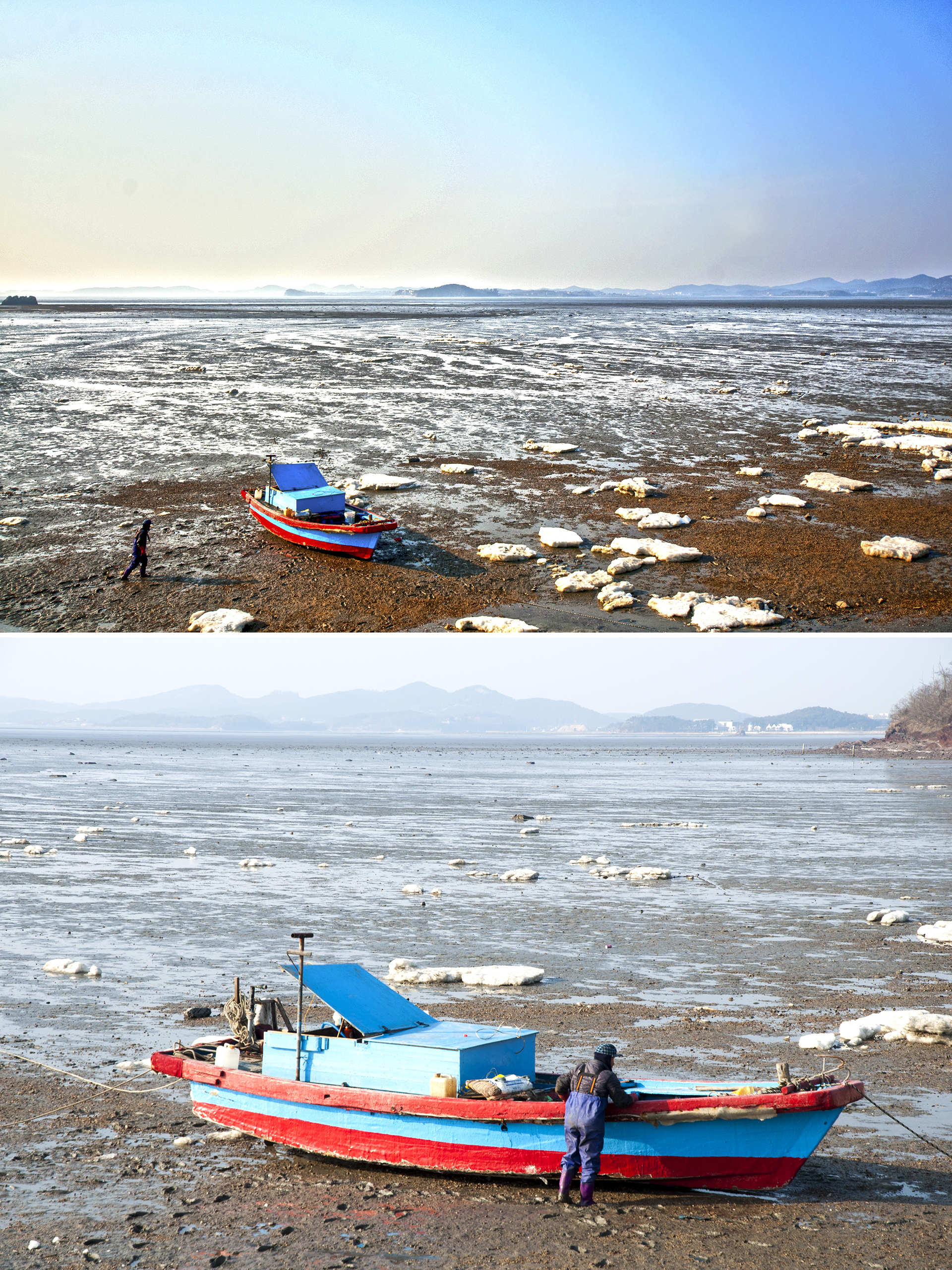 최초로 발견한 최종인씨는 10여년 전에는 갯벌에 가려져 퇴적층이 육안으로 확인되지 않았으나,