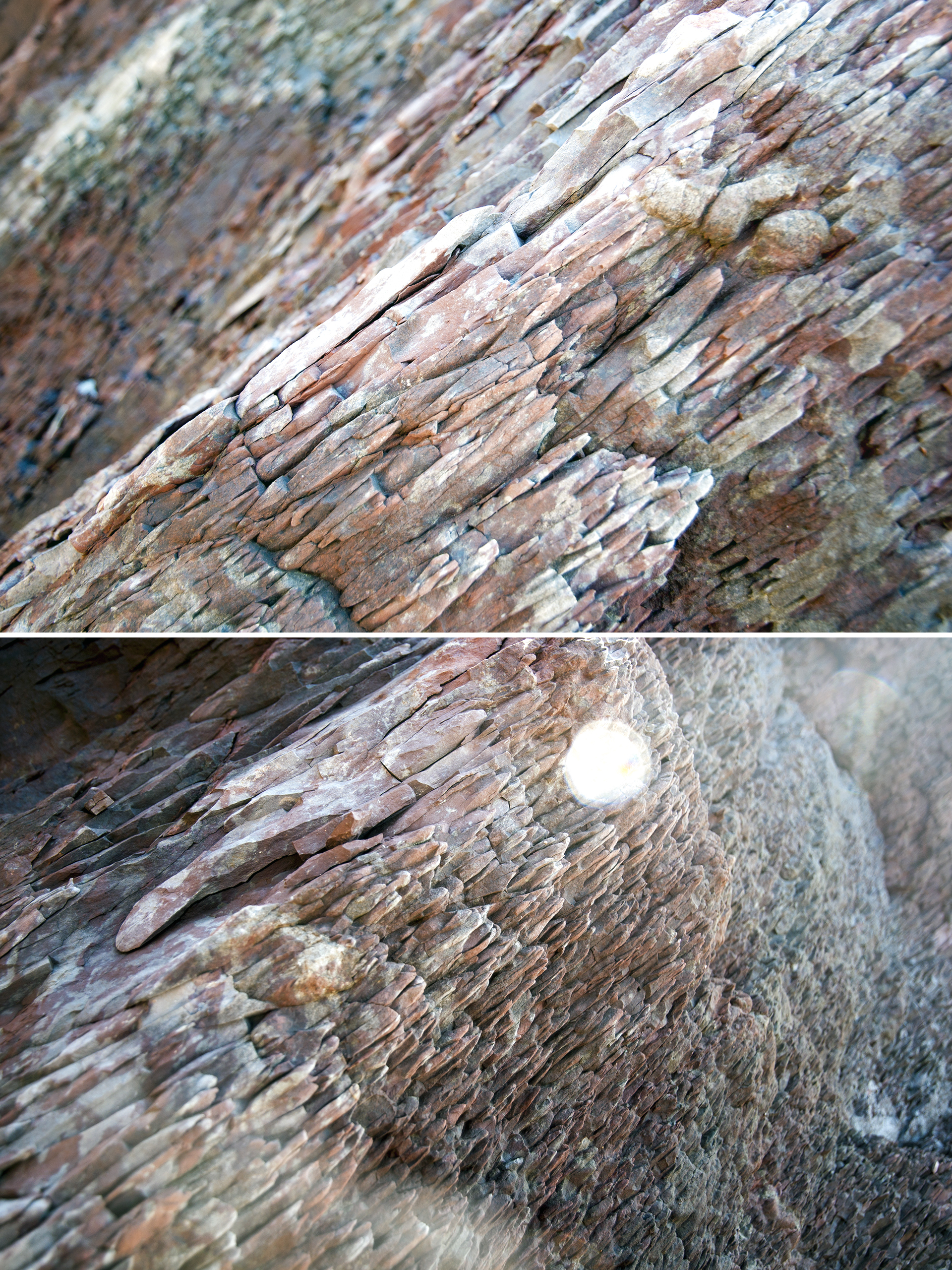 탄도항 퇴적암층은 산 아래 해안가로 들어서면 입구에서부터 만날 수 있다.