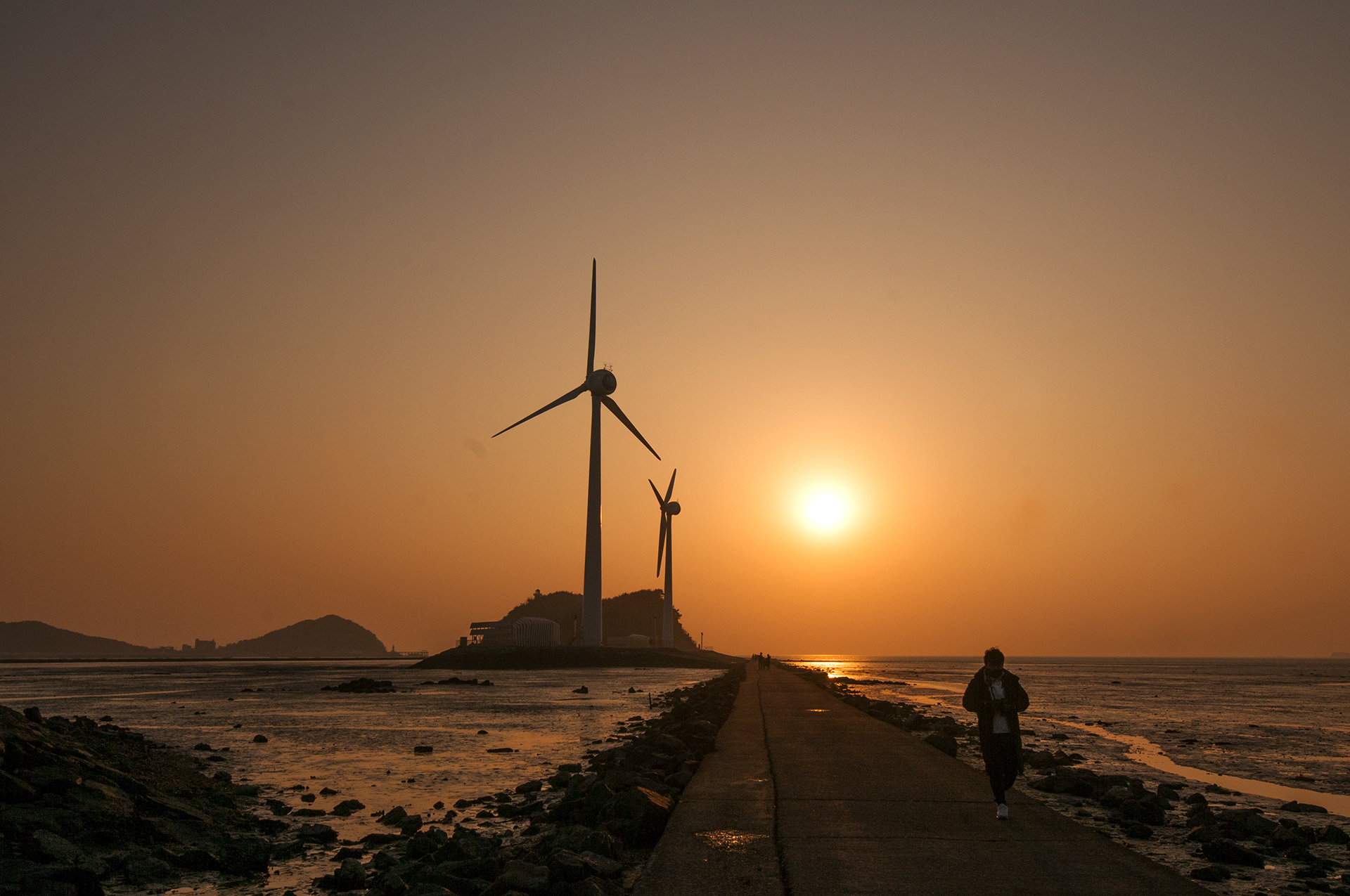 3기의 풍차를 배경으로 일몰을 담기위해 밖으로 이동중,,