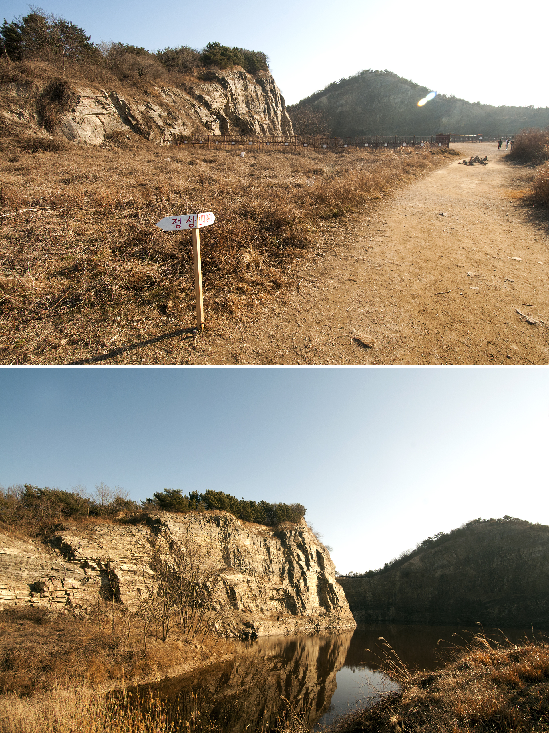 계속 직진 방향으로 산을 넘어가면 대부광산 퇴적암층 입구 도로에 도착할수 있다.