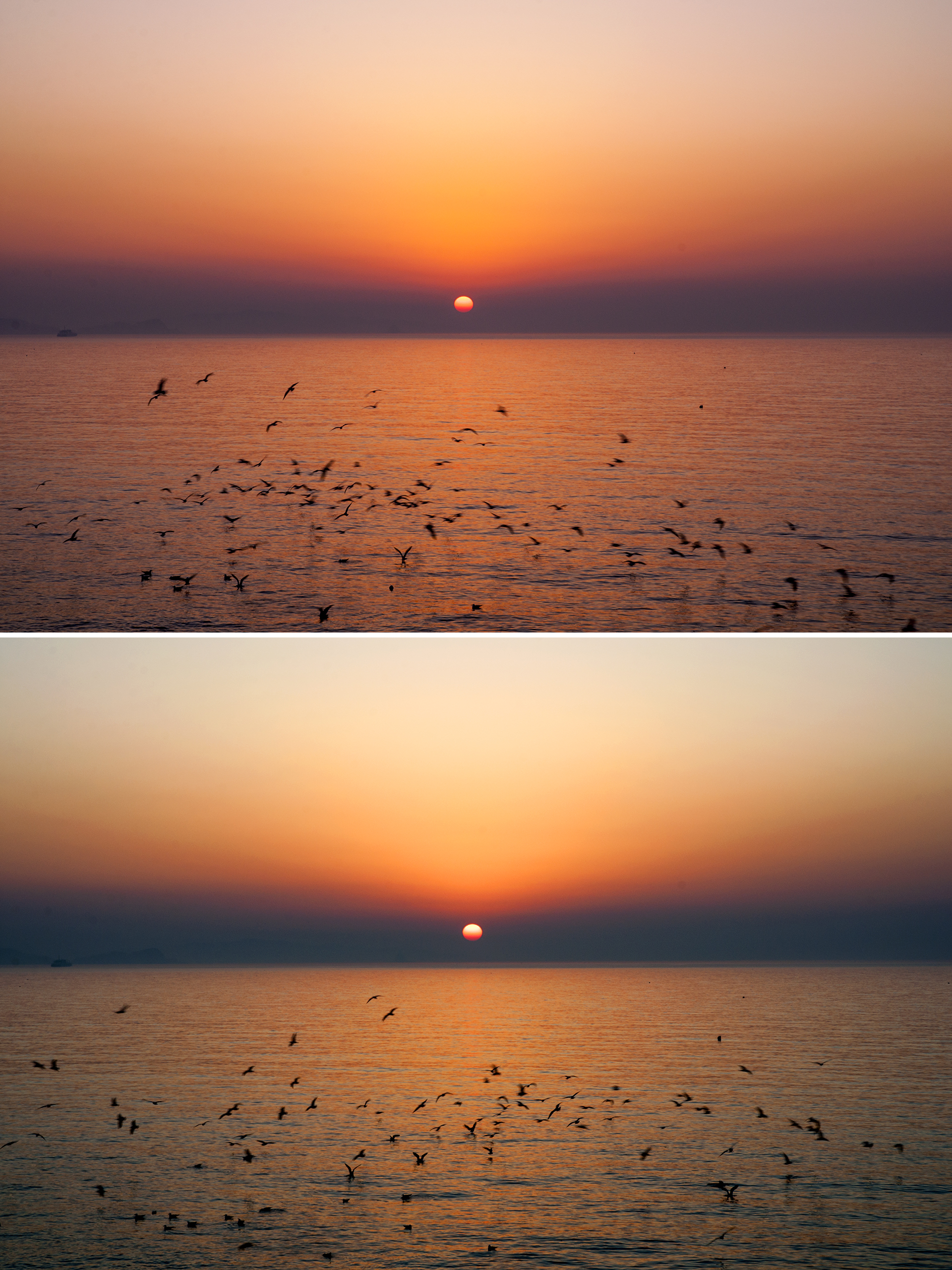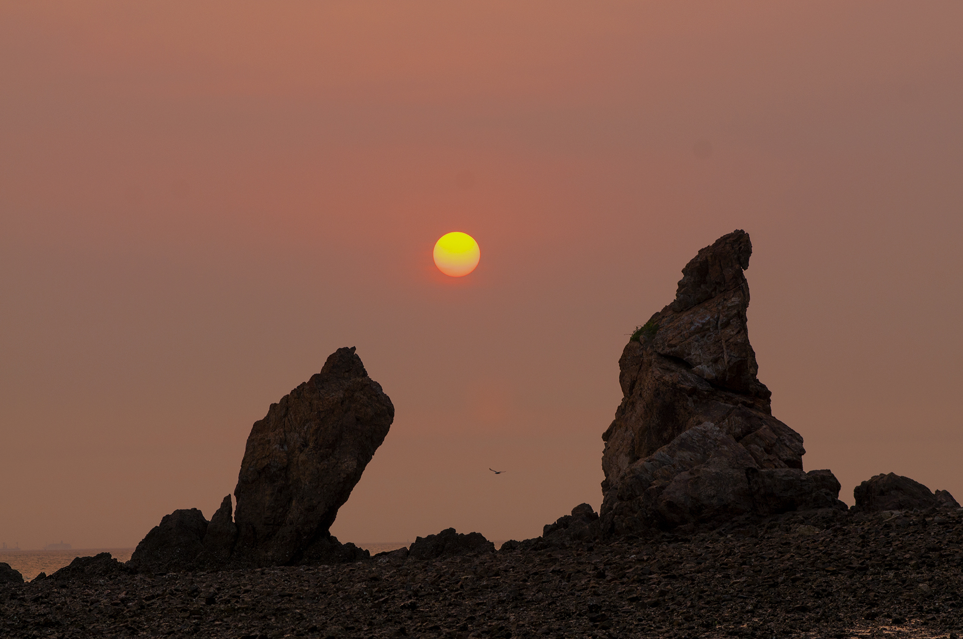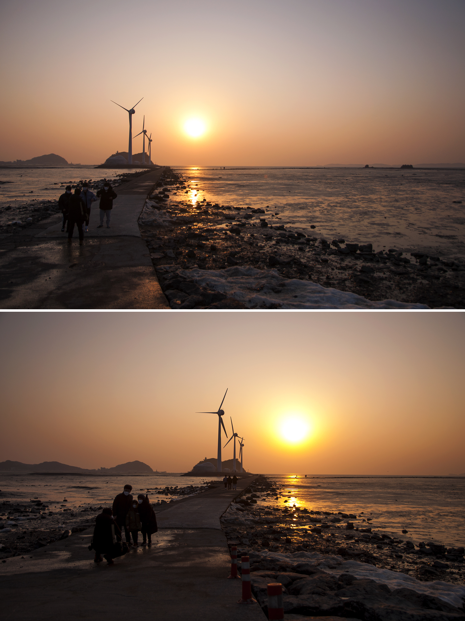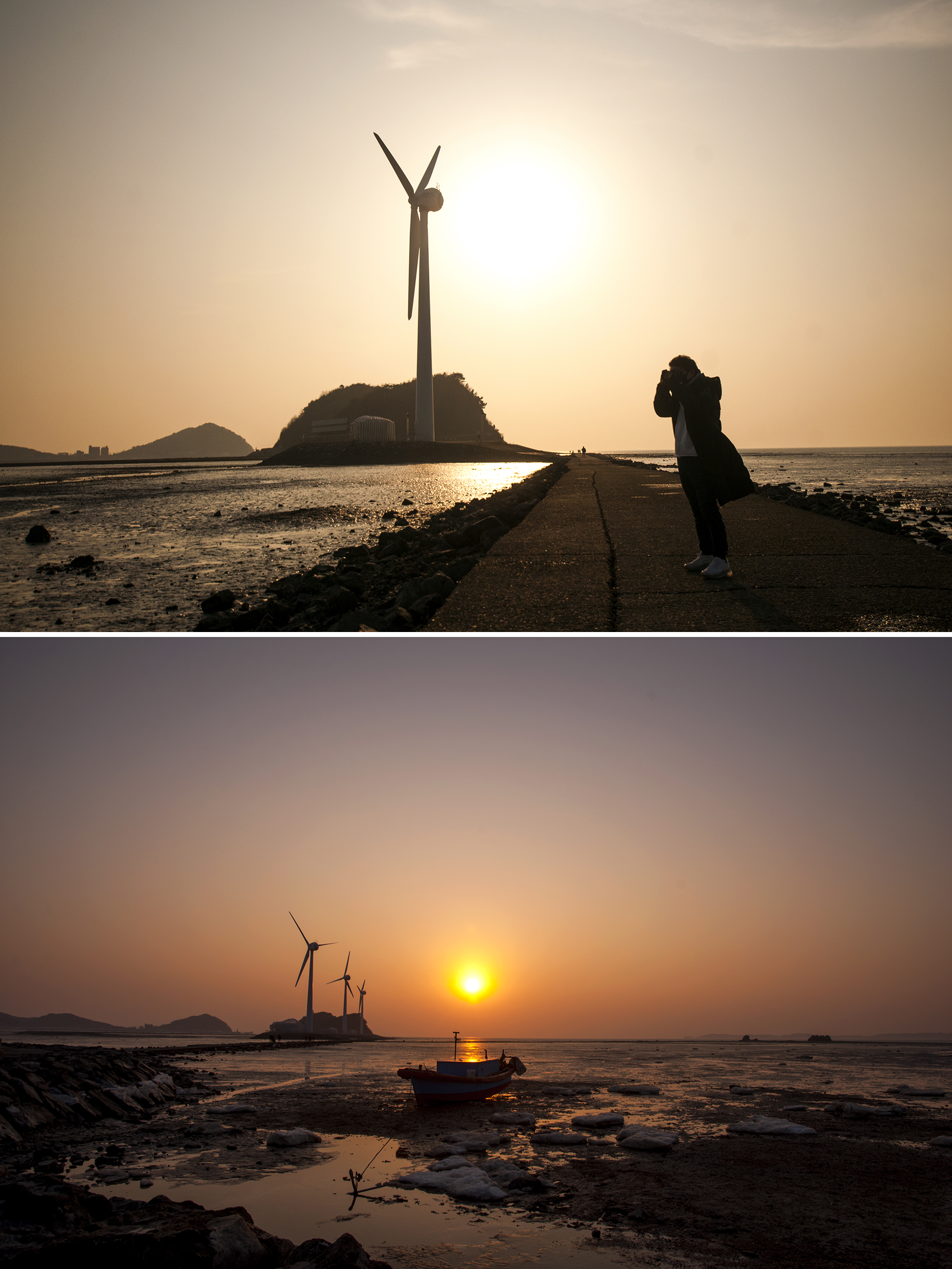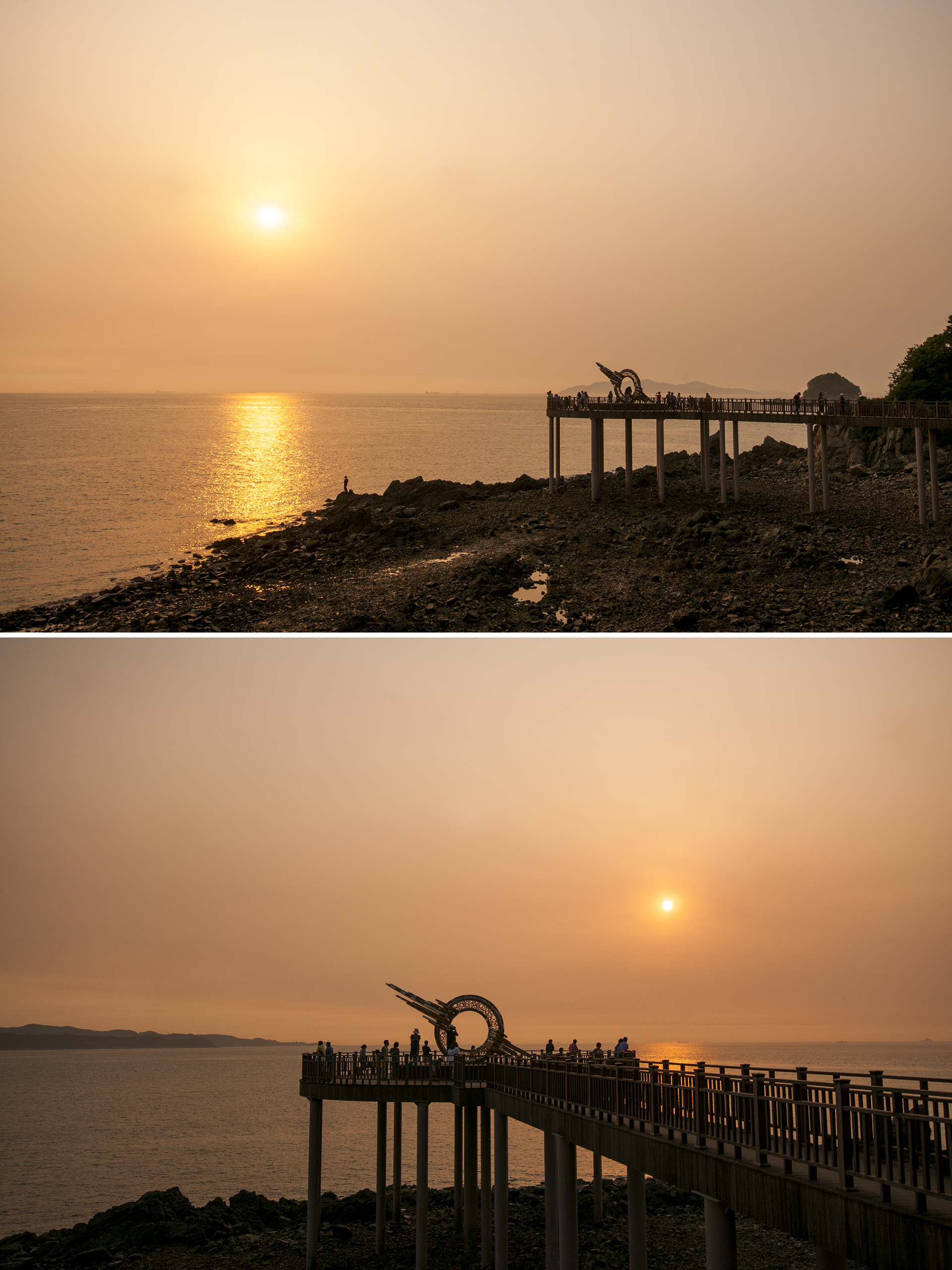 짙은 연무가 깔려있어 수평선 아래로 내려가는 해를 볼수는 없었지만