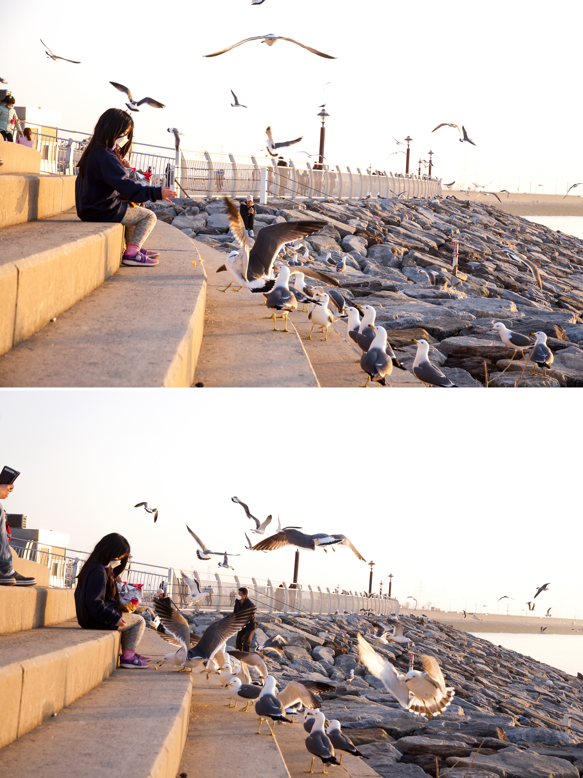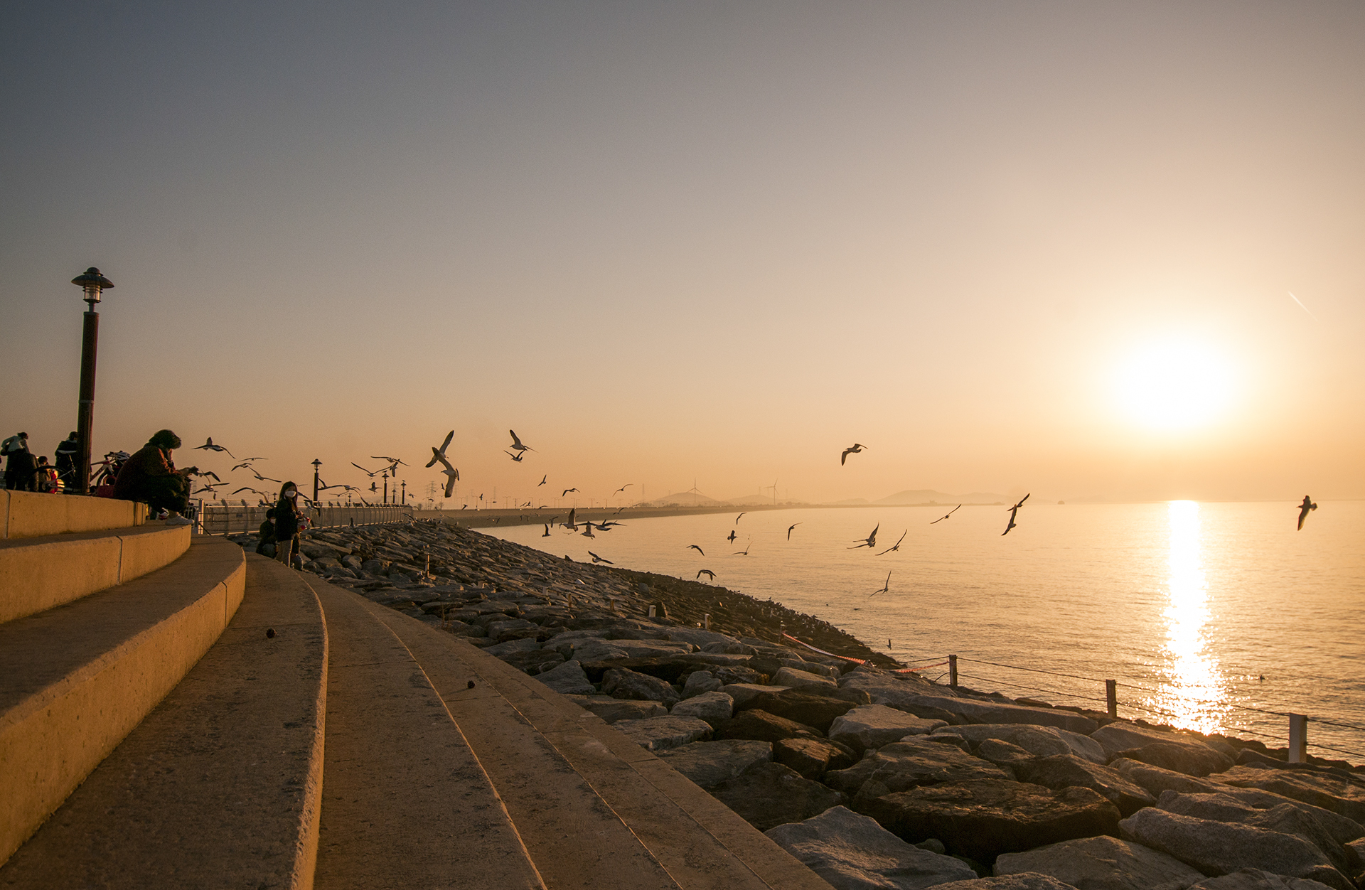 해가 떨어지길 기다리는 동안 갈매기들을 위해