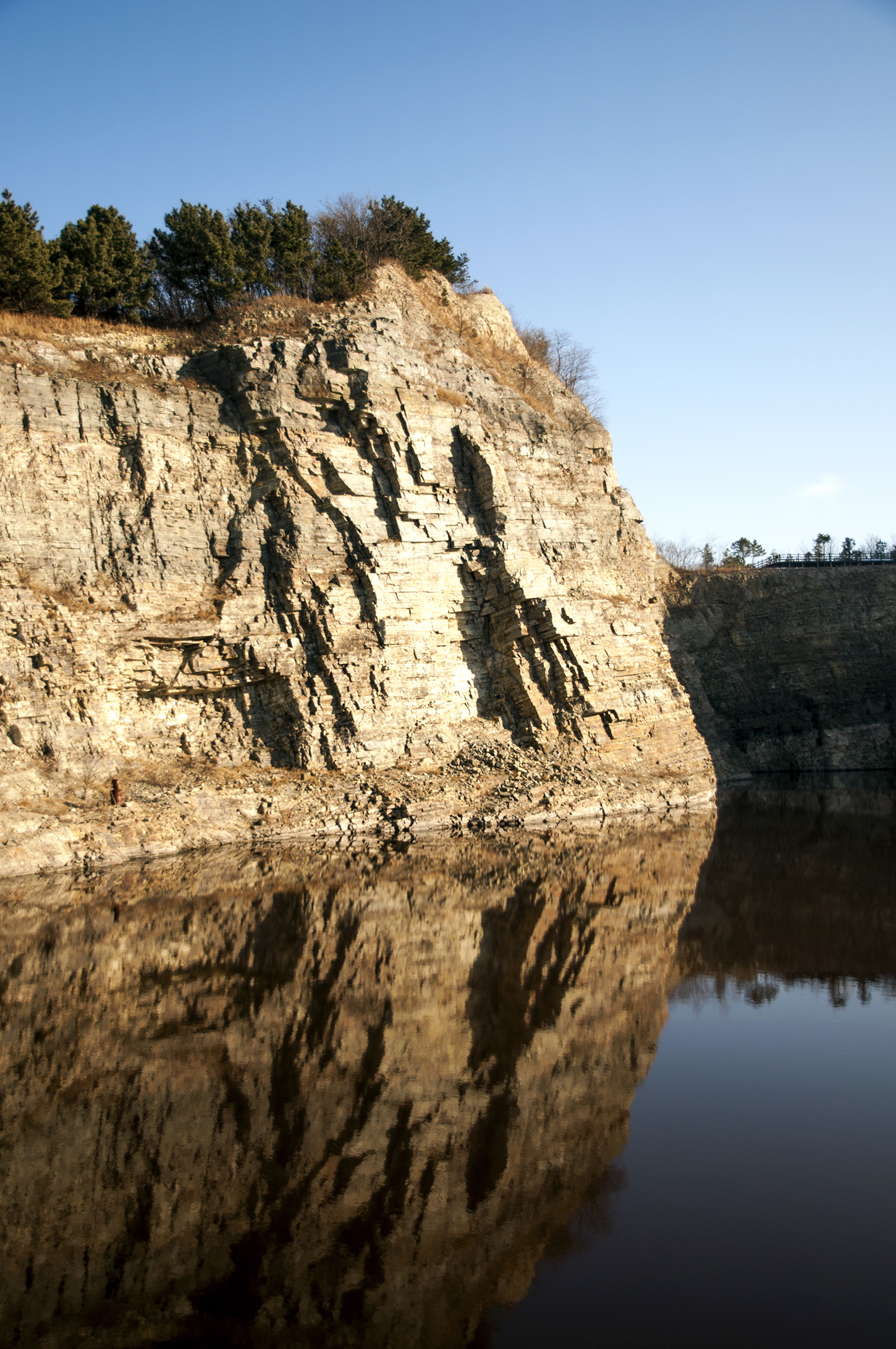 호수를 가둔채 웅장하게 펼쳐진 퇴적암층