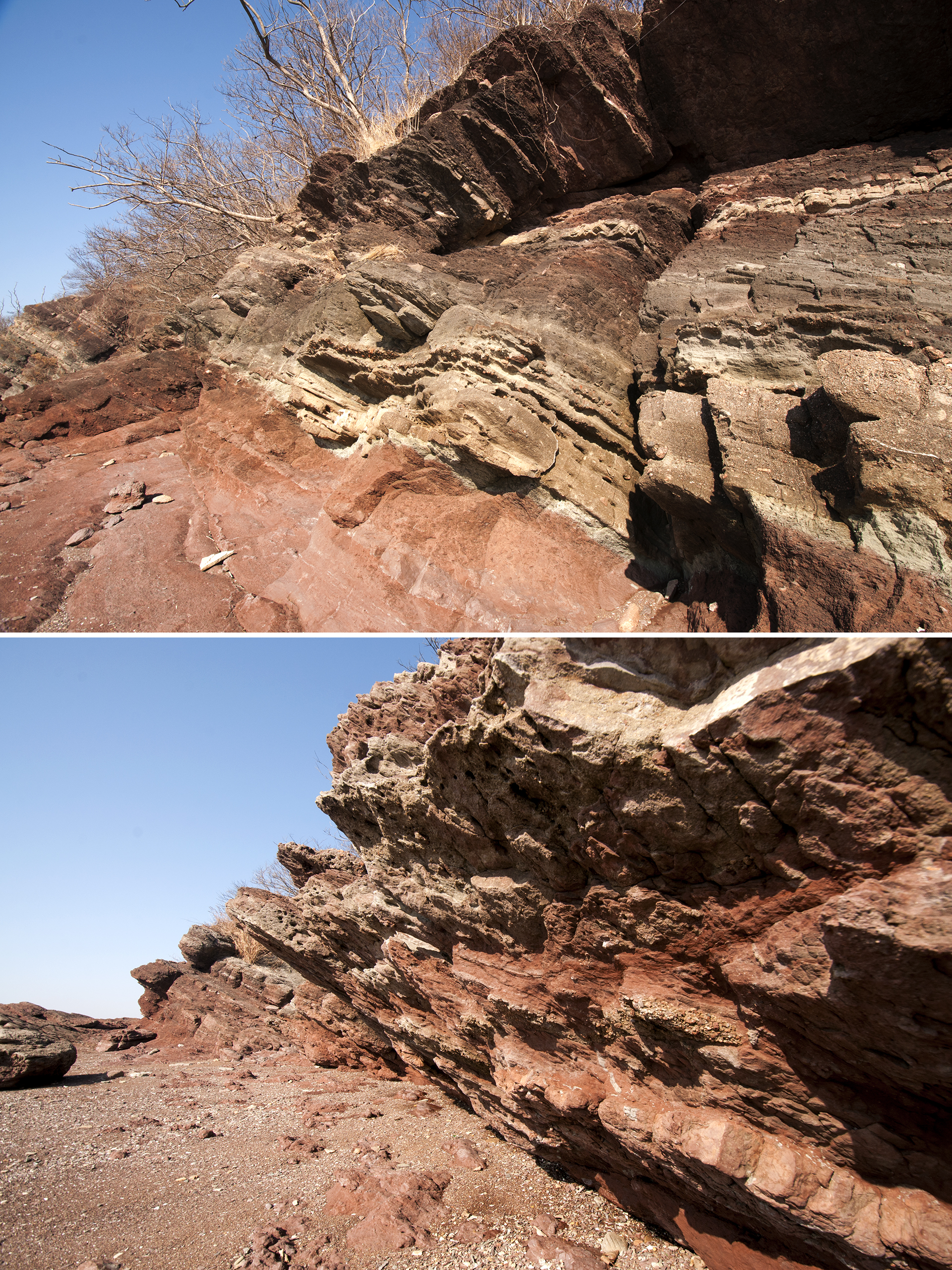 탄도항 퇴적층은 모래와 진흙, 화산재 등으로