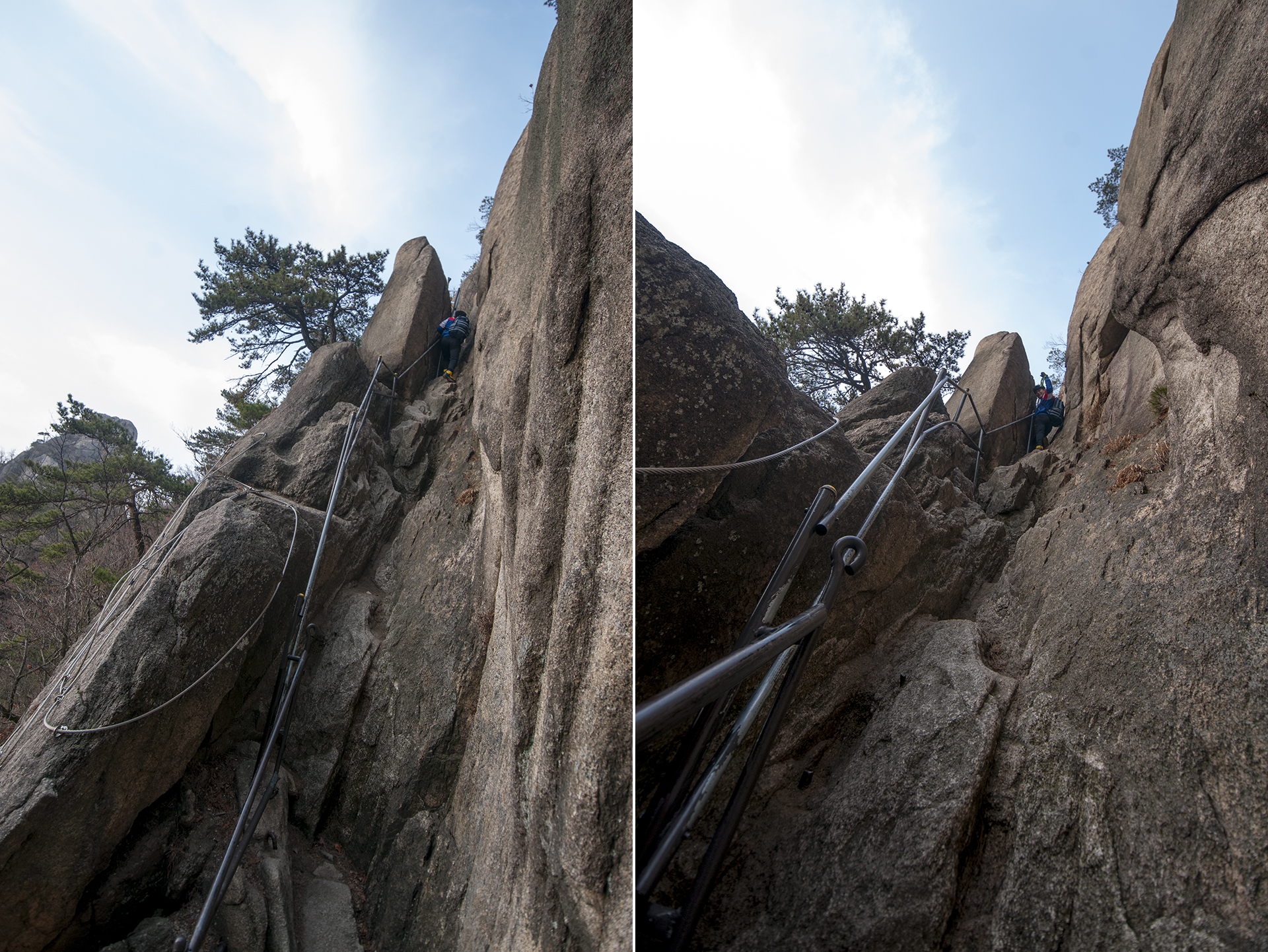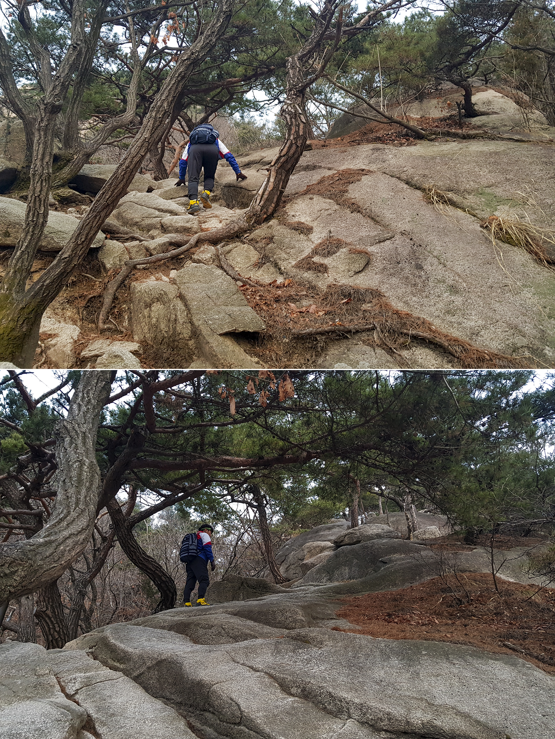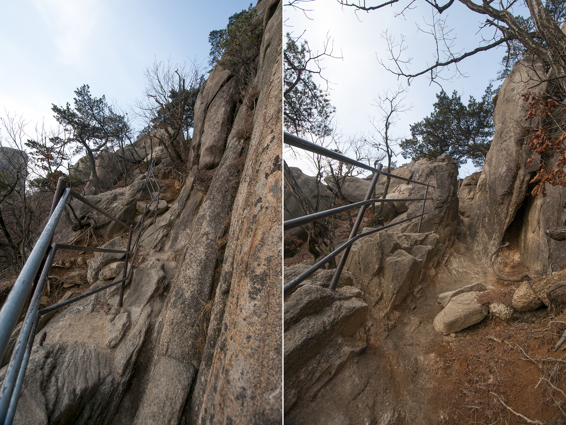 이런곳이 등산로라니,, 암벽등반하는 기분이다.