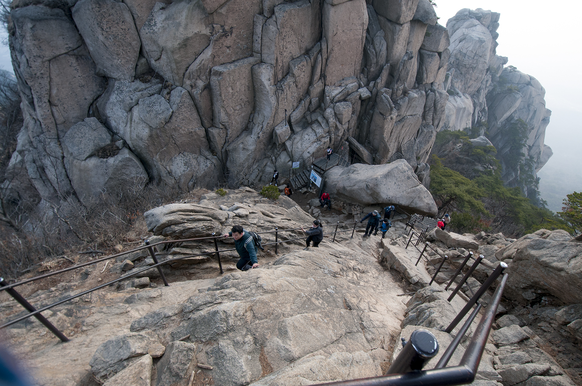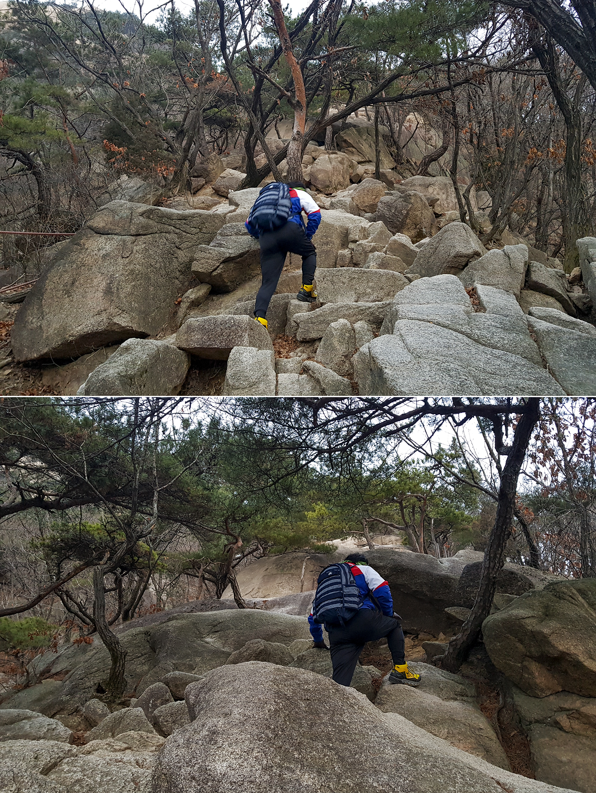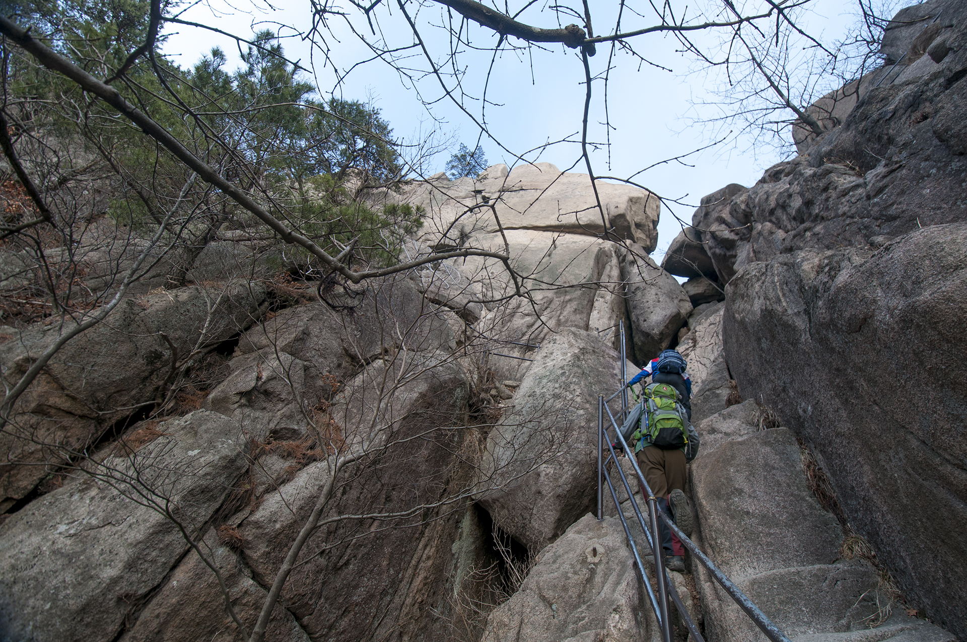 이런곳이 등산로라니,, 암벽등반하는 기분이다.