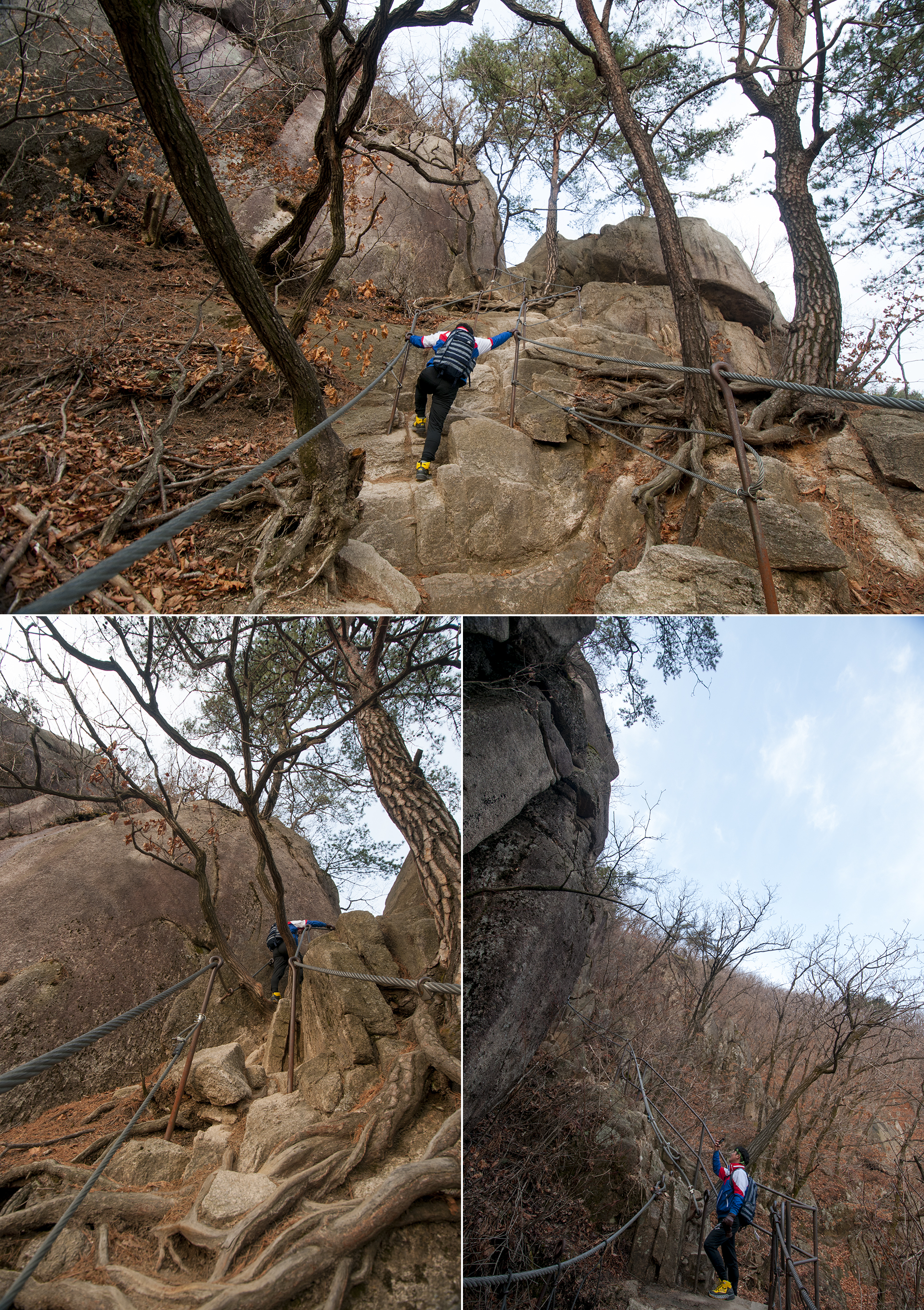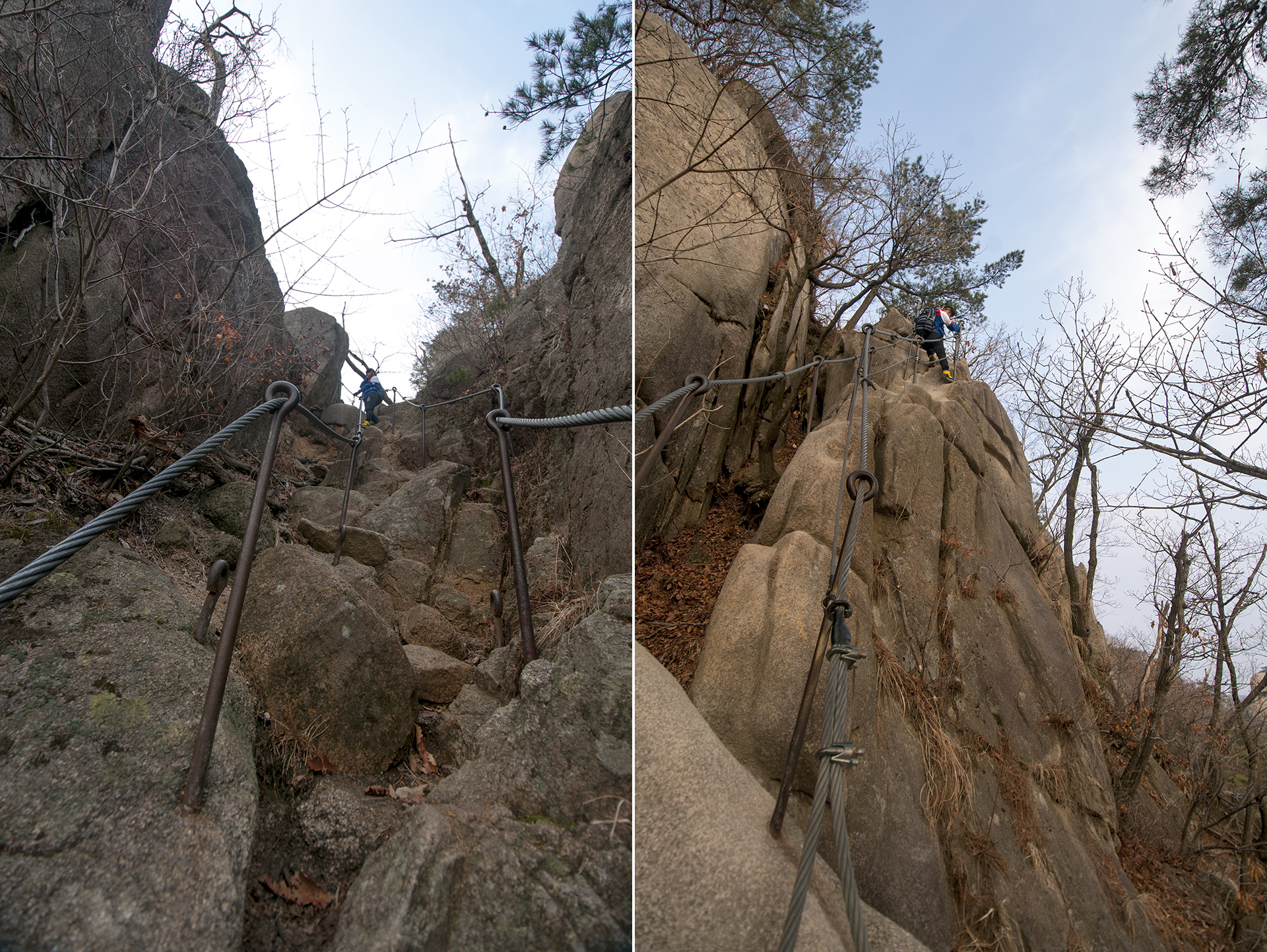 이후 포대능선으로 가기 위해서는 쇠줄을 잡고 올라가야 하는 코스가 이어진다.