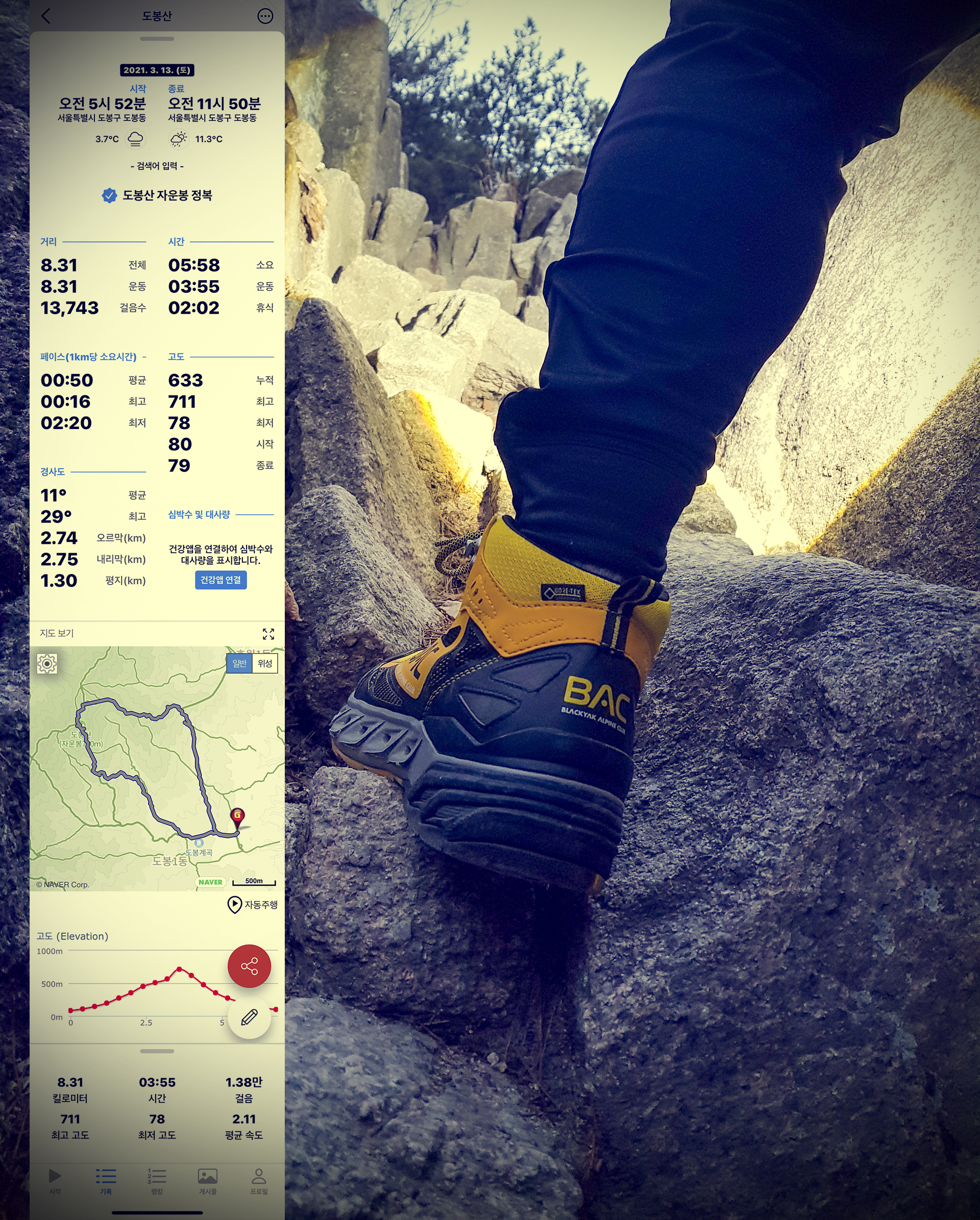 * 8.31km, 5시간58분 소요 (휴식, 촬영시간 포함)