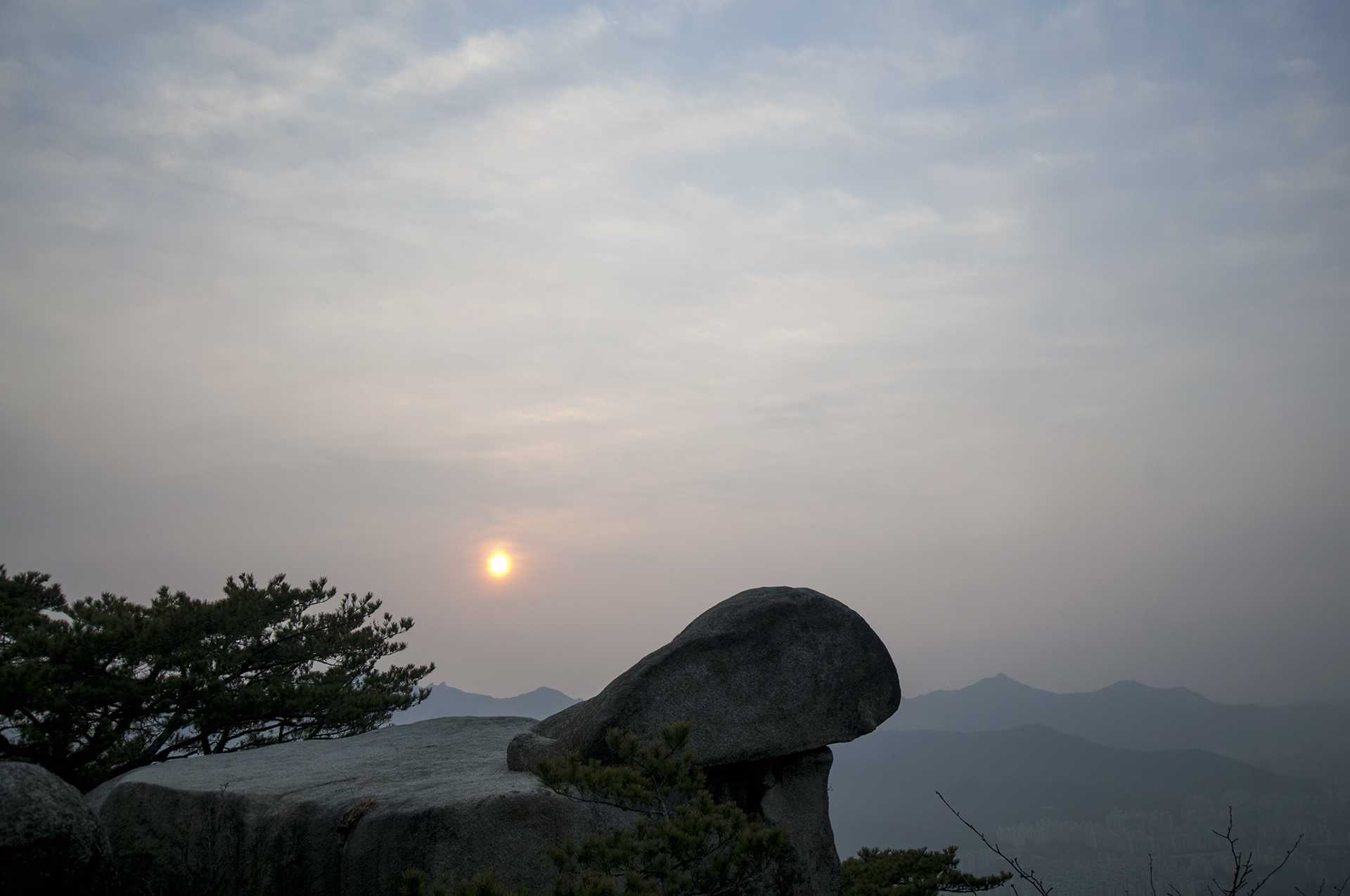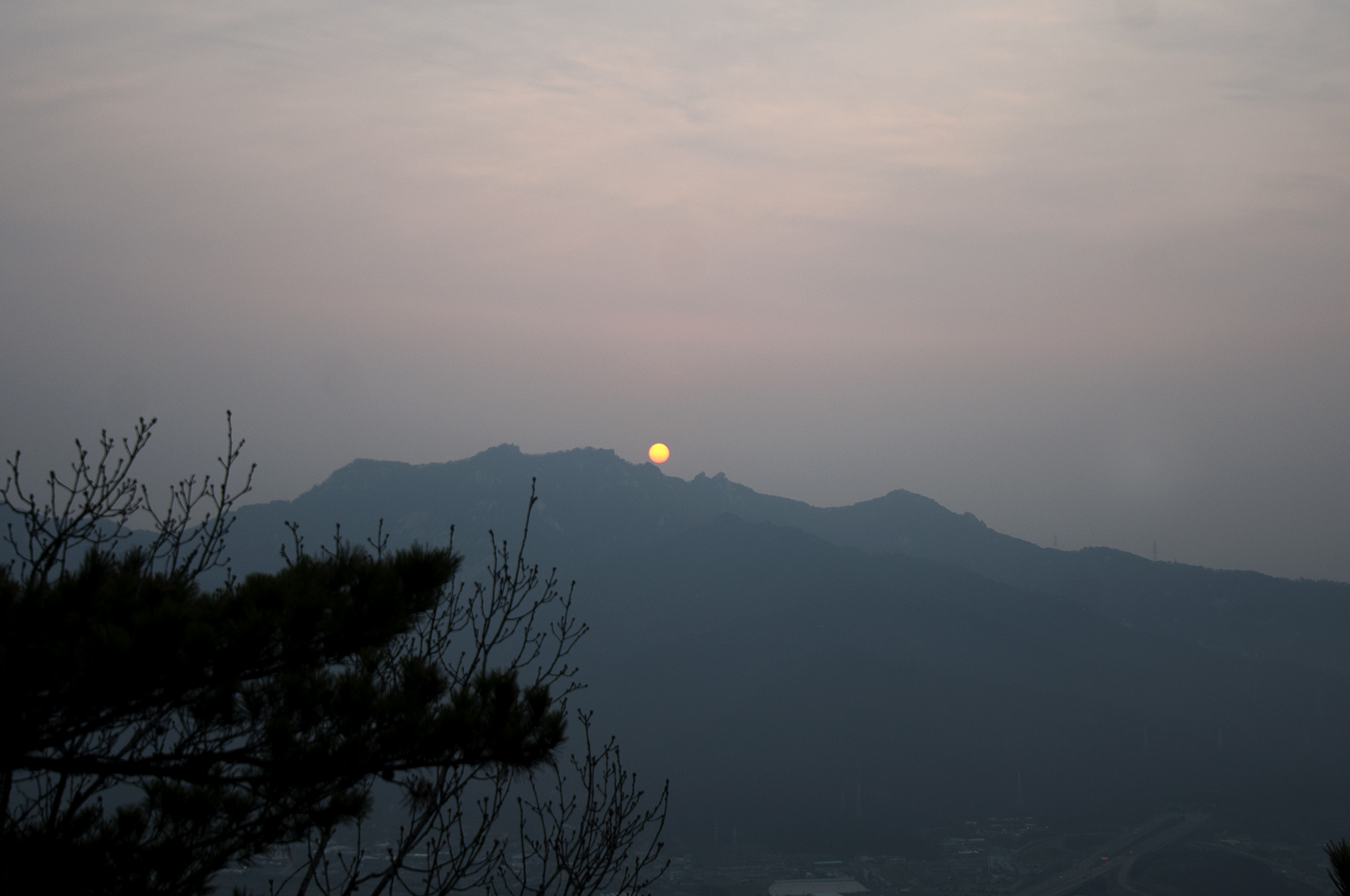해가 떠올랐다. 미세먼지 탓에 볼수 있을까 싶었는데 그래도 또렷하게 보인다.