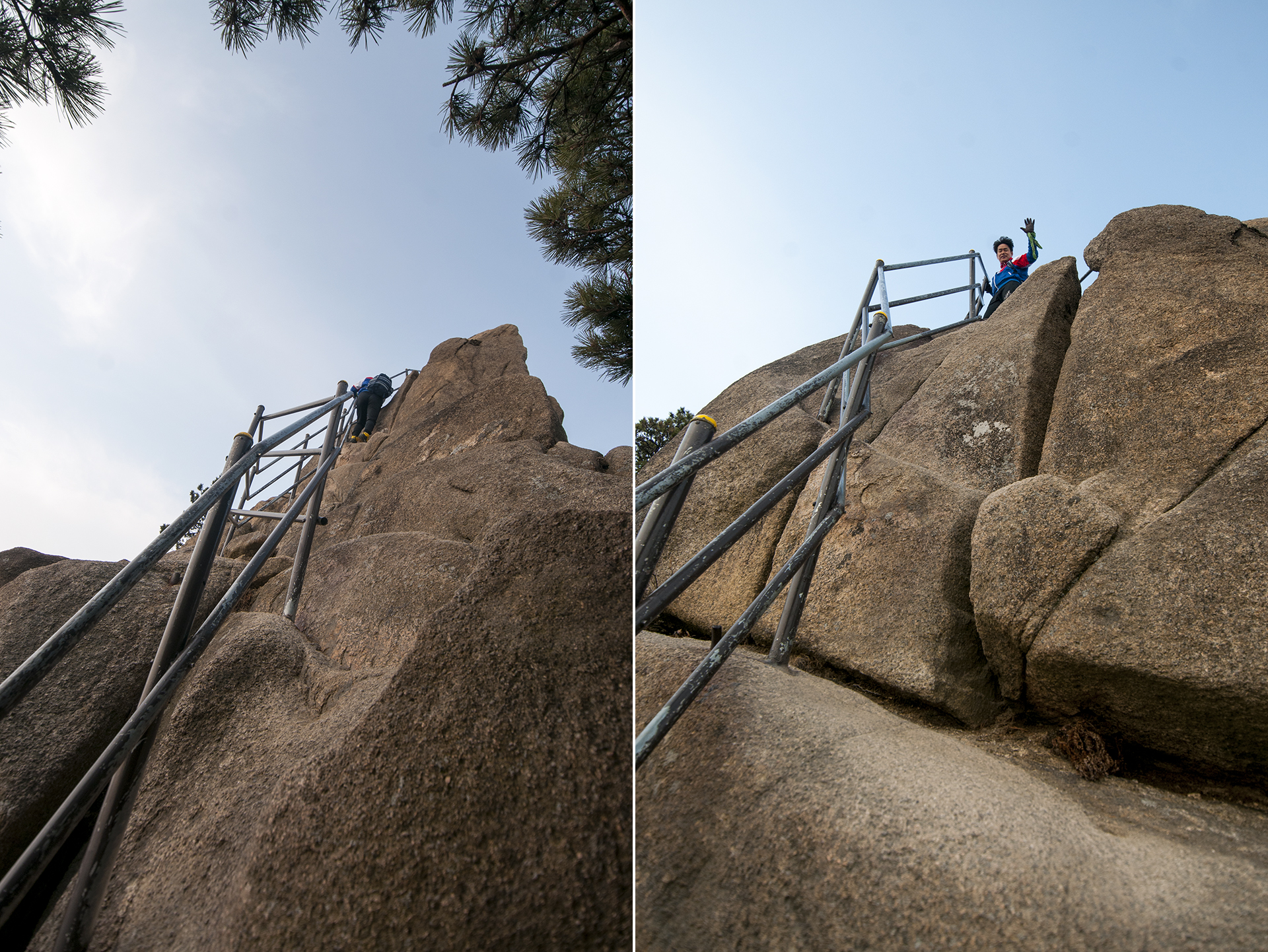 정상에 도착하신 분이 보이고 그리로 올라가는 철난간이 설치되어 있다.