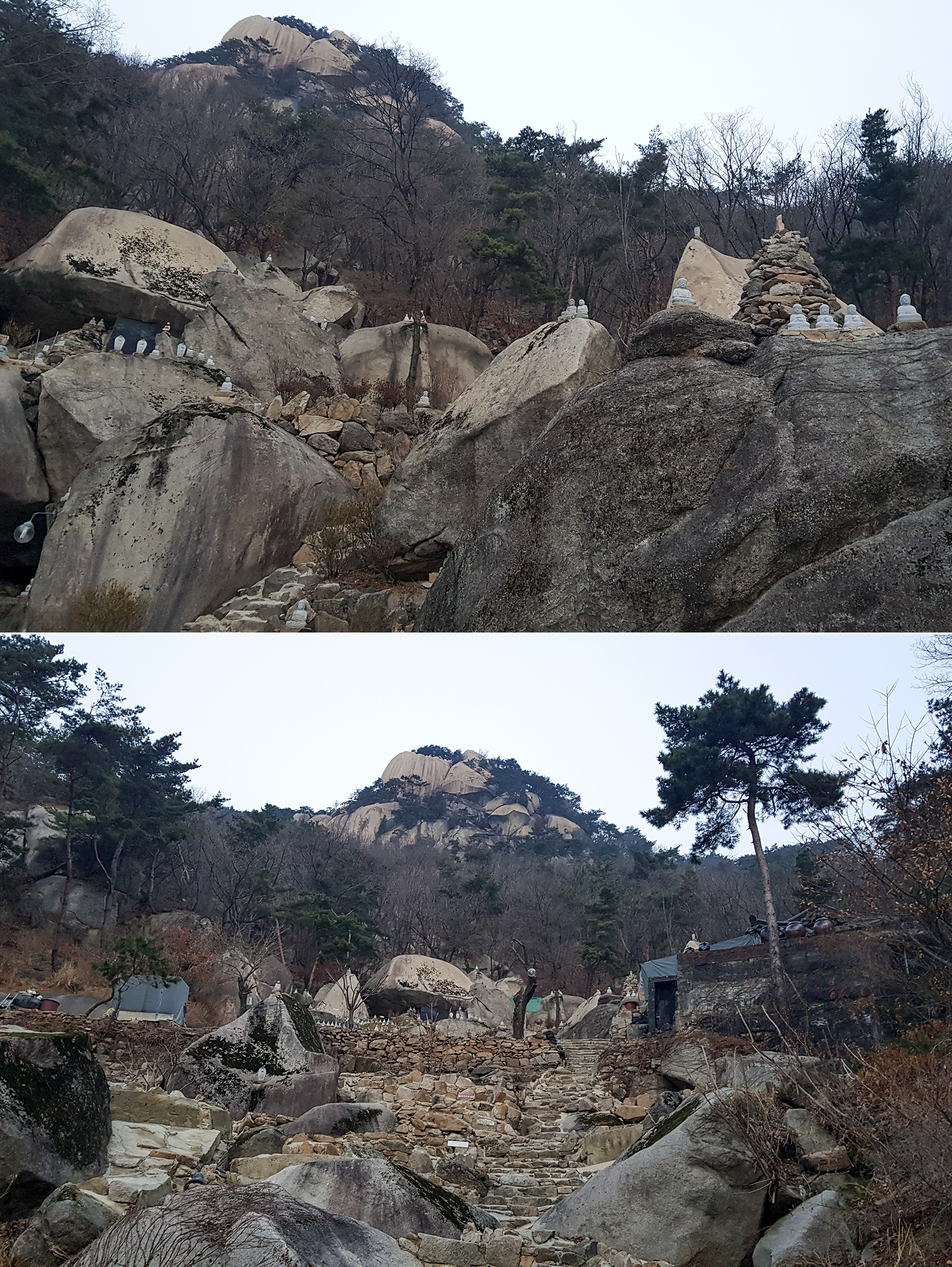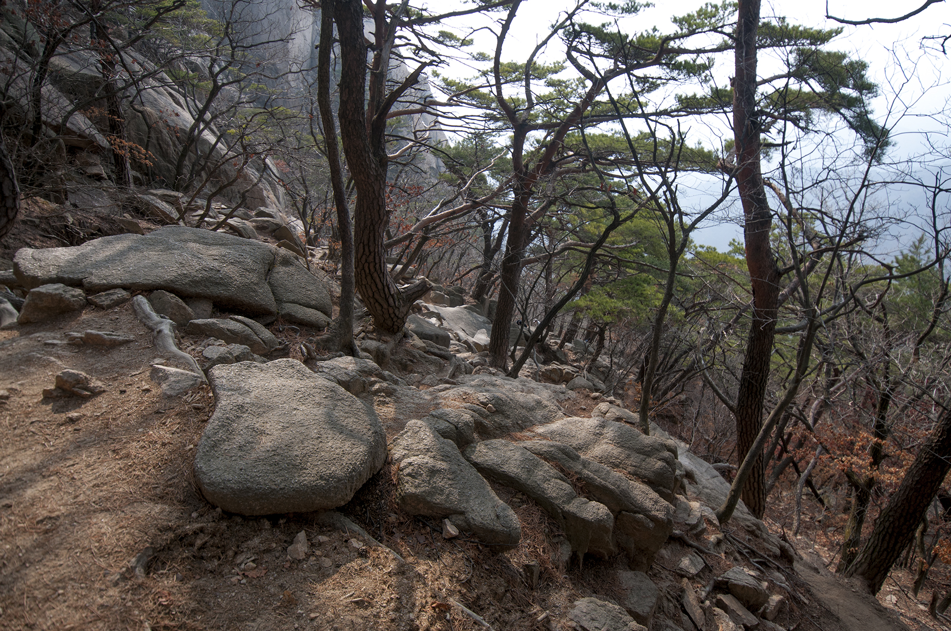 한무더기의 바위가 쏟아져 내린듯 길이 험하게 이어진다.