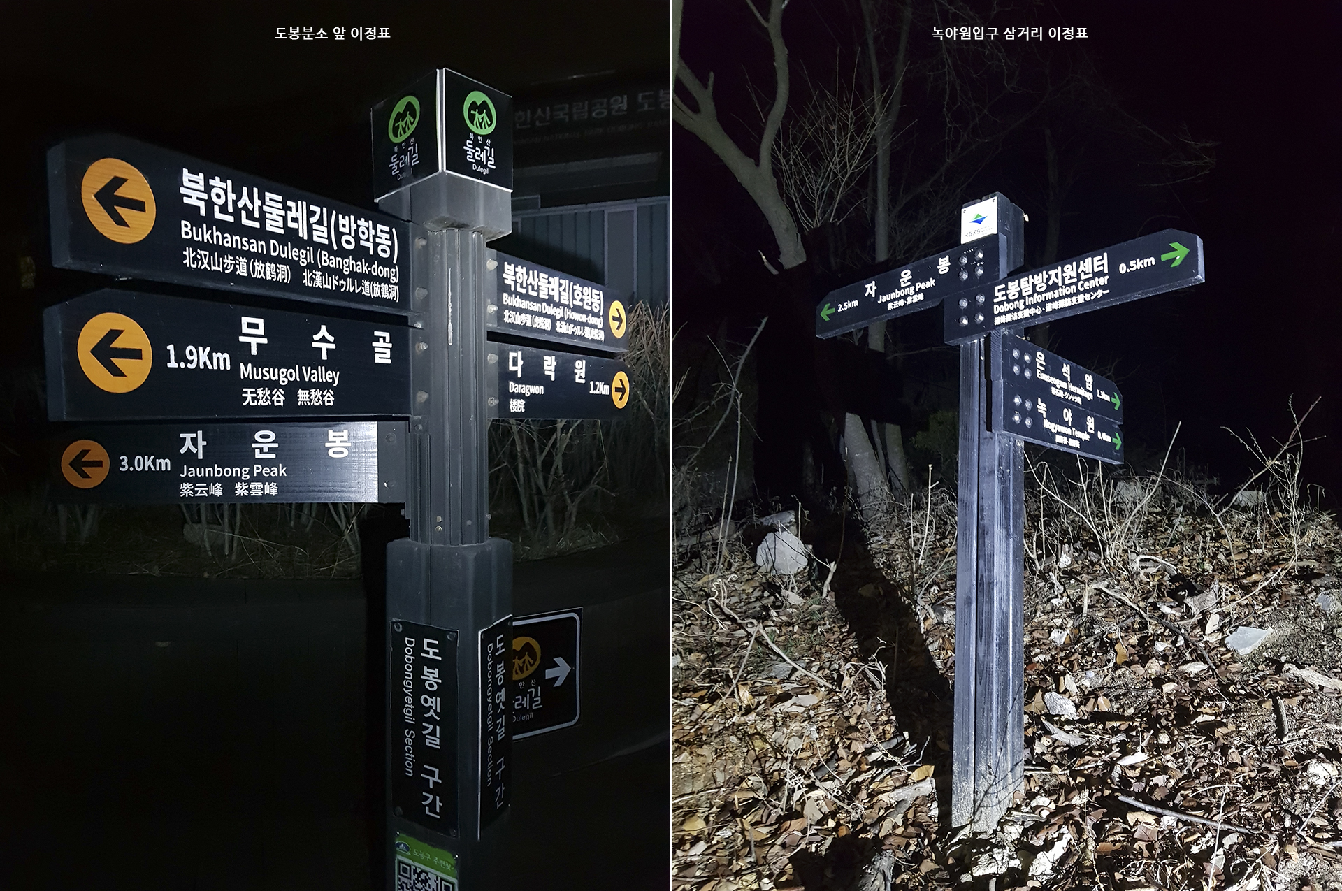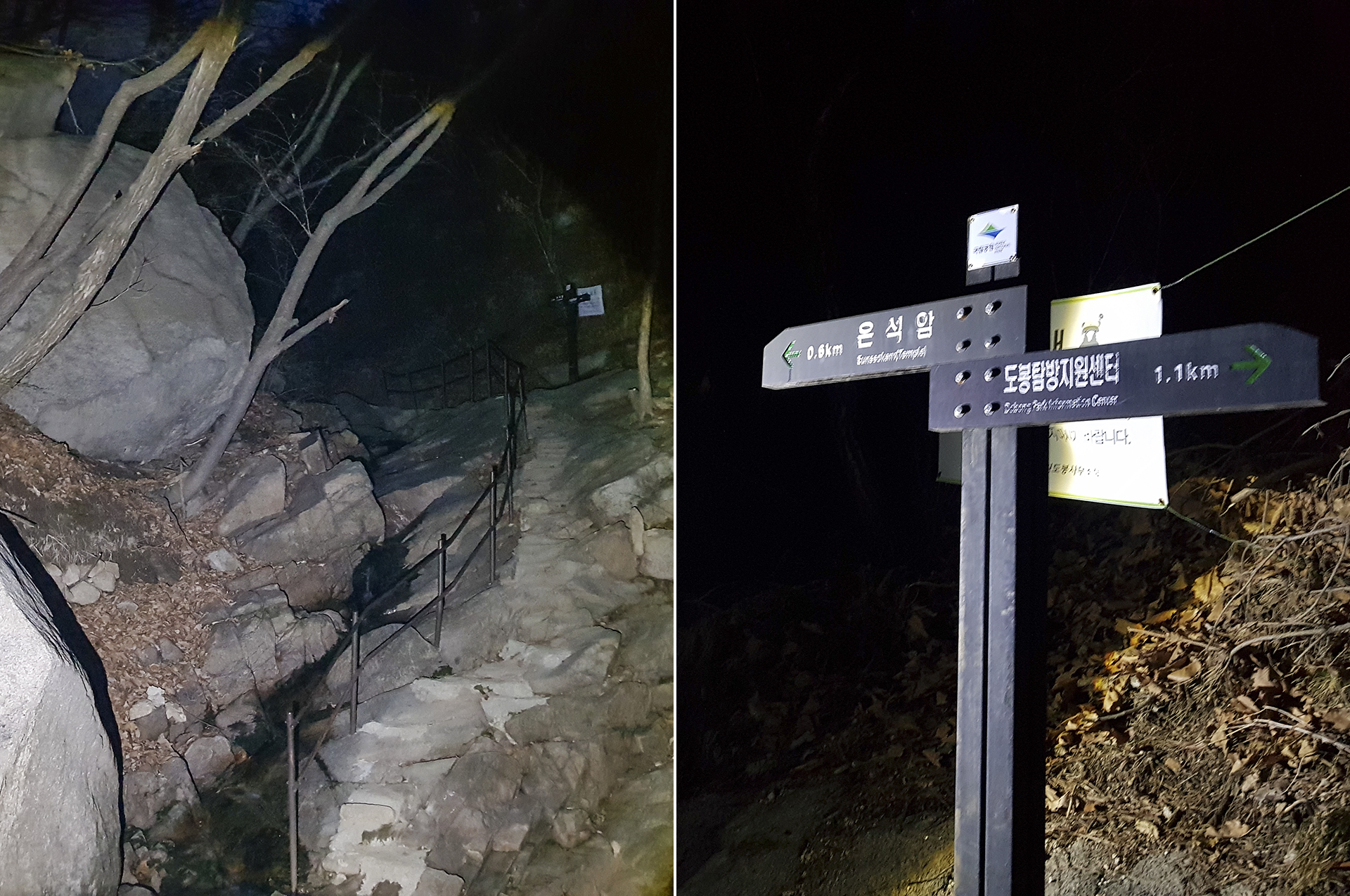 도착 당시에는 너무 어두워 어디가 어딘지 구분이 안돼 끝까지 올라가다보니 도봉분소에 도착하게 되었다.