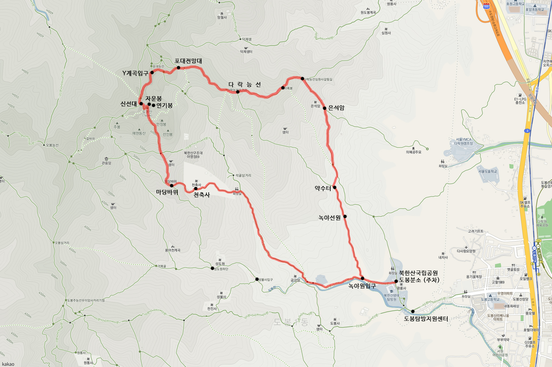 도봉탐방지원센터 (북한산국립공원 도봉분소) - 은석암 - 다락능선 - 포대전망대 - Y계곡 - 신선대 - 마당바위 - 천축사 등산코스