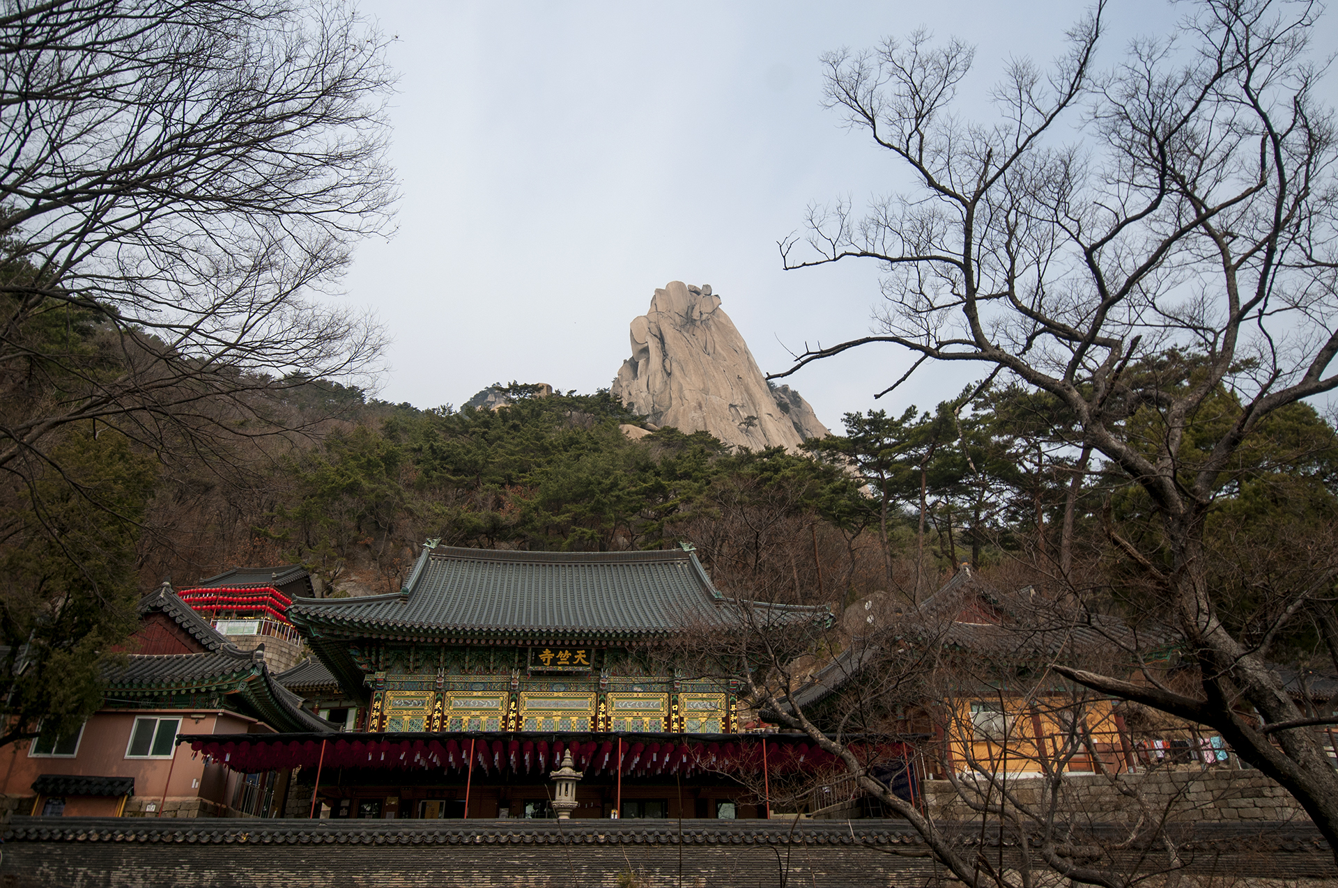뒤로 돌아가면 자운봉이 멋스럽게 서있는 아래 천축사 대웅전이 있다.