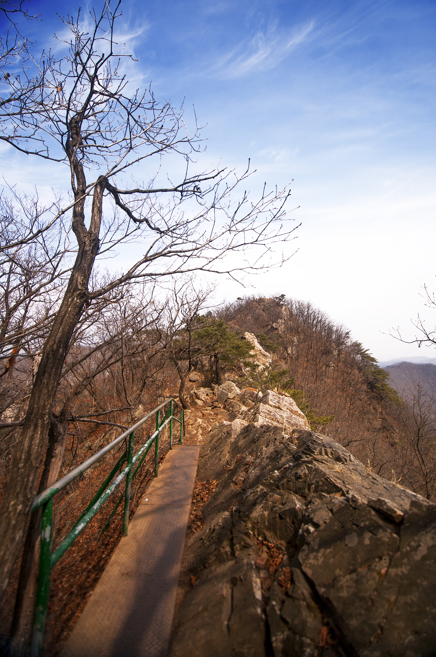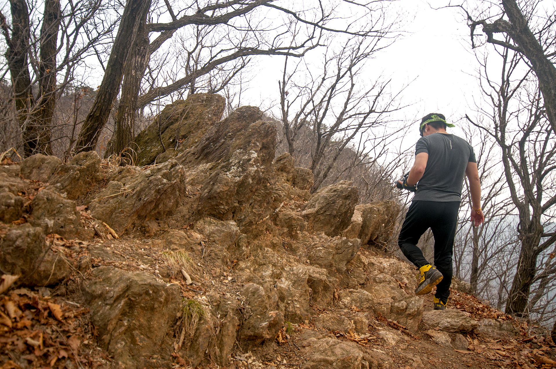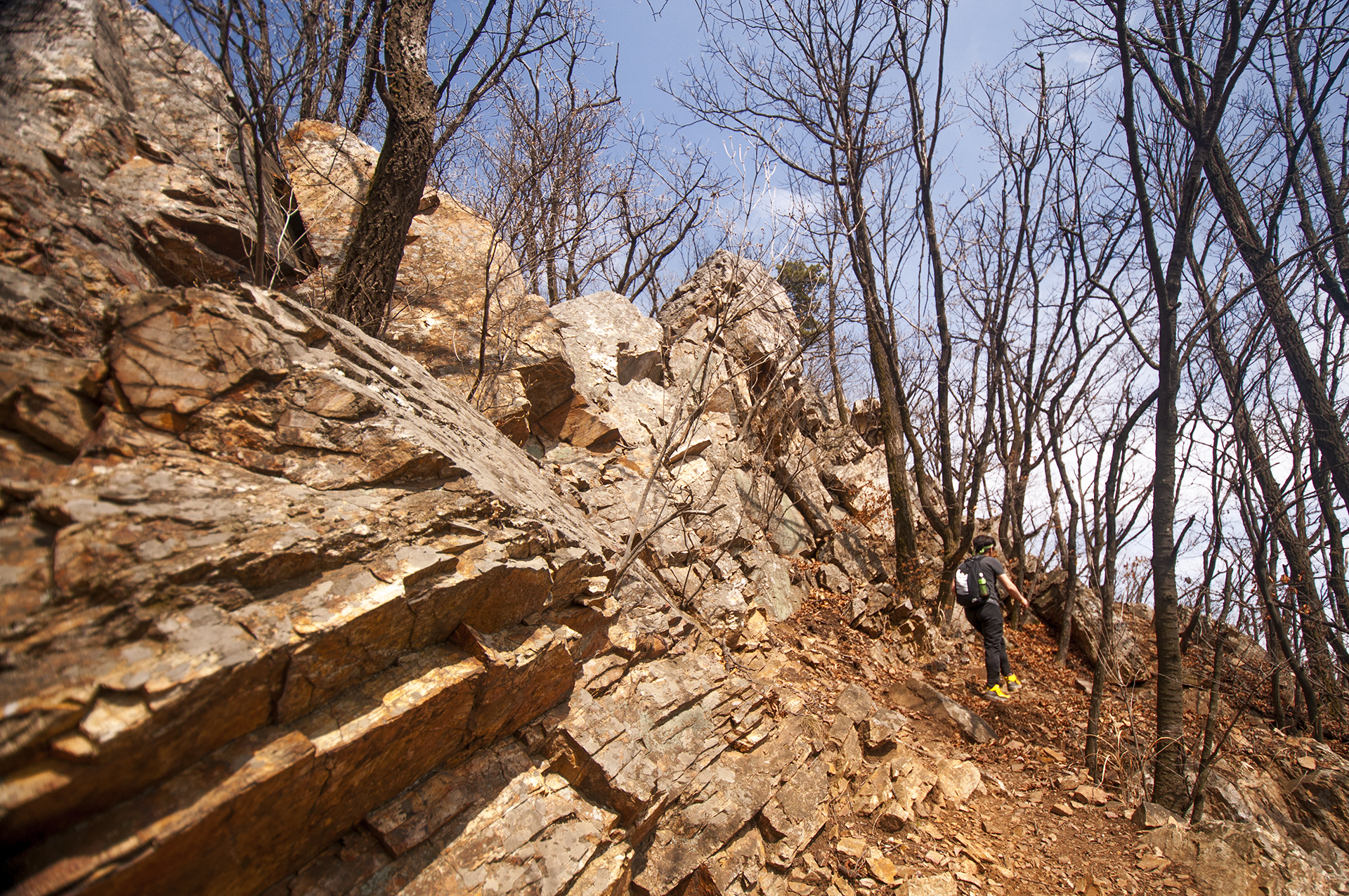 철재길을 지나 울퉁불퉁한 바위능선을 지난다.