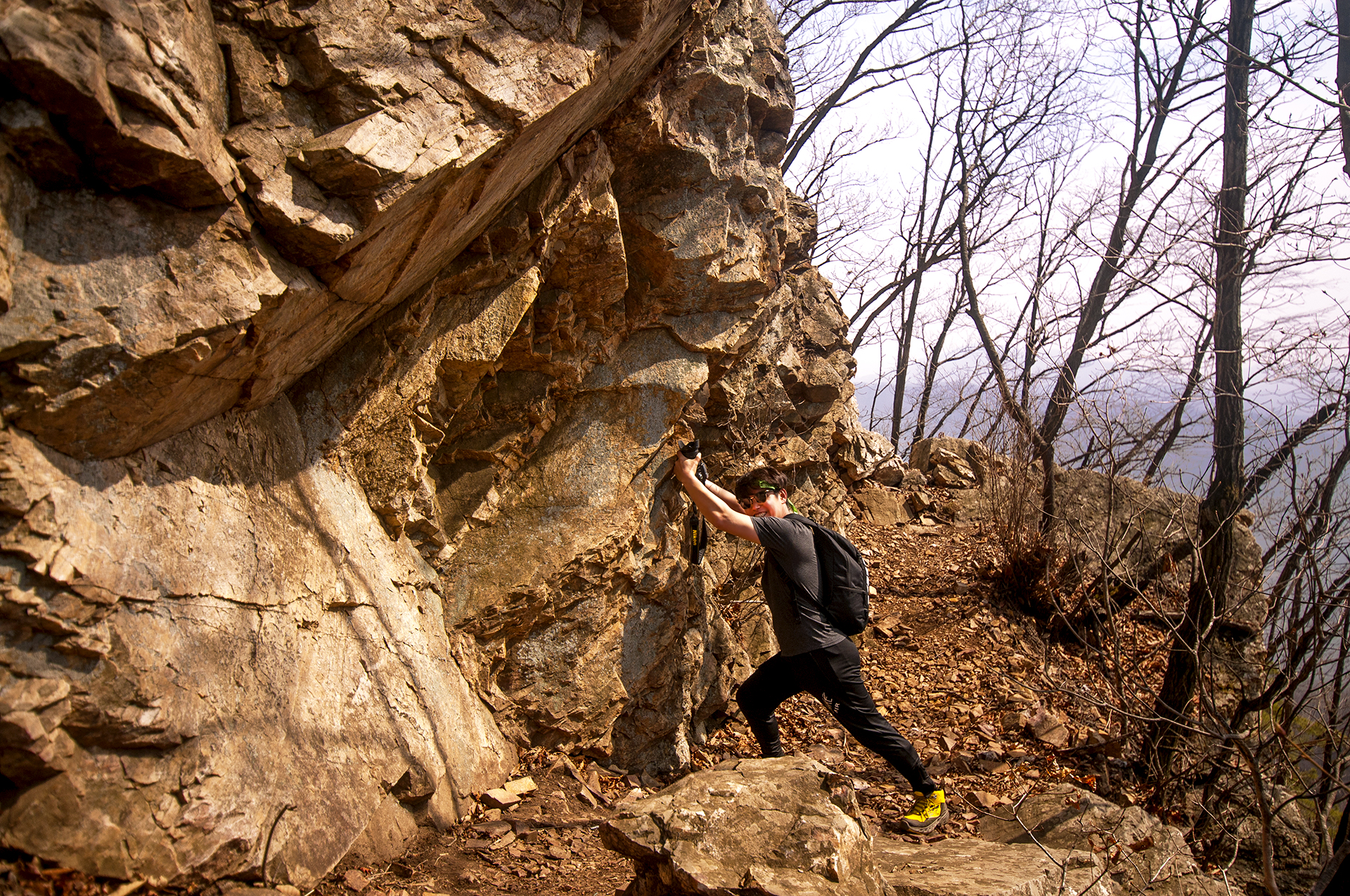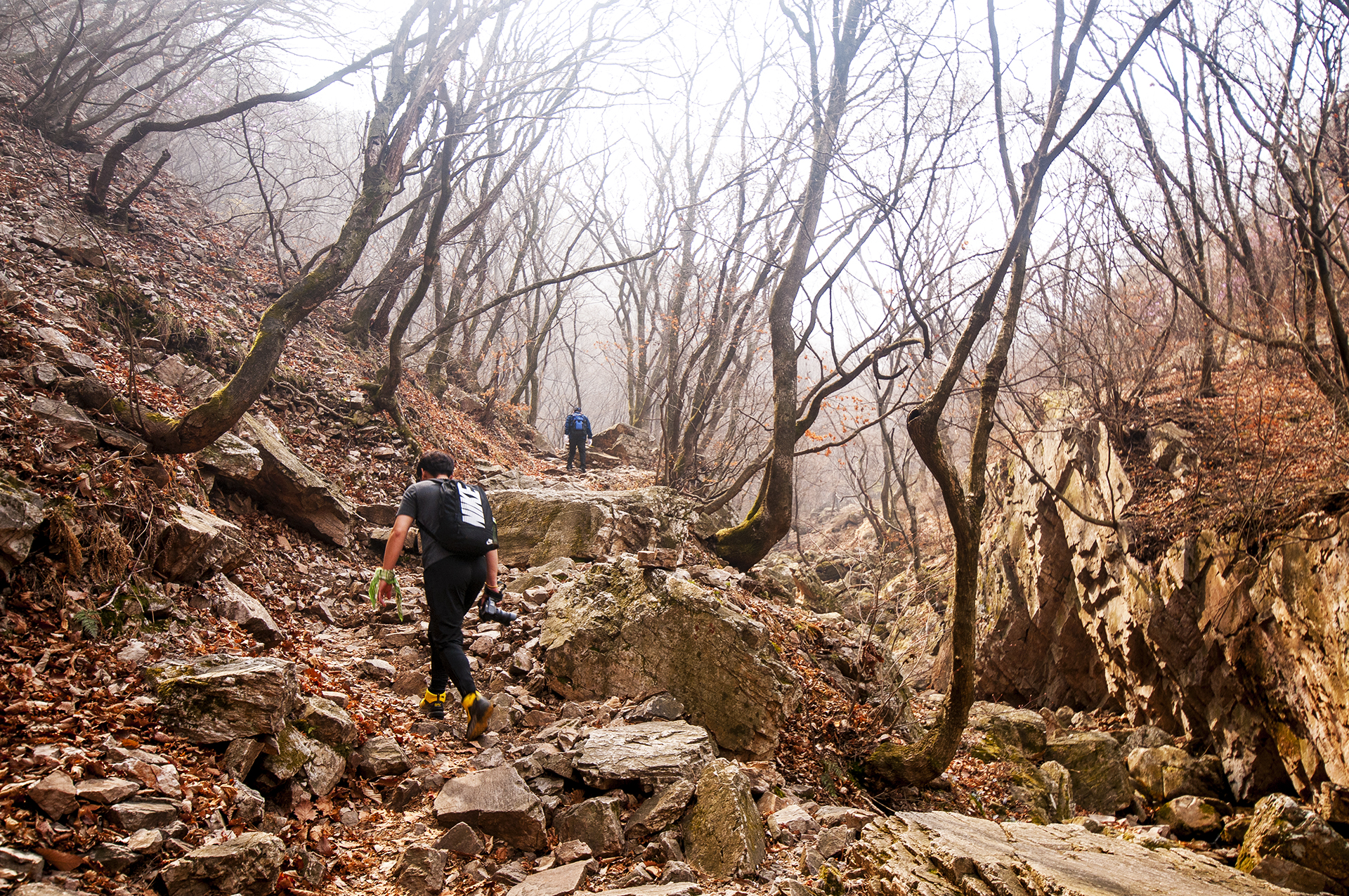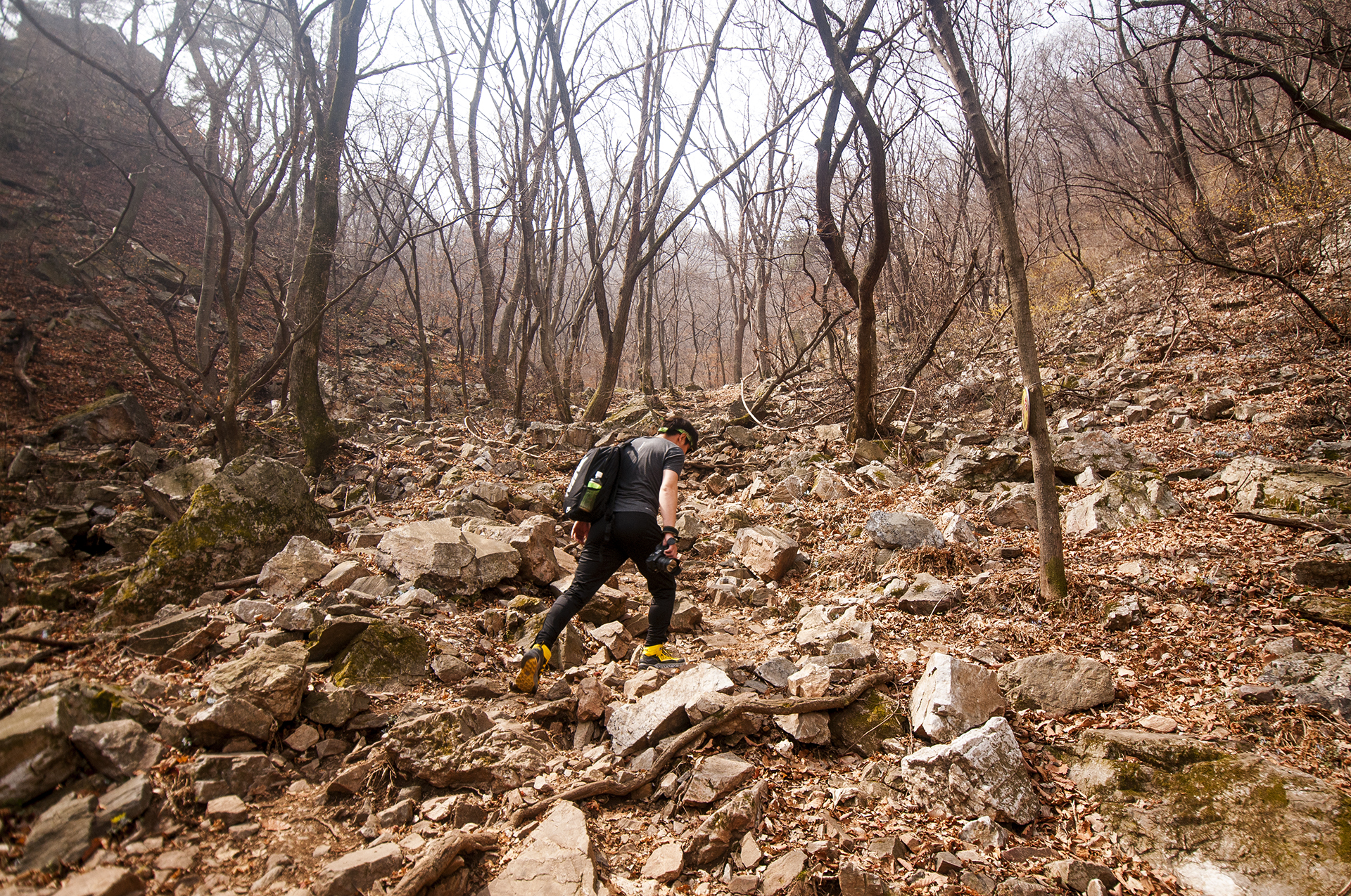 철재길을 지나 울퉁불퉁한 바위능선을 지난다.