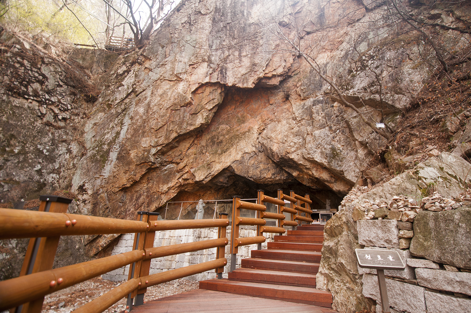 깎아놓은 듯한 암벽이 있고 그 앞으로