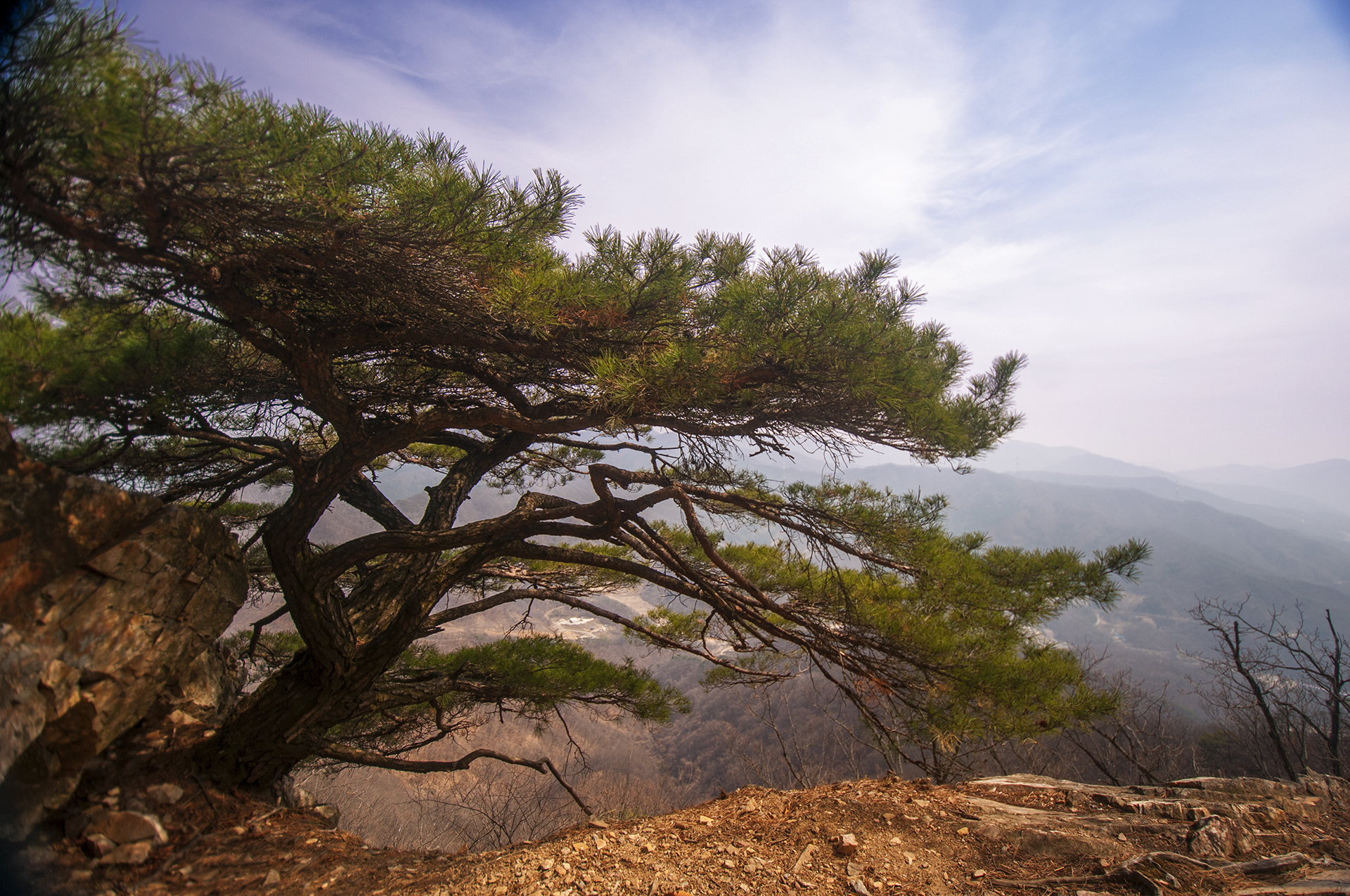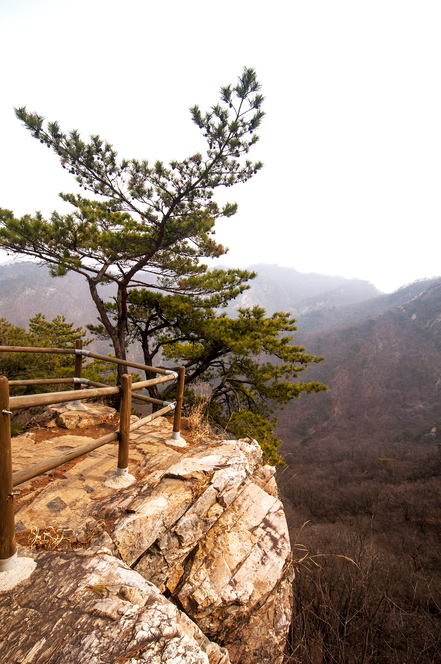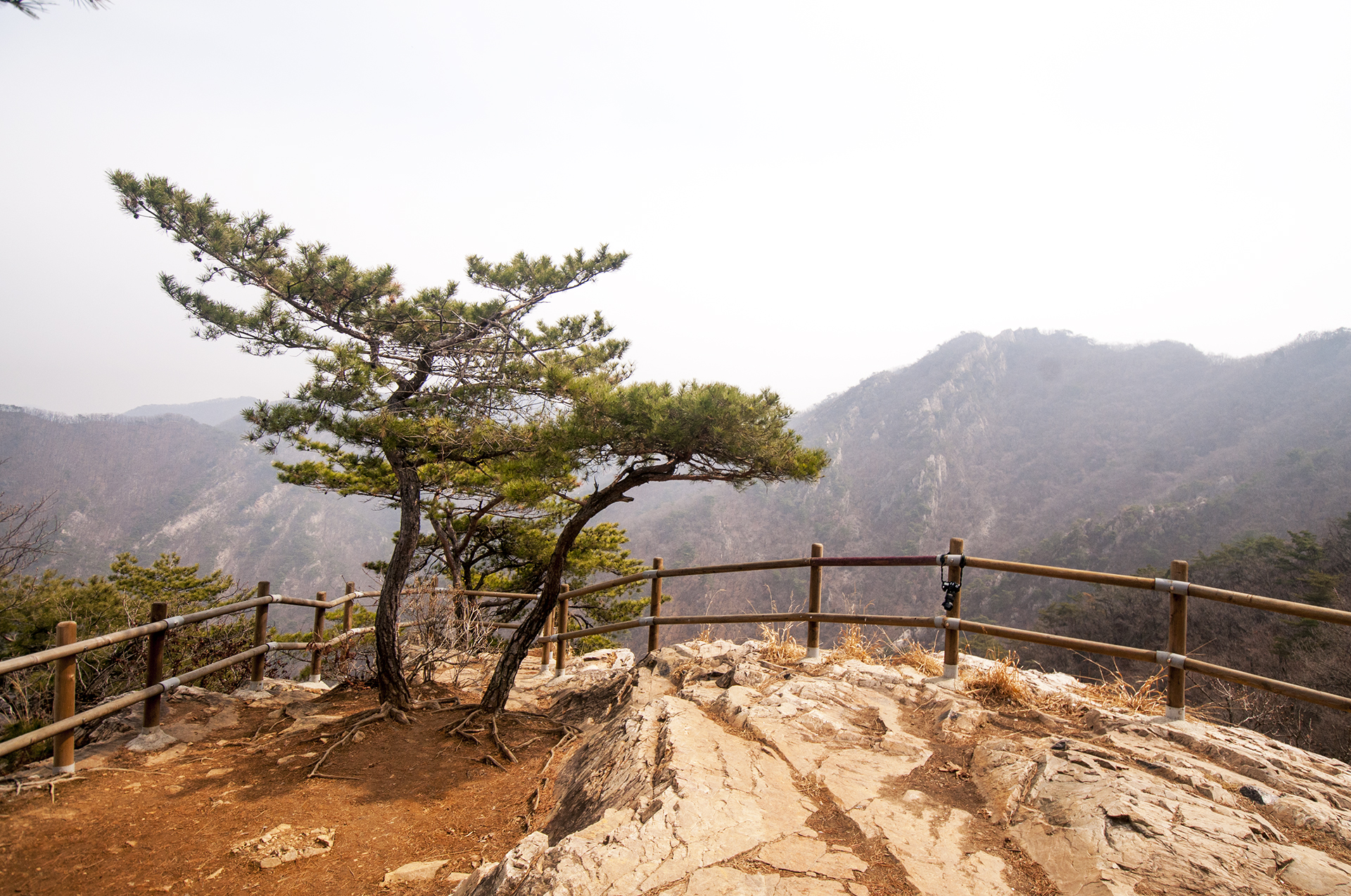 바위 끝부분에서 자라고 있는 소나무가 멋진 경관을 만들어준다.
